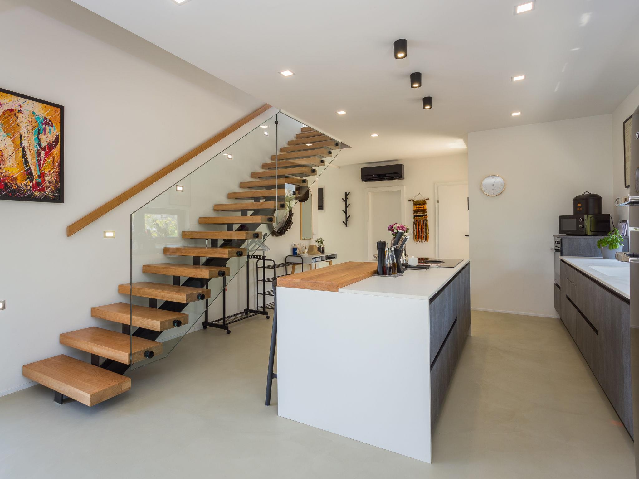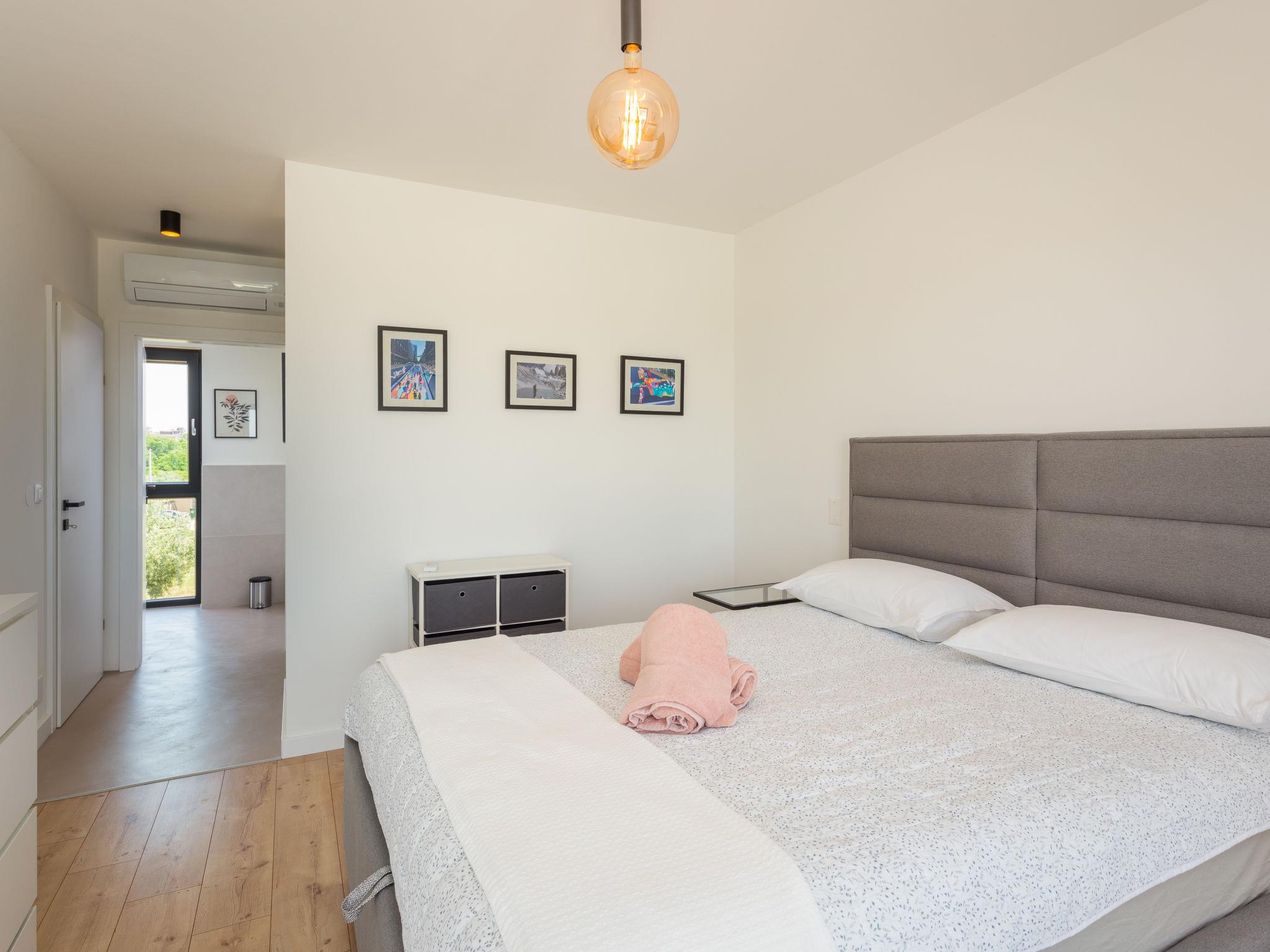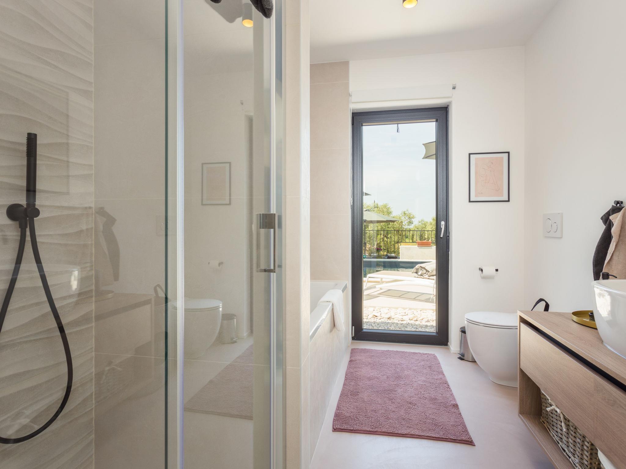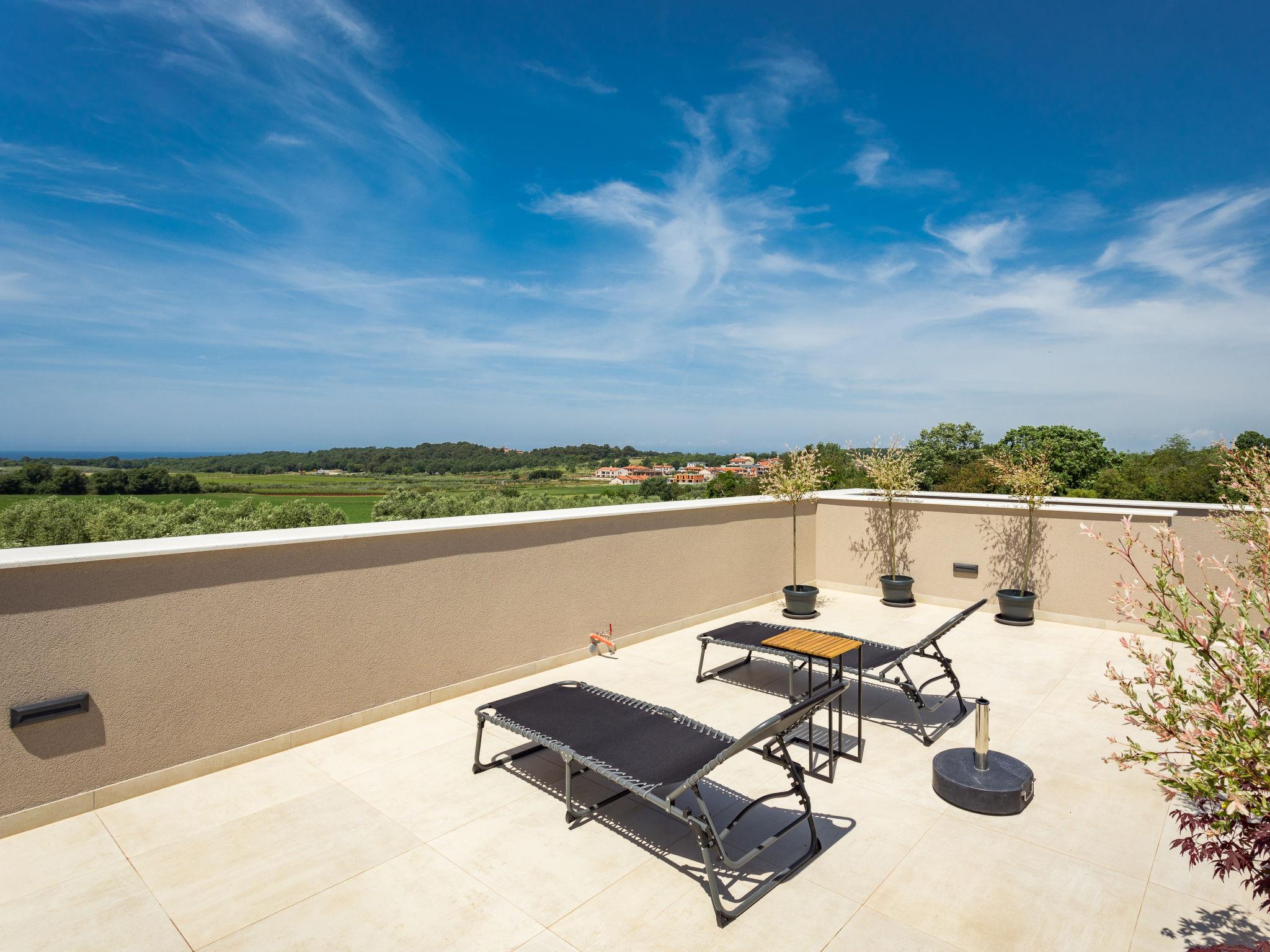 Villa "Altalune", 2 storeys, built in 2022. In the district of Vidal 1 km from the centre of Novigrad, in a secluded, quiet position, 1 km from the sea, 1 km from the beach. Private: property 6'000 m2 with wildlife garden and trees, swimming pool angular (8 x 4 m, depth 150 cm, seasonal availability: 01.May. - 15.Oct.) with internal staircase. Outdoor shower, terrace (80 m2), garden furniture, pool maintenance by the owner/gardener. In the house: internet access, trampoline, washing machine, tumble dryer. Parking (for 2 cars) at the house on the premises. Shop 1 km, supermarket 1 km, restaurant 1 km, bus stop 1.7 km, pebble beach 1 km, shingle beach 1 km, rocky beach 1 km, concrete beach 1 km. Please note: airfield 75 km from the property.