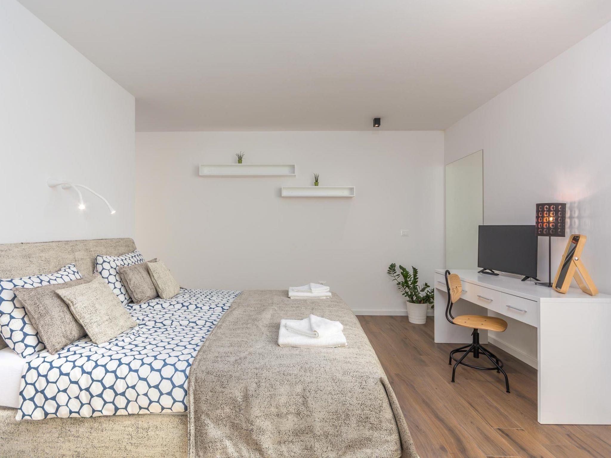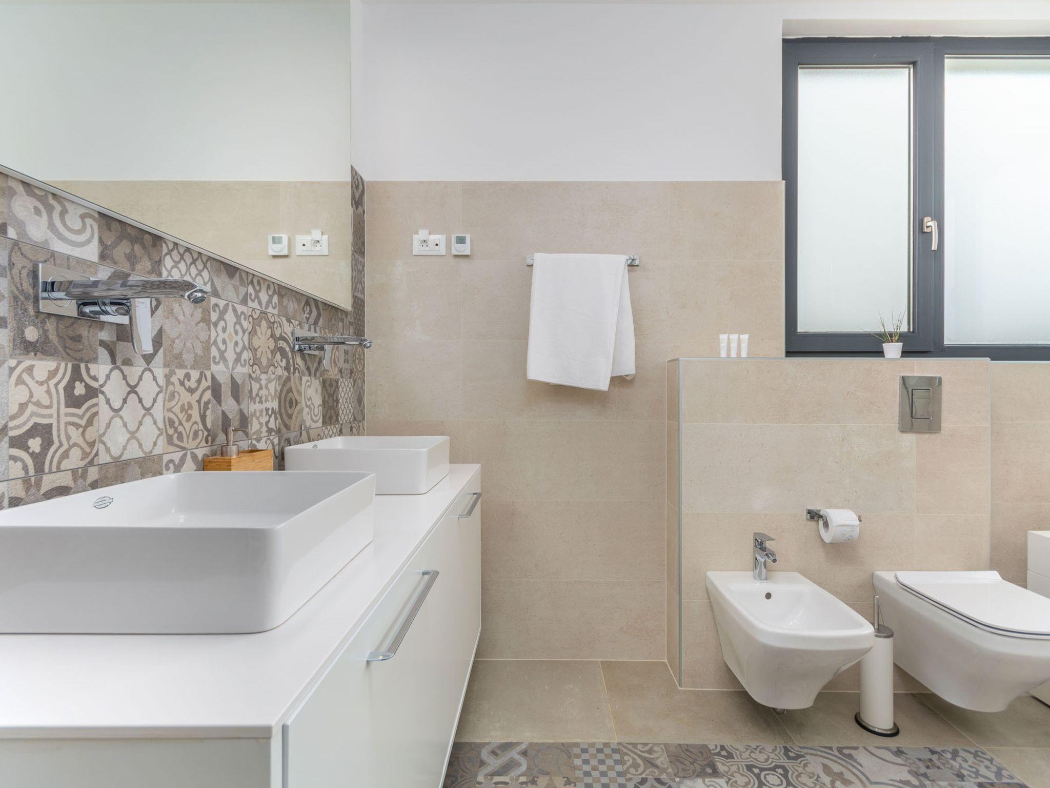 Modern villa "Paolo", 2 storeys. In the hamlet Stancija Vinjeri 2 km from the centre of Novigrad, in a sunny position, 3 km from the sea, 3 km from the beach. Private: property 1'100 m2 (fenced), garden with lawn, swimming pool angular, heated (9 x 5 m, depth 140 cm, seasonal availability: 01.Jan. - 31.Dec.) with internal staircase. Outdoor shower, hot tub, arbour (20 m2), terrace, garden furniture. In the house: internet access, sauna, table football, trampoline, washing machine, tumble dryer. Parking (for 3 cars) at the house on the premises. Shop 1.5 km, supermarket 1.5 km, restaurant 500 m, bus stop 2 km, pebble beach 3 km, rocky beach 3 km. Tennis 2 km, walking paths from the house 500 m, cycle lane 550 m. Nearby attractions: Aquapark 5 km. Please note: airfield 20 km from the property. Swimming pool heated (extra). It is necessary to announce 7 days in advance if the pool heating is required. Available: garden with organic, seasonal fruit and vegetables (included in the price).