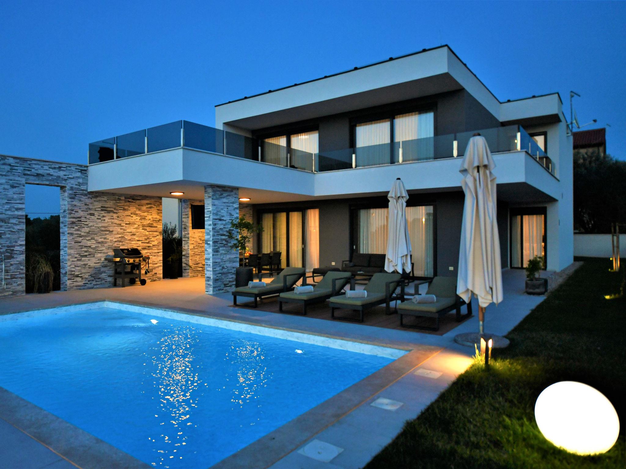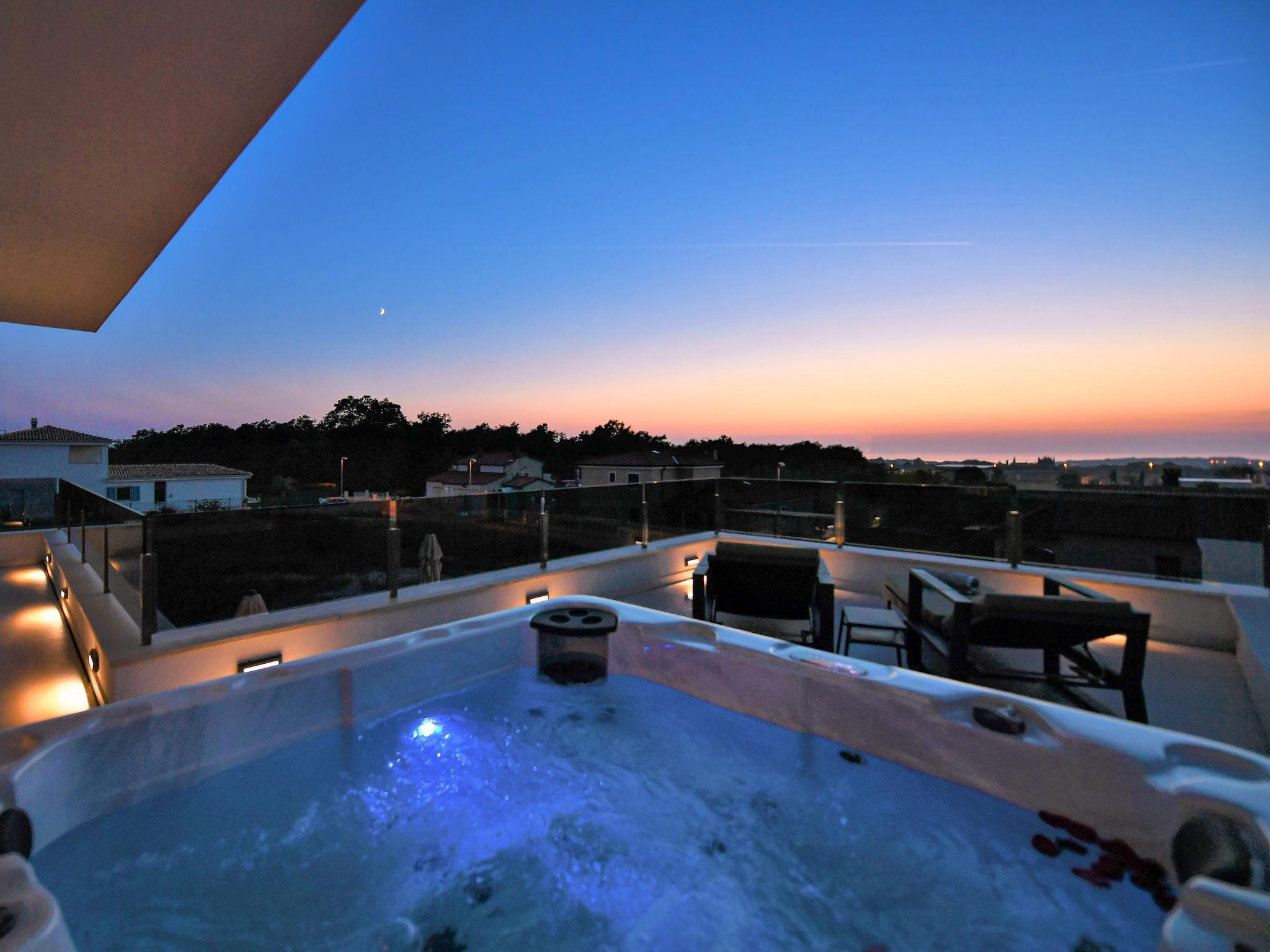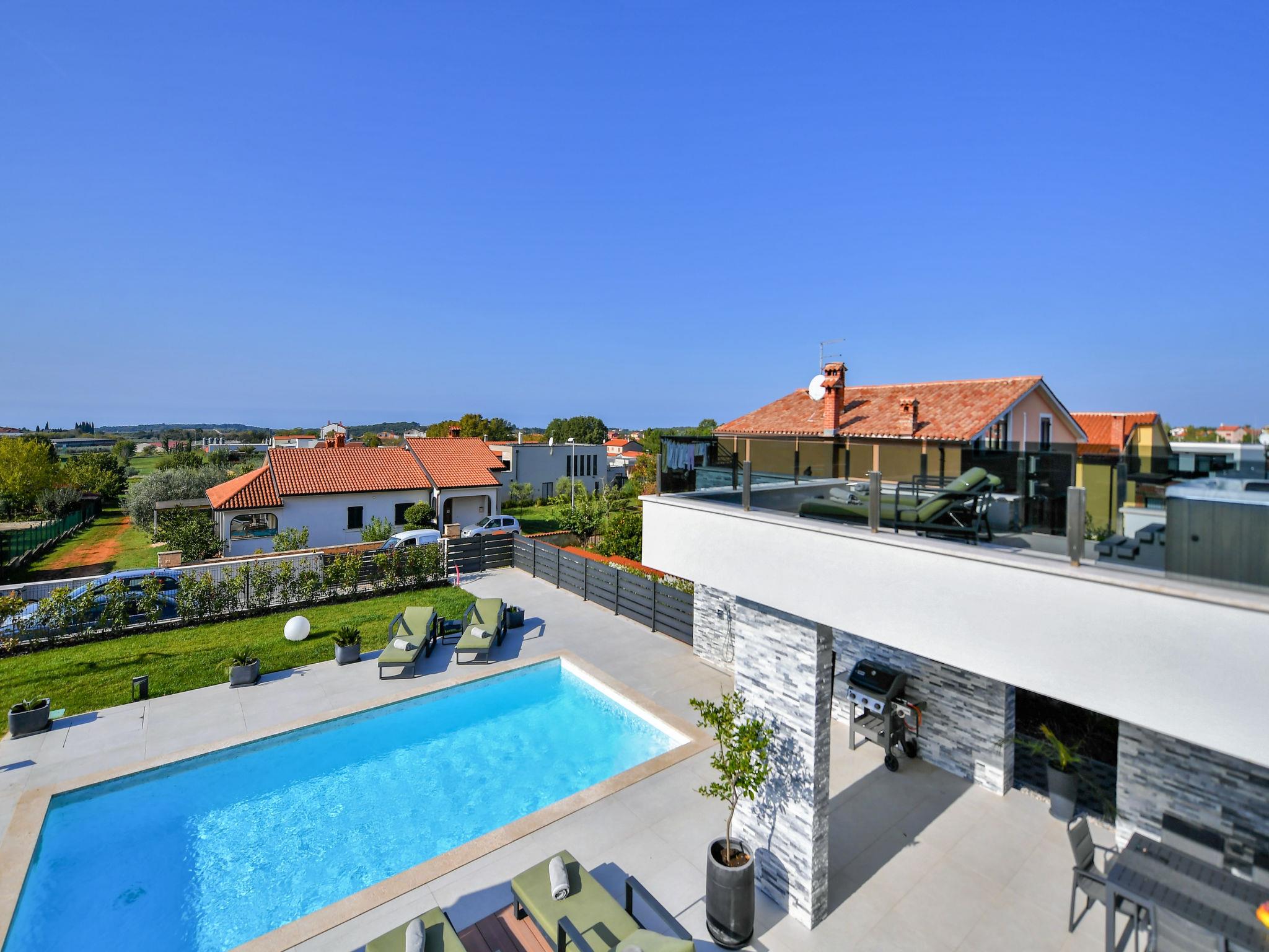 Luxurious villa "Riposo", 2 storeys. In the district of Sveti Servul 2 km from the centre of Novigrad, in a quiet, sunny position, 3 km from the sea, 3 km from the beach, in a cul-de-sac. Private: property 1'000 m2 with wildlife garden, swimming pool angular, heated (7 x 5 m, depth 145 cm, seasonal availability: 01.Apr. - 01.Nov.) with internal staircase. Outdoor shower, hot tub, terrace (25 m2), garden furniture, barbecue. In the house: internet access, sauna, washing machine, tumble dryer. Available: bicycles (2). Parking (for 4 cars) at the house on the premises. E-charging station. Shop 1.5 km, supermarket 1.5 km, restaurant 500 m, bus stop 2 km, pebble beach 3 km, rocky beach 3 km. Golf course (18 hole) 25 km, tennis 2 km, walking paths from the house 500 m, cycle lane 550 m. Nearby attractions: Aquapark 5 km. Please note: airfield 60 km from the property. Swimming pool heated (extra). It is necessary to announce 7 days in advance if the pool heating is required.