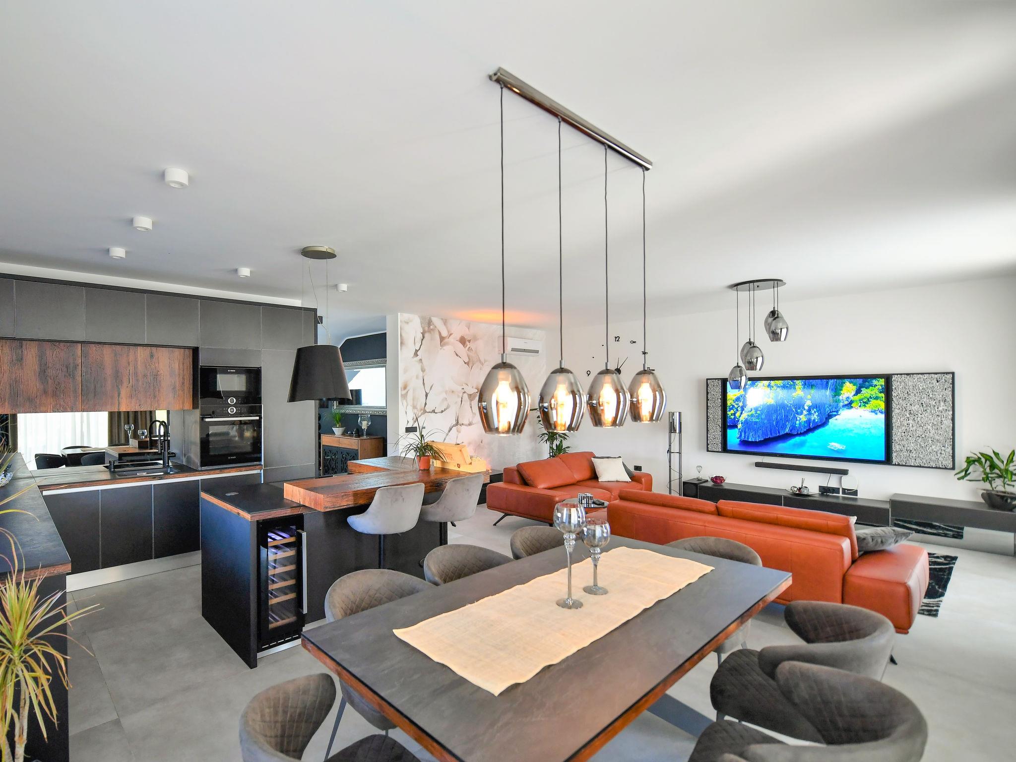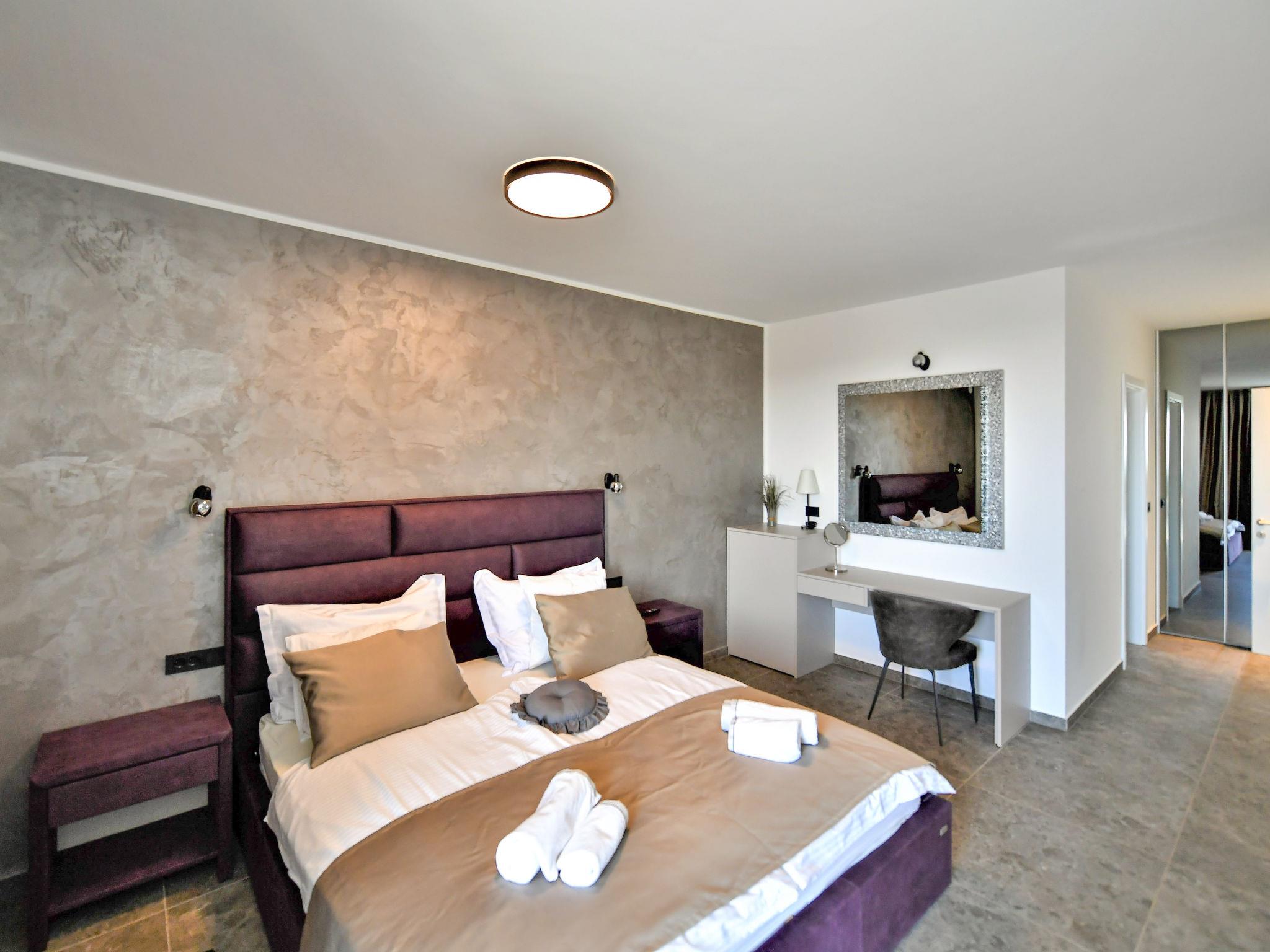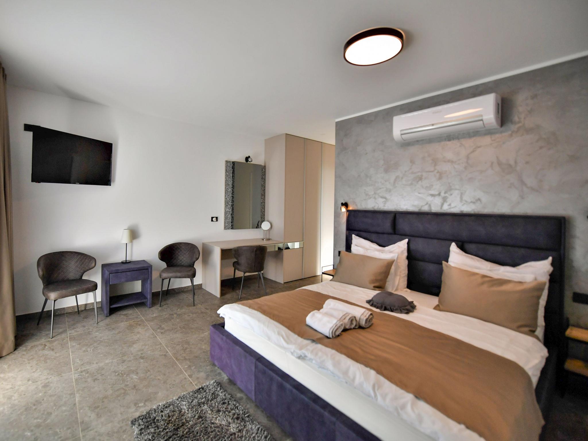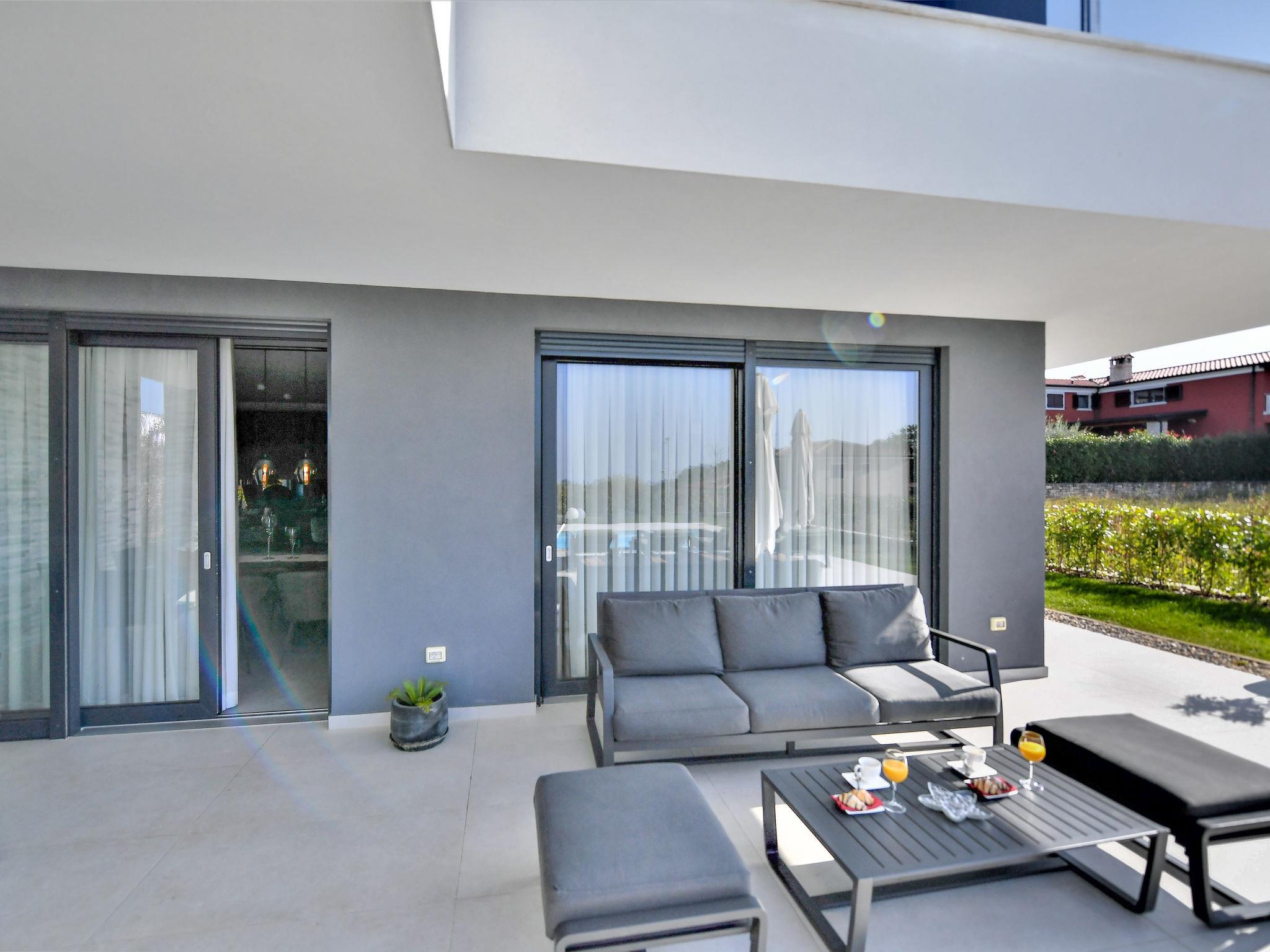 Luxurious villa "Riposo", 2 storeys. In the district of Sveti Servul 2 km from the centre of Novigrad, in a quiet, sunny position, 3 km from the sea, 3 km from the beach, in a cul-de-sac. Private: property 1'000 m2 with wildlife garden, swimming pool angular, heated (7 x 5 m, depth 145 cm, seasonal availability: 01.Apr. - 01.Nov.) with internal staircase. Outdoor shower, hot tub, terrace (25 m2), garden furniture, barbecue. In the house: internet access, sauna, washing machine, tumble dryer. Available: bicycles (2). Parking (for 4 cars) at the house on the premises. E-charging station. Shop 1.5 km, supermarket 1.5 km, restaurant 500 m, bus stop 2 km, pebble beach 3 km, rocky beach 3 km. Golf course (18 hole) 25 km, tennis 2 km, walking paths from the house 500 m, cycle lane 550 m. Nearby attractions: Aquapark 5 km. Please note: airfield 60 km from the property. Swimming pool heated (extra). It is necessary to announce 7 days in advance if the pool heating is required.