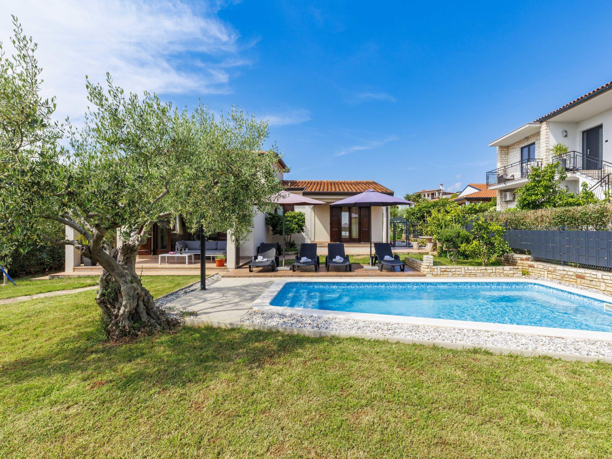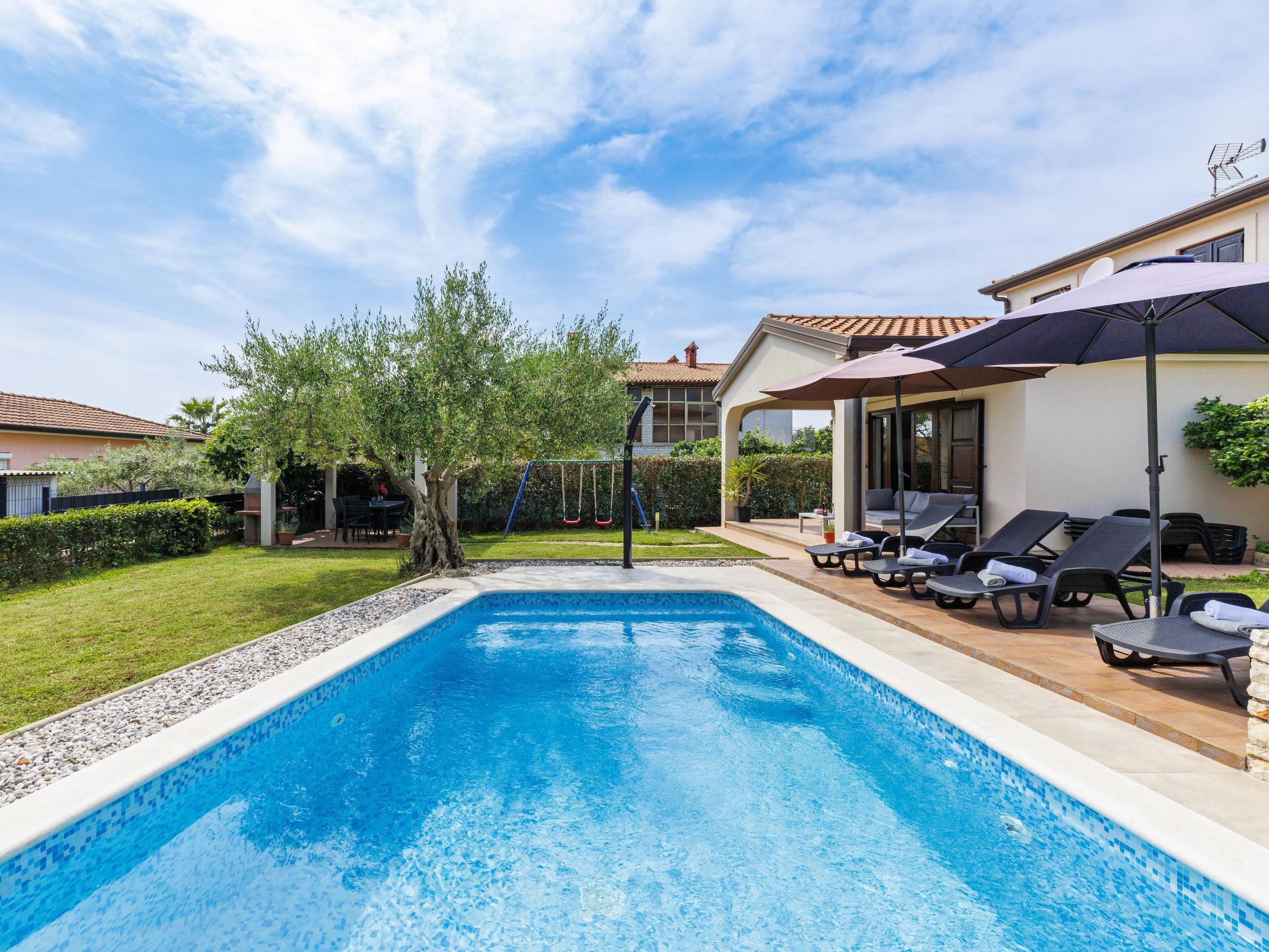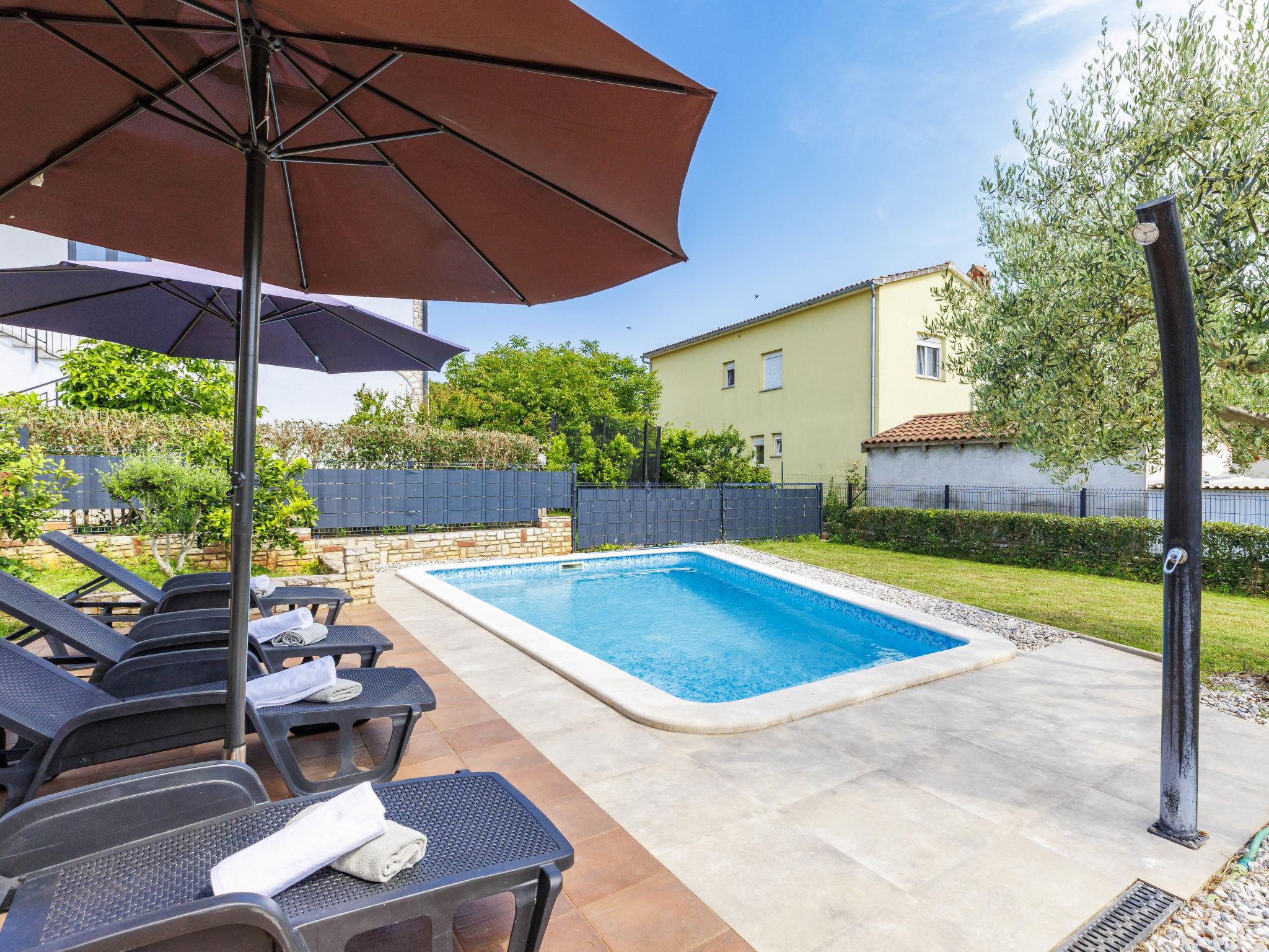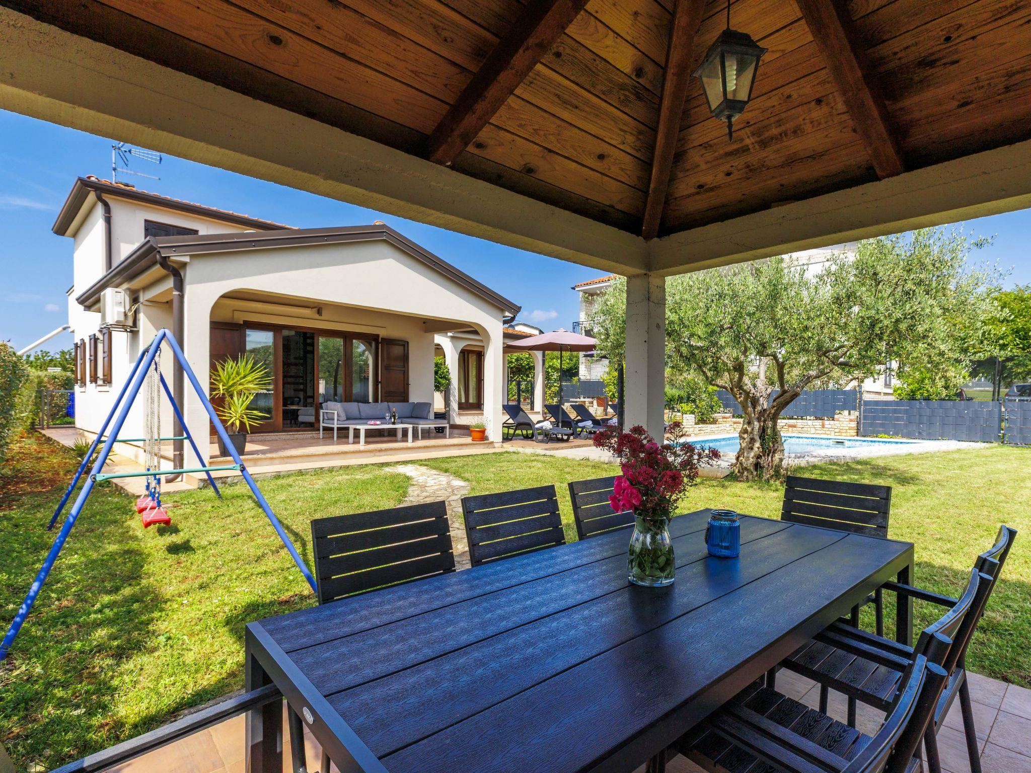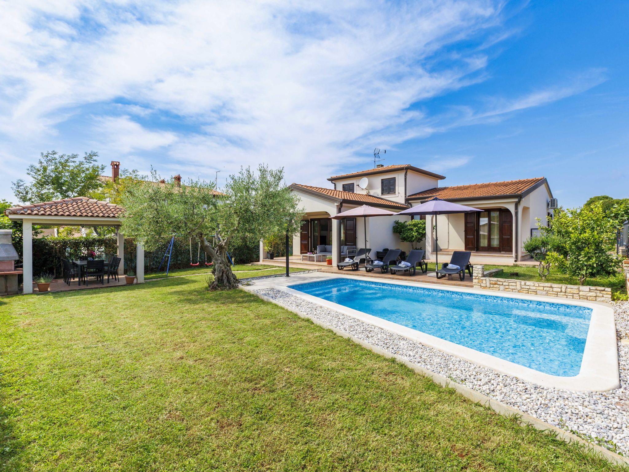 Stancijeta 3 km from Novigrad: Very beautiful single-family house "Villa Lucas", 2 storeys. In the hamlet Stancijeta 18 km from the centre of Porec, 15 km from the centre of Umag, in a quiet, sunny position, 3 km from the sea, 3 km from the beach. Private: property 900 m2 (fenced), well-kept garden, swimming pool (25 m2, depth 150 cm, seasonal availability: 01.May. - 01.Oct.) with internal staircase. Outdoor shower, barbecue, children's playground, pool maintenance by the owner/gardener. In the house: internet access. Parking (for 3 cars) at the house. Shop 3 km, restaurant 300 m, bus stop 3 km, railway station 35 km, pebble beach 3 km. Golf course (18 hole) 25 km, walking paths from the house, cycle lane 20 m. Nearby attractions: Aquapark 4 km. Please note: suitable for families. The owner does not accept any groups.
