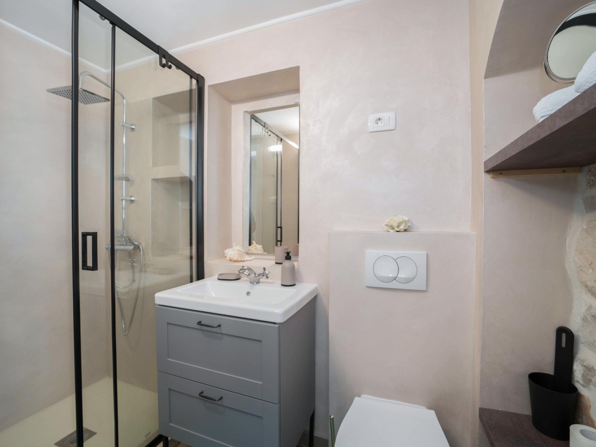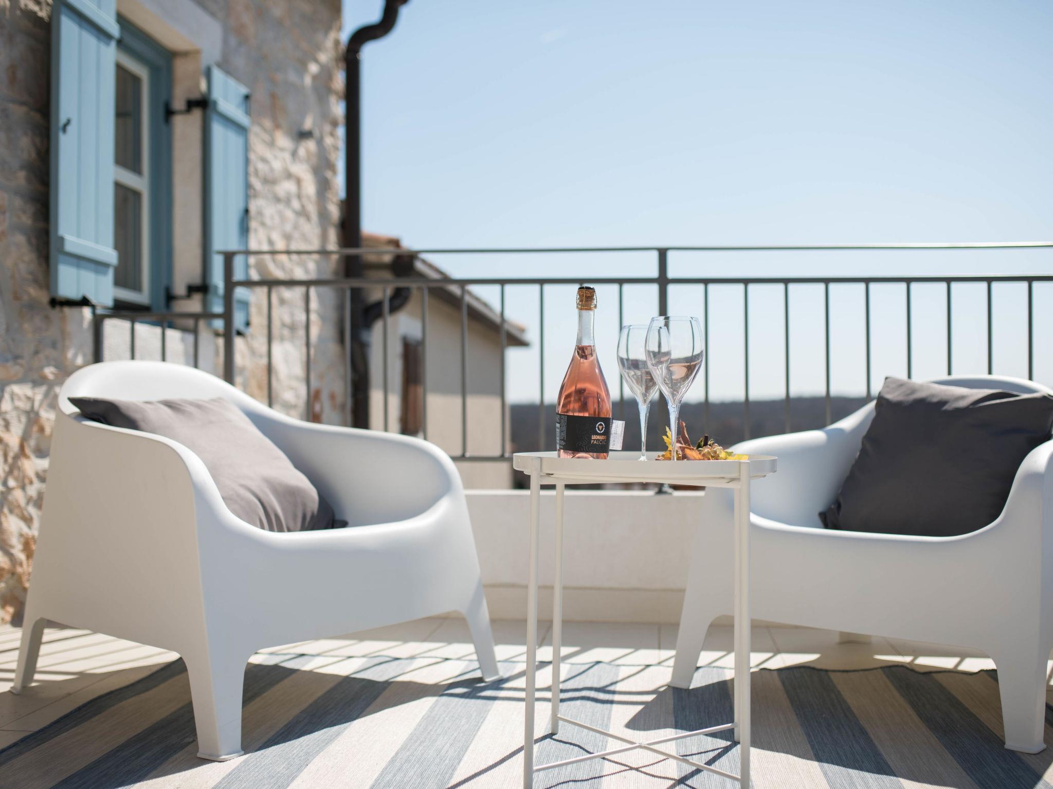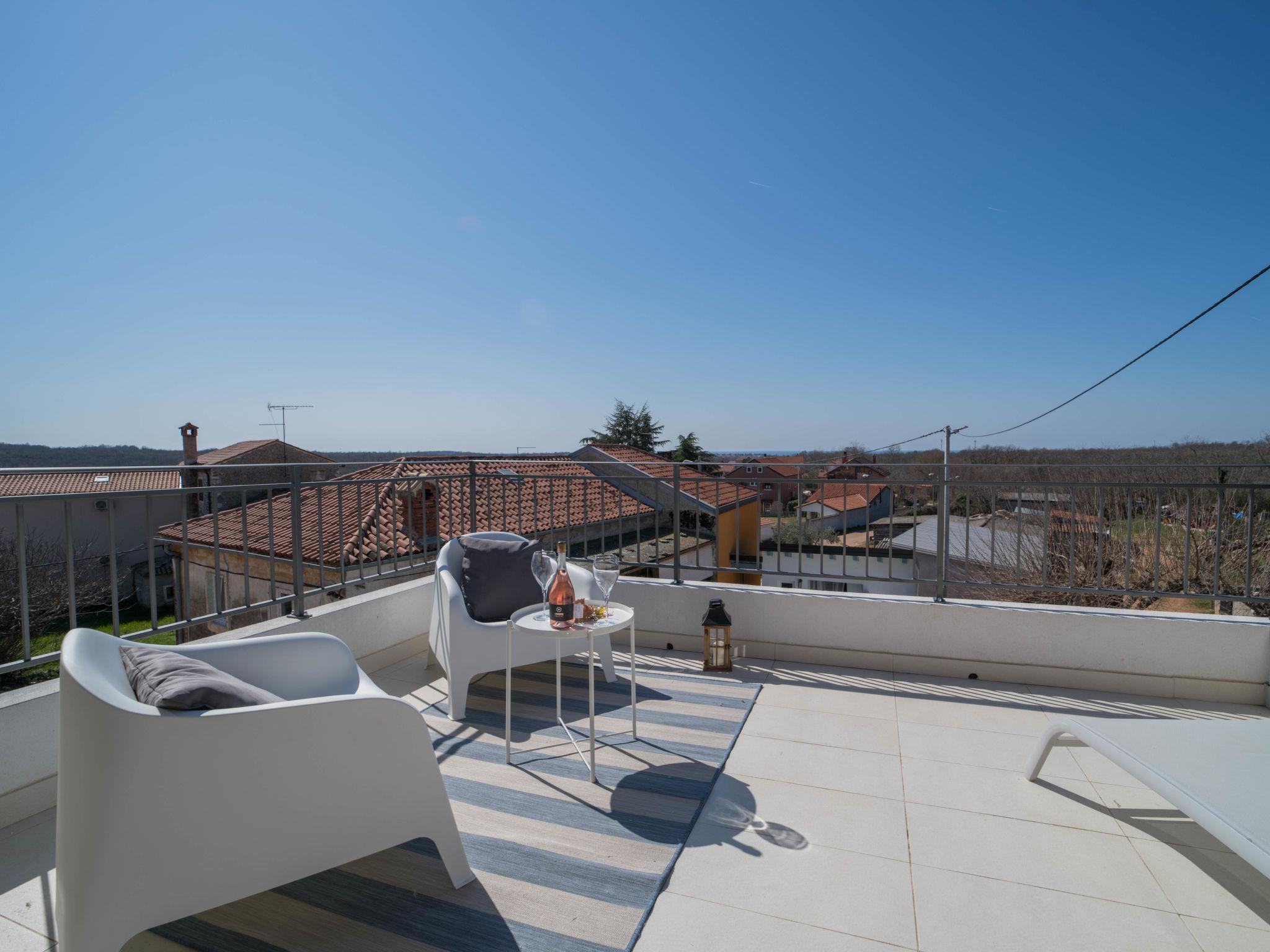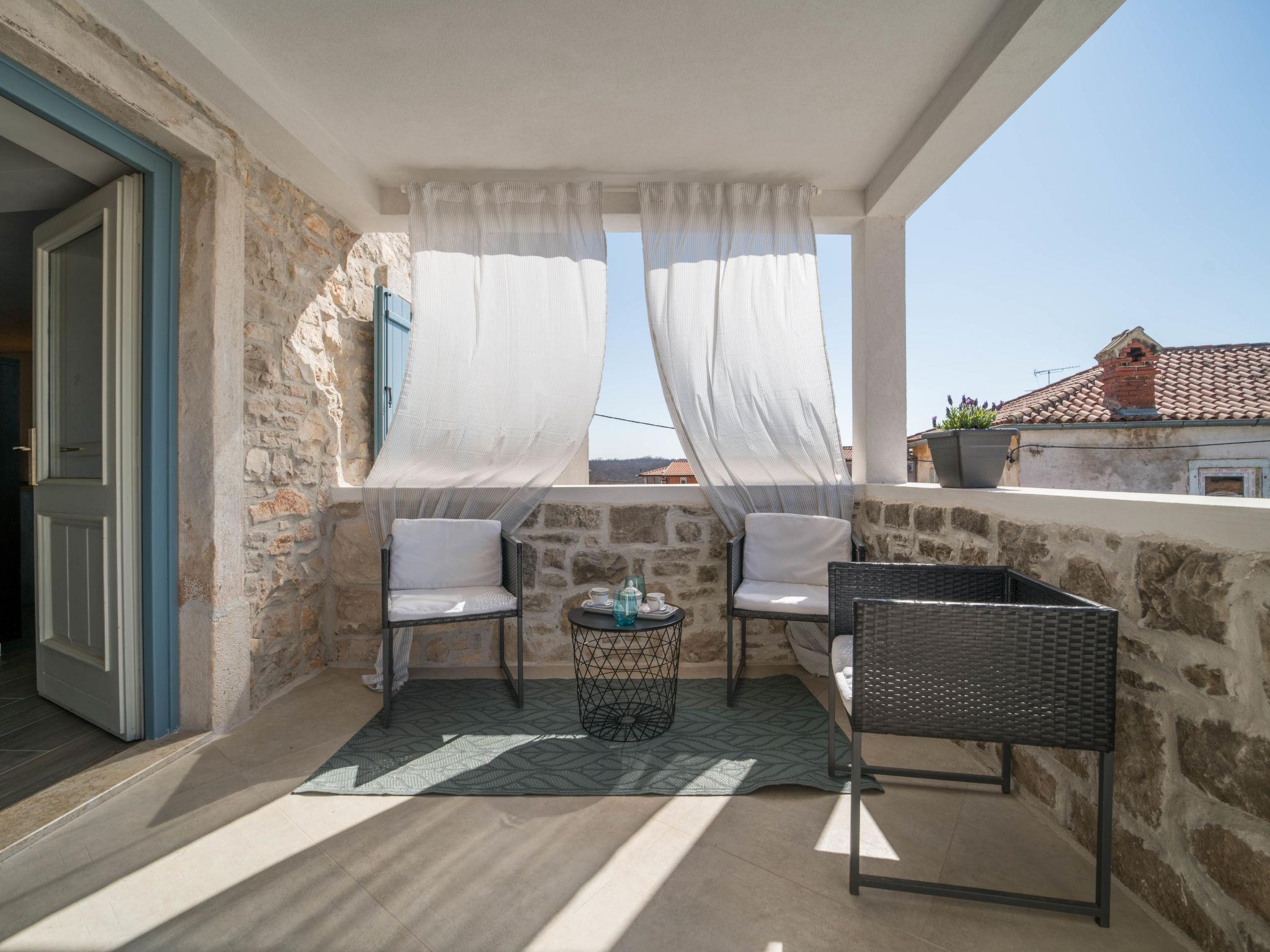 Terraced house "Villa Caterina", 2 storeys, renovated in 2022. In the hamlet Fiorini 8 km from the centre of Novigrad, in a sunny position, 2 km from the sea, 2 km from the beach, in a cul-de-sac. Private: property 200 m2 (fenced), swimming pool angular (15 m2, depth 140 cm, seasonal availability: 01.May. - 30.Sep.). Outdoor shower. In the house: internet access, washing machine. Parking (for 2 cars) at the house on the premises. Shop 6 km, restaurant 50 m, bus stop 2.4 km, pebble beach 2 km, rocky beach 2 km. Walking paths from the house 50 m, cycle lane 100 m, children's playground 200 m. Please note: the owner lives in the same residence. The owner is at guests' disposal for pool cleaning and property maintenance. Private: outdoor kitchen (2 hot plates, oven, microwave, fridge). Organizing a party is not allowed. Swimming pool heated (extra).