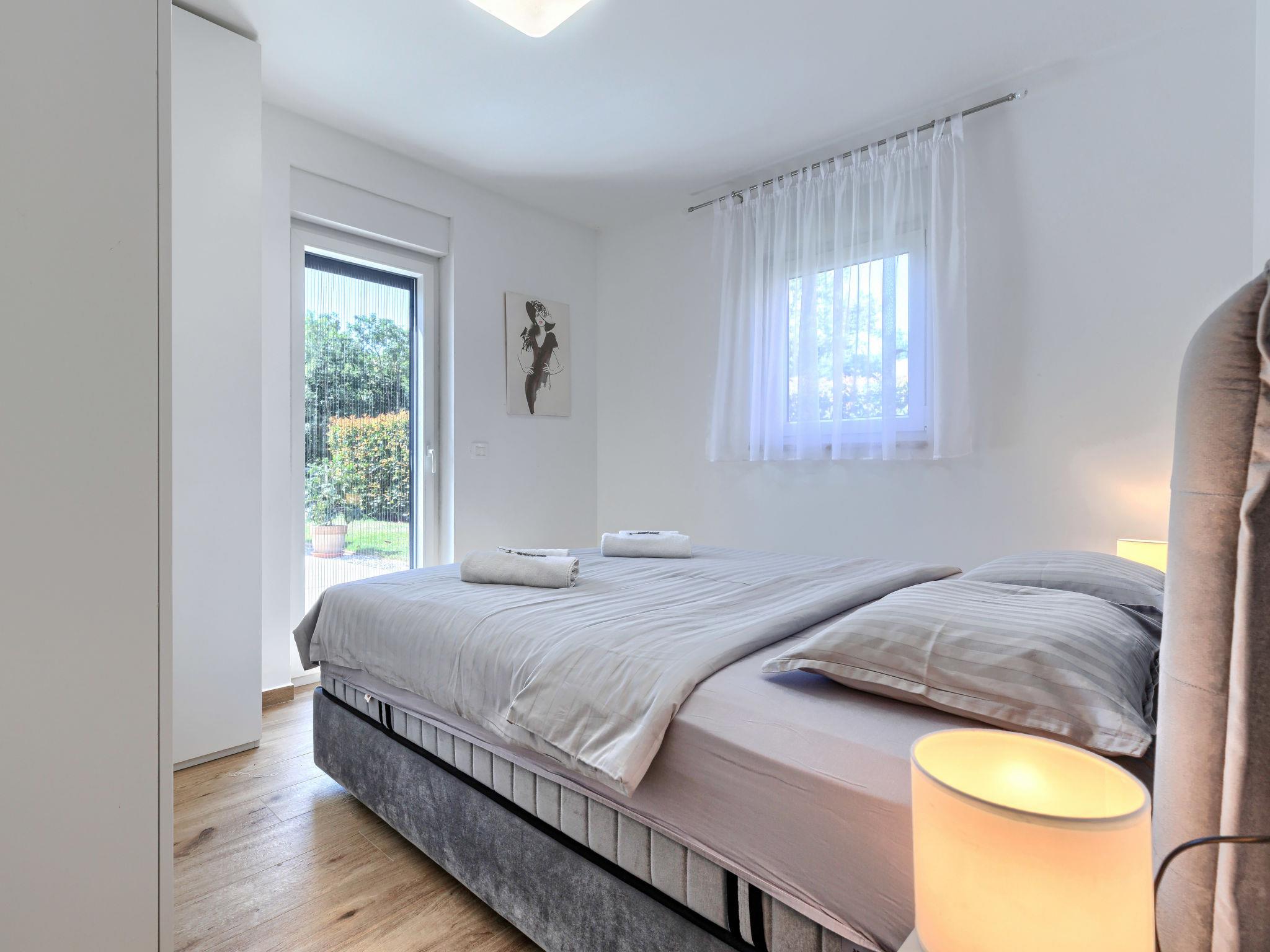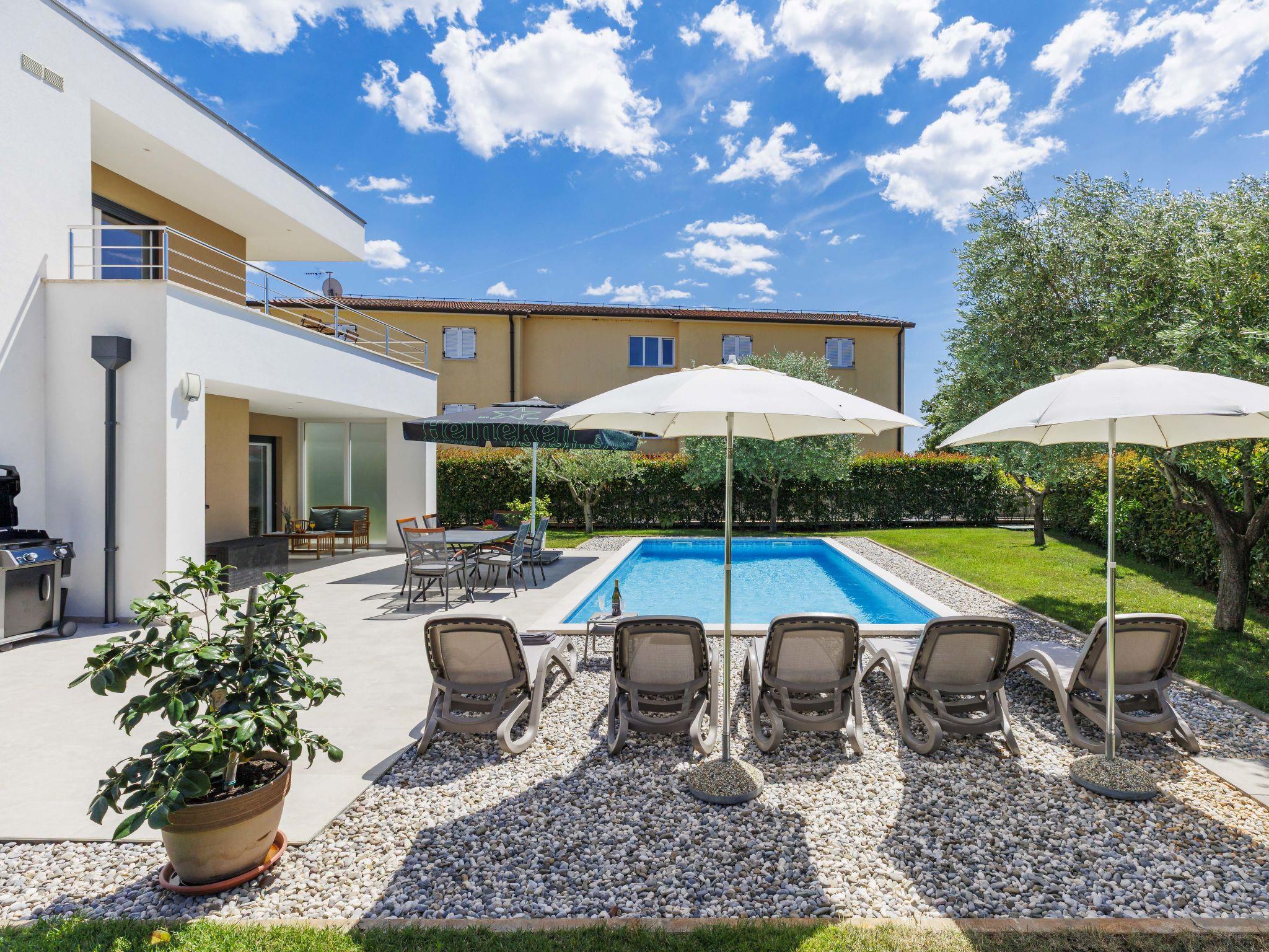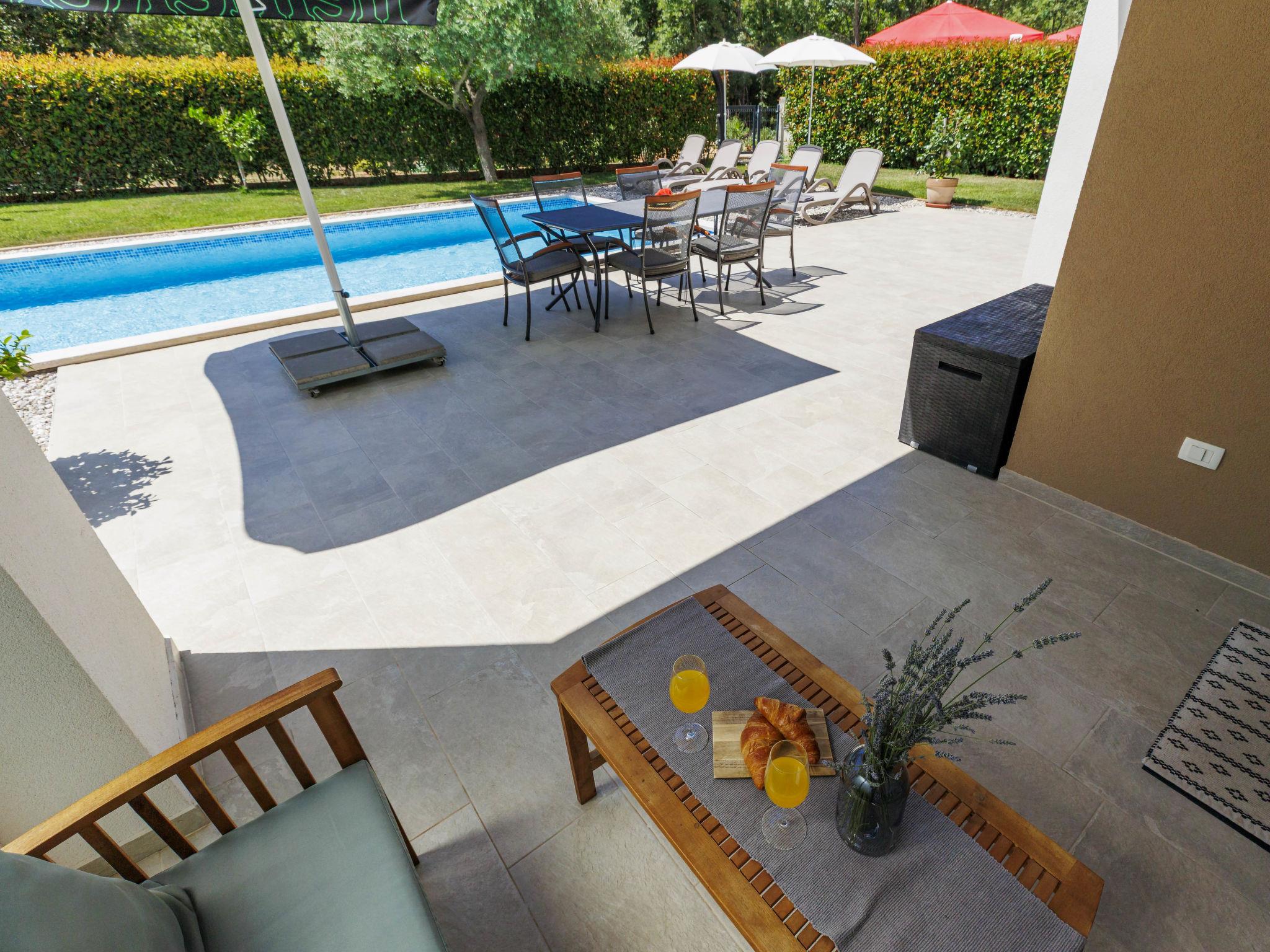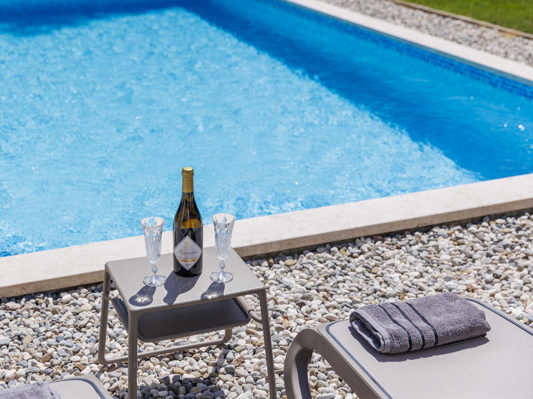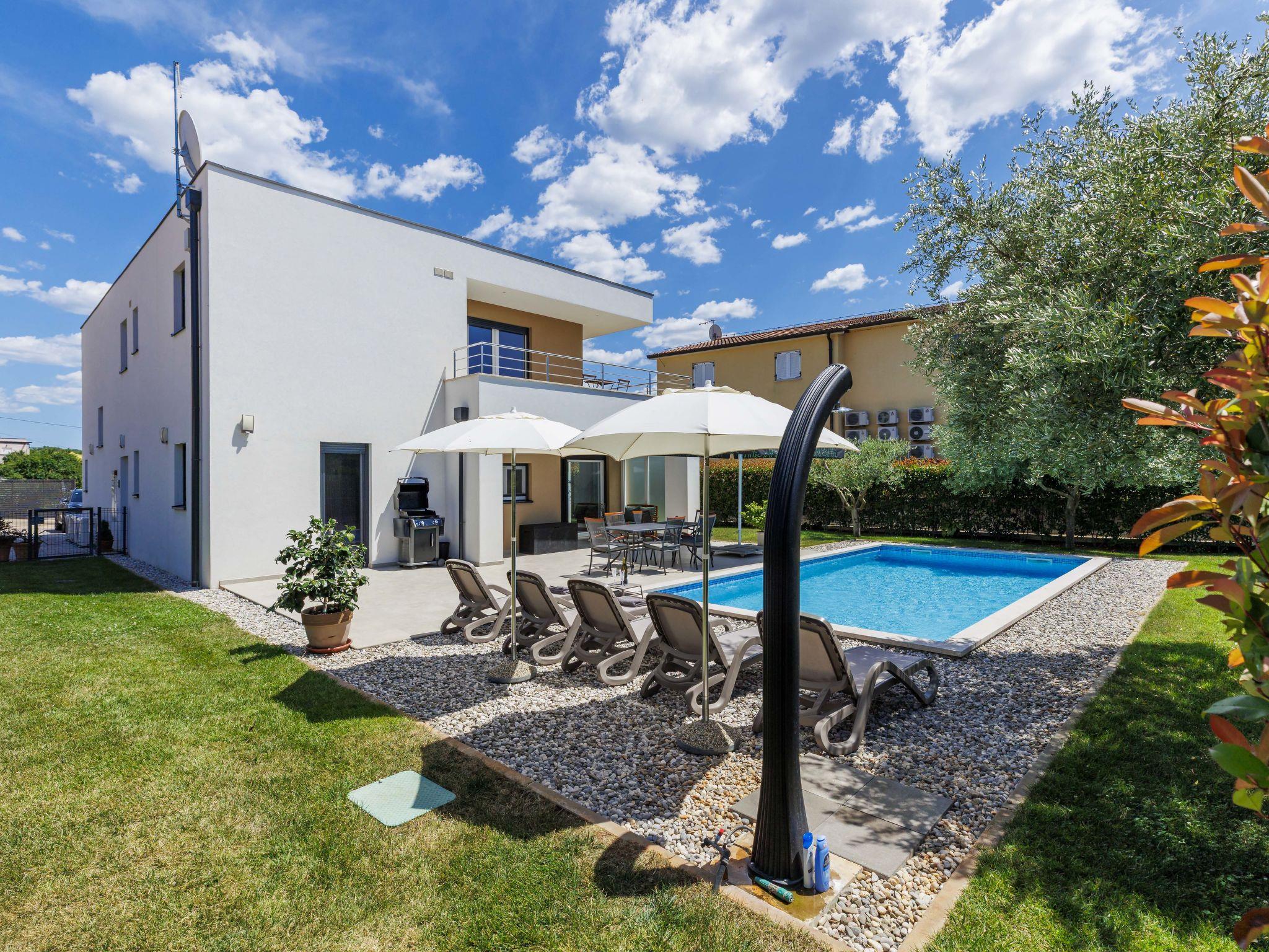 Semi-detached house "Cancar", 2 storeys. In the hamlet Fiorini 8 km from the centre of Novigrad, in a sunny position, 2 km from the sea, 2 km from the beach, in a cul-de-sac. Private: property 400 m2 (fenced), garden with lawn and wildlife garden, swimming pool angular (8 x 4 m, depth 145 cm, seasonal availability: 01.Jun. - 30.Sep.) with internal staircase and salt-electrolysis pool-cleaning system. Outdoor shower, pool maintenance by the owner/gardener. In the house: internet access, washing machine. Parking (for 2 cars) at the house on the premises. Shop 6 km, restaurant 50 m, bus stop 2.4 km, pebble beach 2 km, rocky beach 2 km. Walking paths from the house 50 m, cycle lane 100 m.