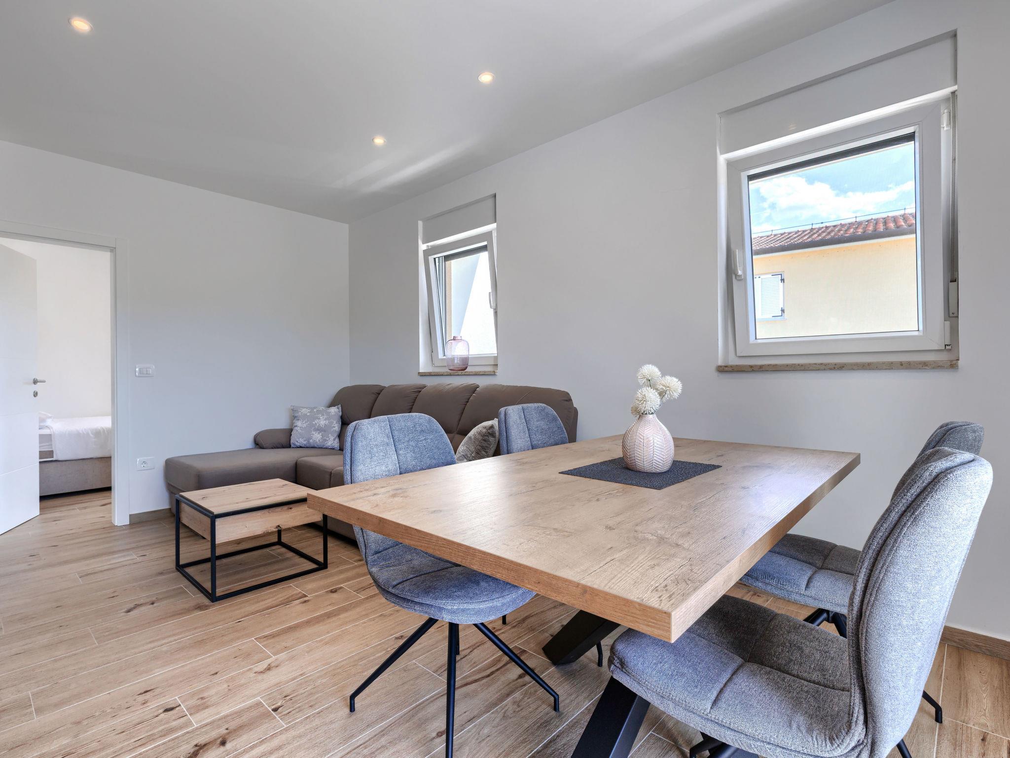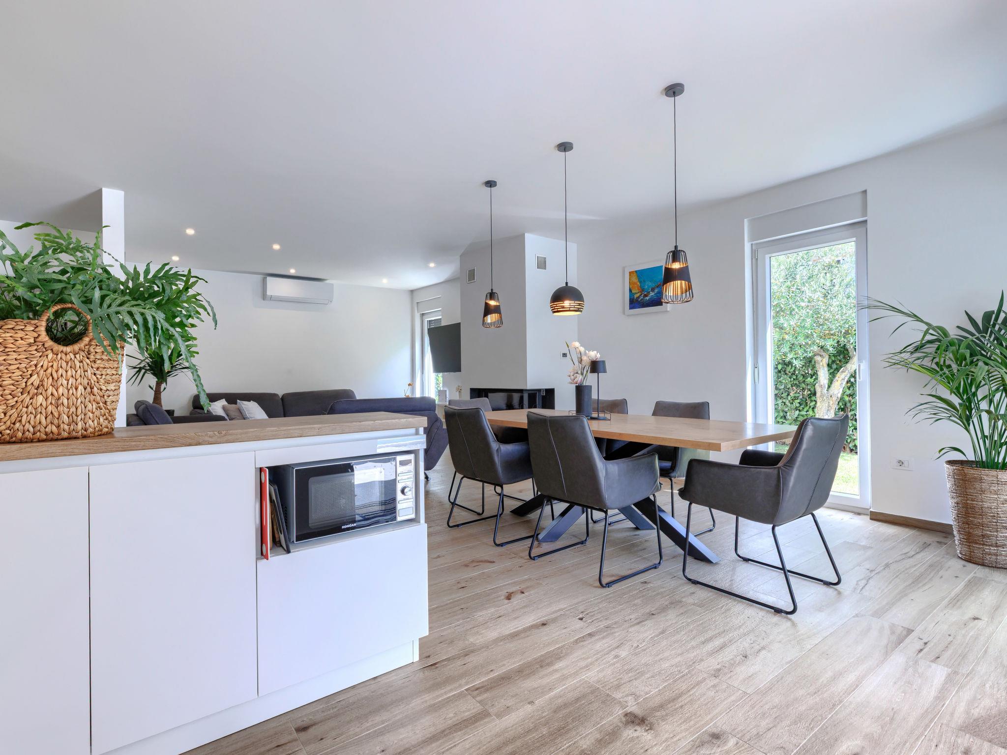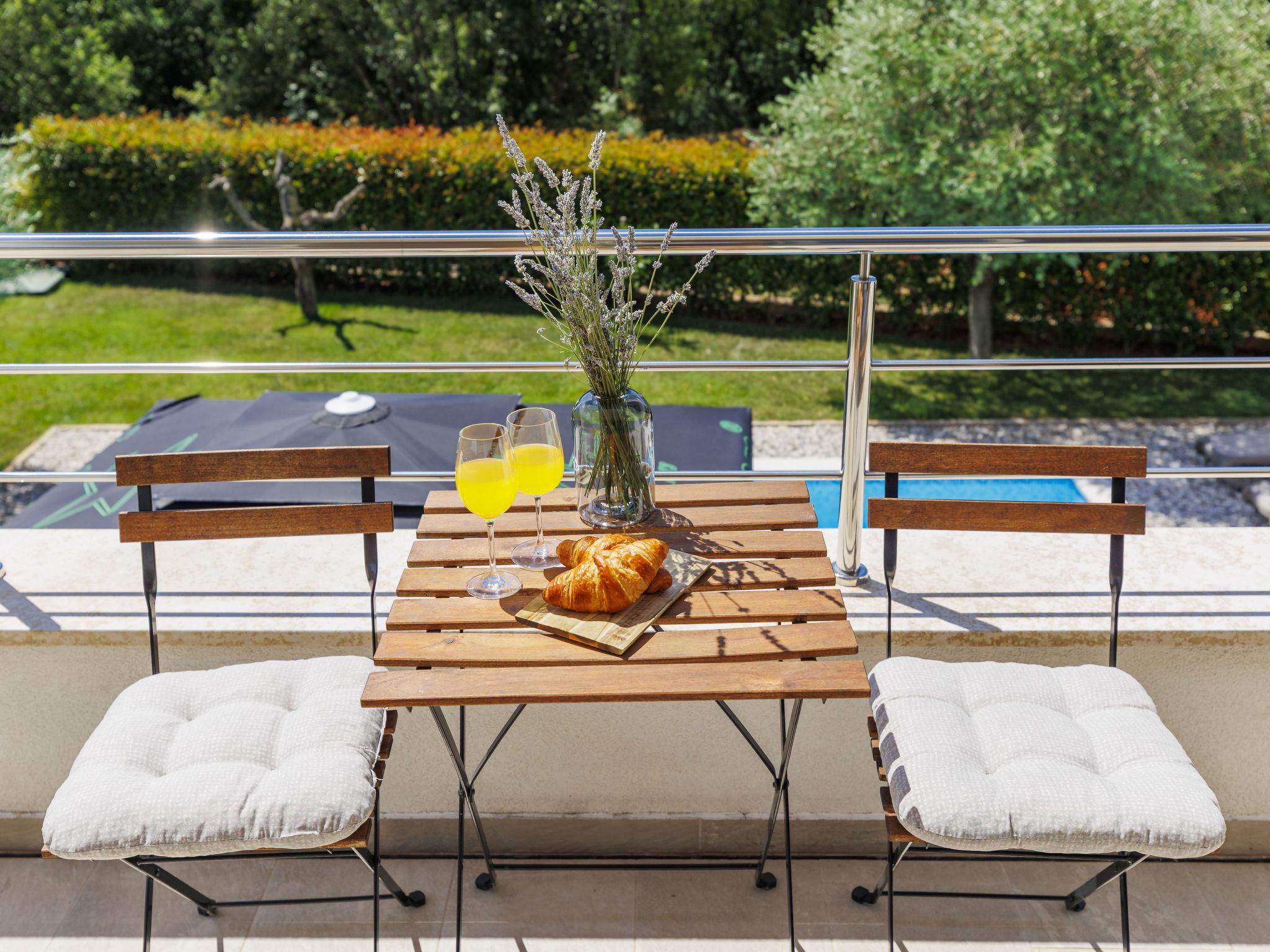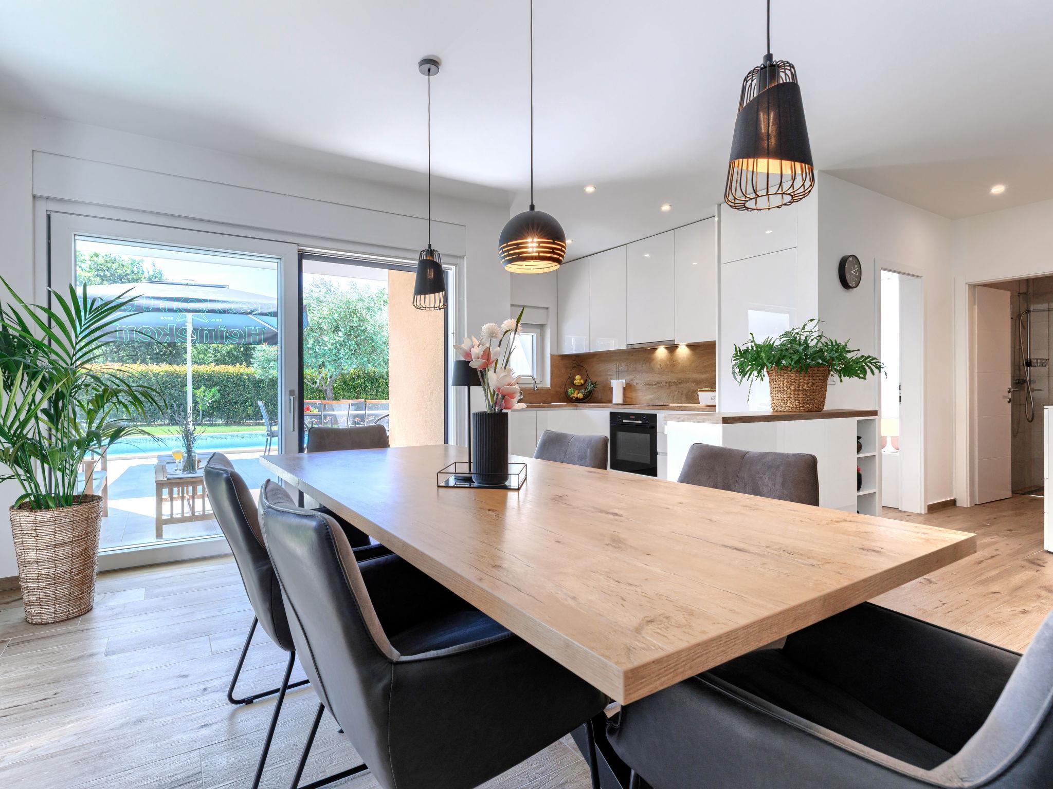 Semi-detached house "Cancar", 2 storeys. In the hamlet Fiorini 8 km from the centre of Novigrad, in a sunny position, 2 km from the sea, 2 km from the beach, in a cul-de-sac. Private: property 400 m2 (fenced), garden with lawn and wildlife garden, swimming pool angular (8 x 4 m, depth 145 cm, seasonal availability: 01.Jun. - 30.Sep.) with internal staircase and salt-electrolysis pool-cleaning system. Outdoor shower, pool maintenance by the owner/gardener. In the house: internet access, washing machine. Parking (for 2 cars) at the house on the premises. Shop 6 km, restaurant 50 m, bus stop 2.4 km, pebble beach 2 km, rocky beach 2 km. Walking paths from the house 50 m, cycle lane 100 m.