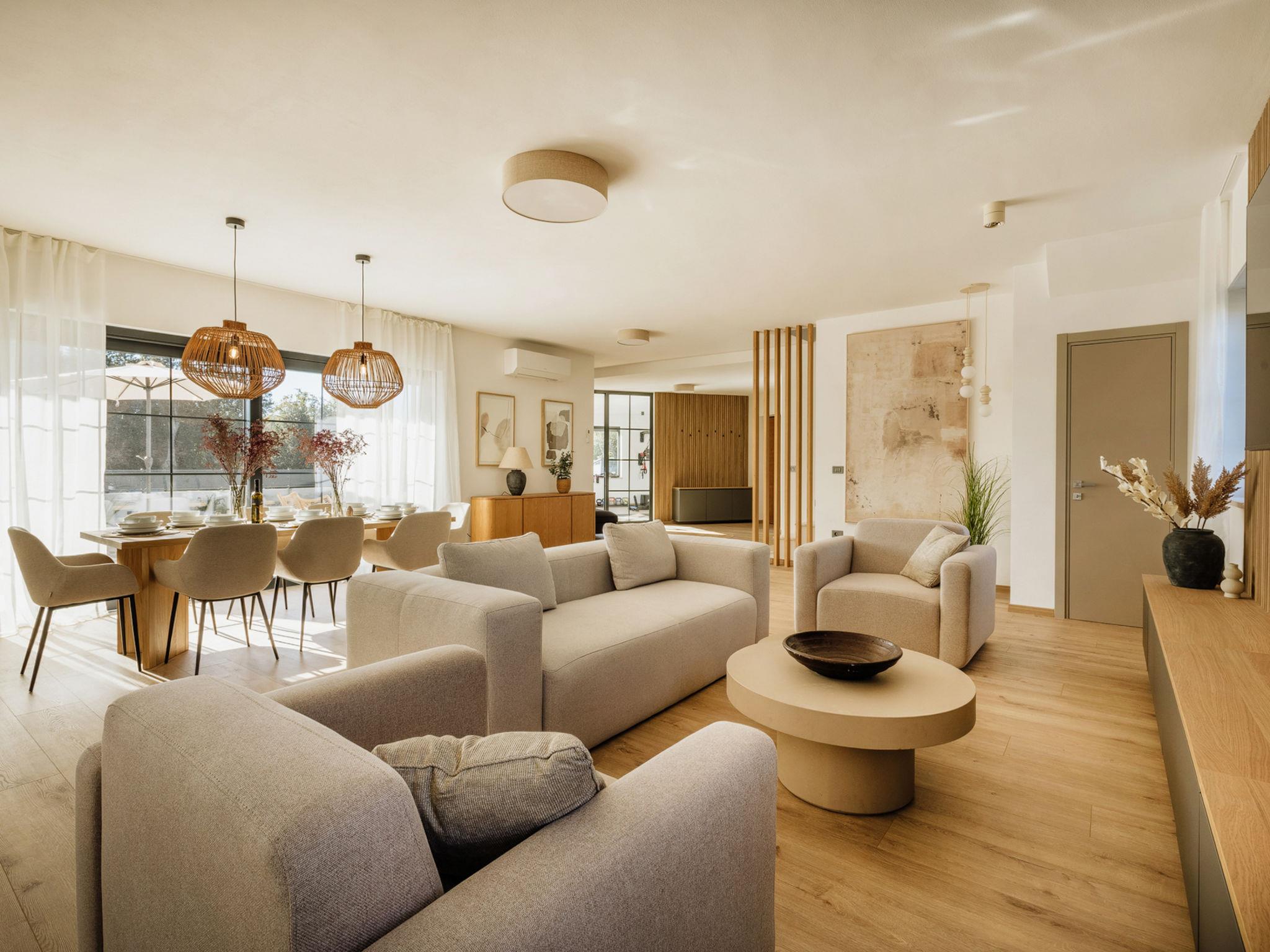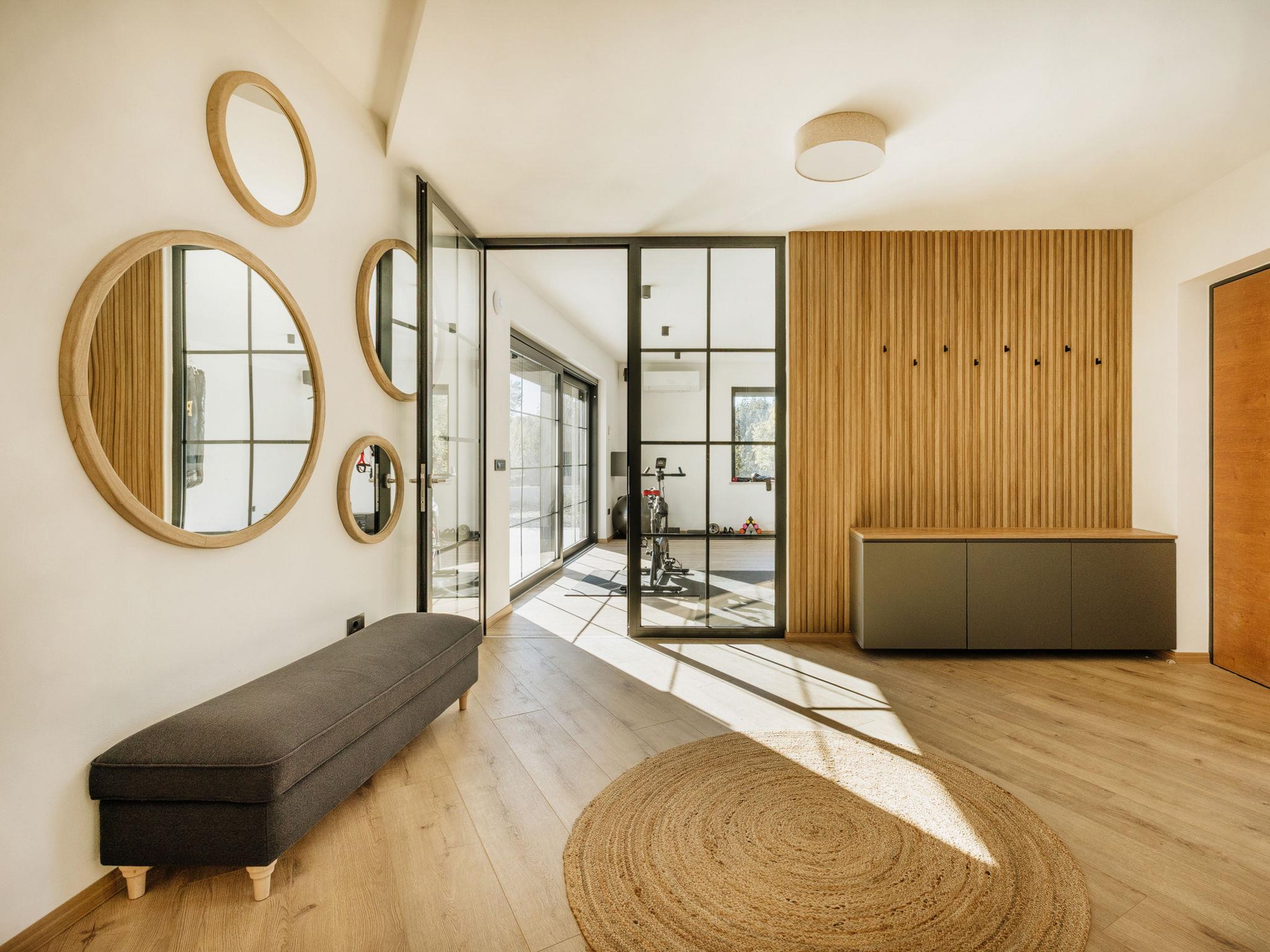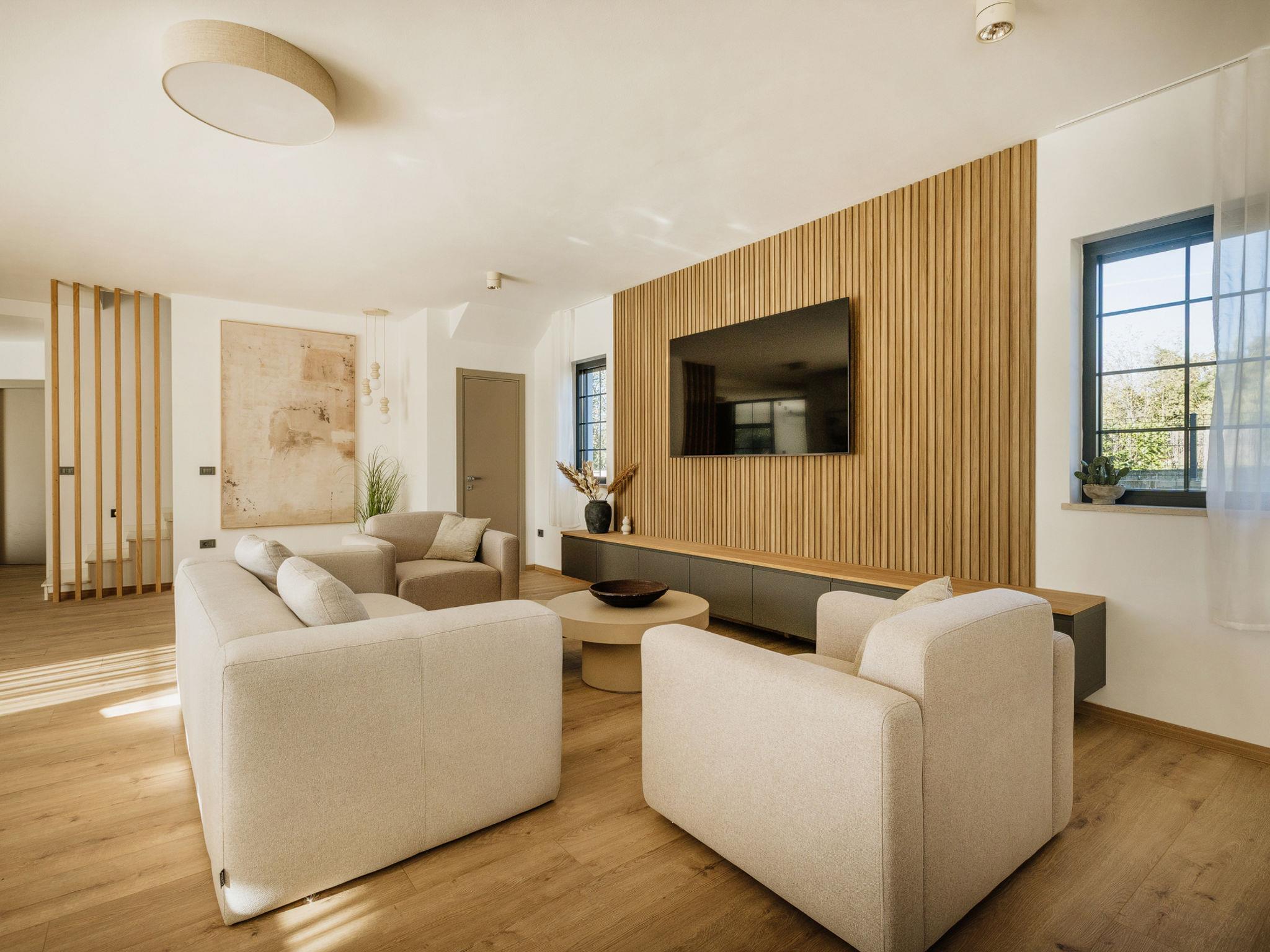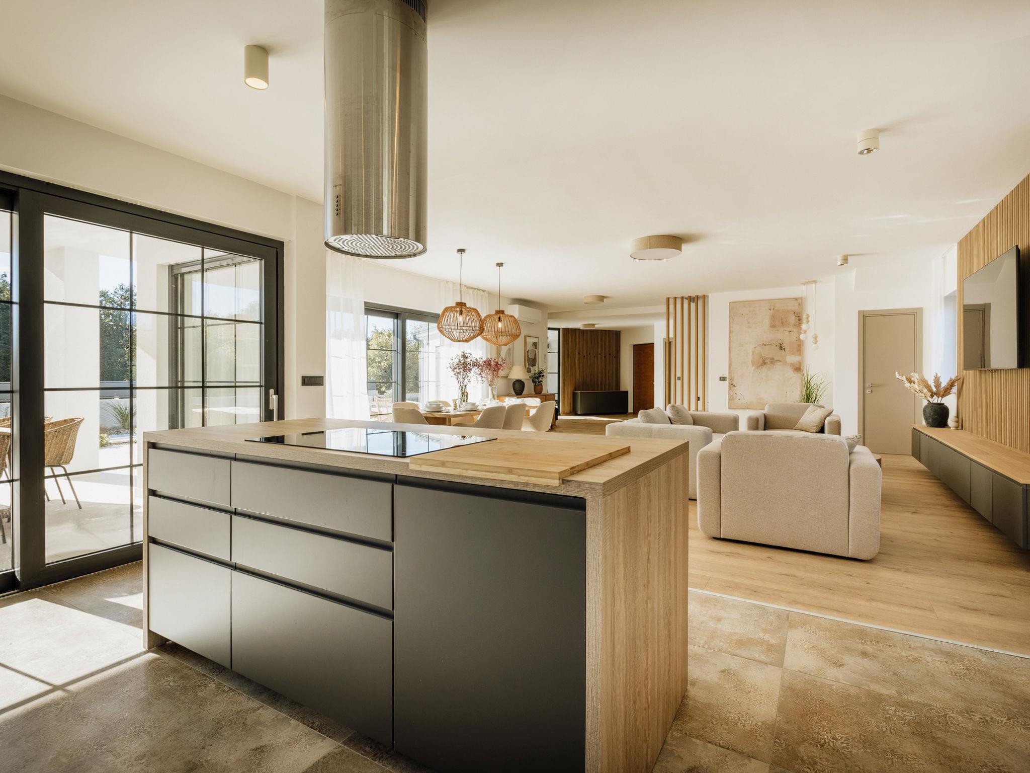 Beautiful, luxurious villa "Nina", 2 storeys, built in 2025. In the hamlet Pavici 1 km from the centre of Nova Vas, 3 km from the centre of Brtonigla, 7 km from the centre of Novigrad, in a quiet, sunny position, 8 km from the sea, 8 km from the beach. Private: property 500 m2 (fenced), garden with lawn, swimming pool angular (9 x 4 m, depth 145 cm, seasonal availability: 15.May. - 15.Sep.) with internal staircase. Outdoor shower, garden furniture, barbecue. In the house: internet access, washing machine. Parking (for 3 cars) at the house on the premises. Shop 1 km, supermarket 8 km, restaurant 1 km, bus stop 3.6 km, pebble beach 8 km, rocky beach 8 km. Walking paths from the house 500 m, cycle lane 550 m. Nearby attractions: Aquapark 2 km.