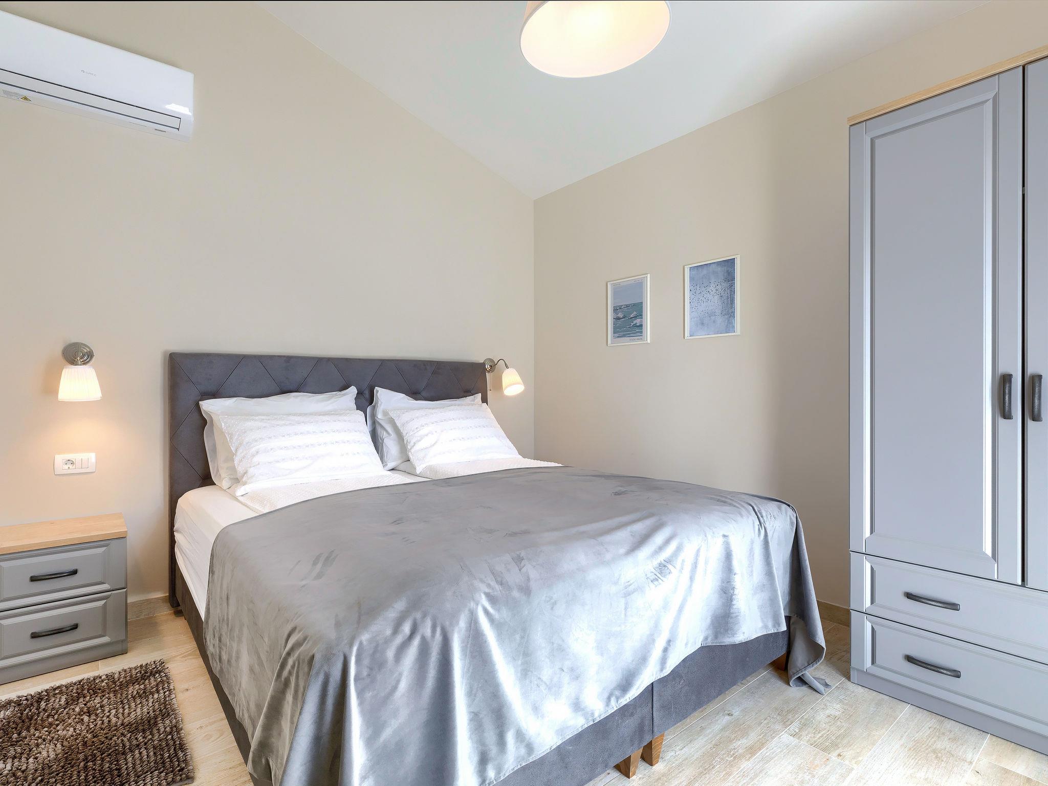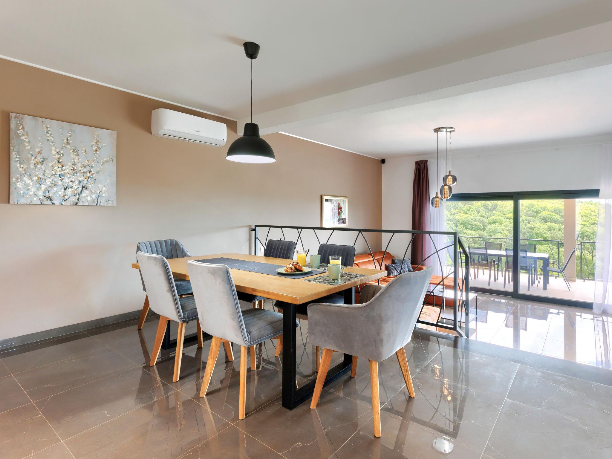 9-room house 270 m2 on 2 levels. Beautiful and tasteful furnishings: living/dining room with satellite TV (flat screen), air conditioning. Exit to the terrace, to the swimming pool. 1 room with 1 french bed (180 cm, length 200 cm), satellite TV (flat screen), air conditioning. Living/dining room with kitchen corner and satellite TV (flat screen). Exit to the terrace. 1 room with 1 french bed (180 cm, length 200 cm). Open kitchen (4 hot plates, oven, dishwasher, kettle, freezer, electric coffee machine). 2 showers/WC. No heating option. Upper floor: 1 room with 1 french bed (180 cm, length 200 cm), bath/WC and satellite TV (flat screen), air conditioning. 1 room with 2 beds (90 cm, length 200 cm), shower/WC and satellite TV (flat screen), air conditioning. Exit to the terrace. 1 room with 1 french bed (180 cm, length 200 cm). 2 rooms, each room with 1 bed (140 cm, length 200 cm). Bath/WC. Heating (extra). Terrace 20 m2, terrace 8 m2. Terrace furniture, deck chairs. Distant view of the sea. Facilities: safe, hair dryer. Internet (WiFi, free).
