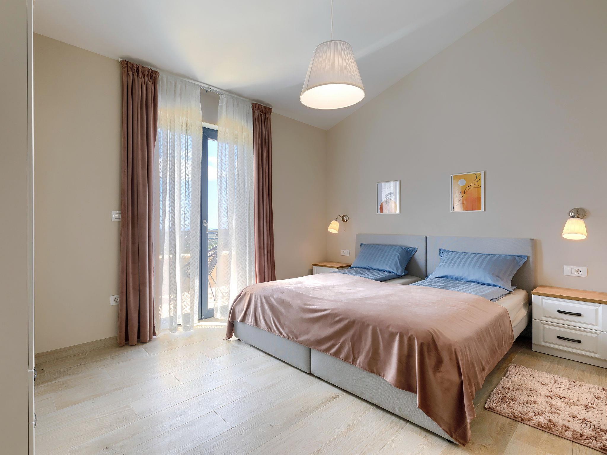 Beautiful single-family house "Villa Bella", 2 storeys. In the hamlet Srbani 4 km from the centre of Brtonigla, 9 km from the centre of Novigrad, in a quiet, sunny position, 9 km from the sea, in a cul-de-sac. Private: property 500 m2, swimming pool angular (8 x 4 m, depth 140 cm, seasonal availability: 01.May. - 01.Nov.) with internal staircase. Outdoor shower, garden furniture, barbecue. In the house: internet access, washing machine. Parking (for 2 cars) at the house on the premises. Shop 3 km, restaurant 3 km, bus stop 4.9 km, pebble beach 9 km, rocky beach 9 km. Walking paths from the house 100 m, cycle lane 150 m. Nearby attractions: aquapark 3 km. Please note: suitable for families. The owner does not accept any youth groups. Organizing a party is not allowed. The unit consists of 2 semi-detached houses rented as one unit.