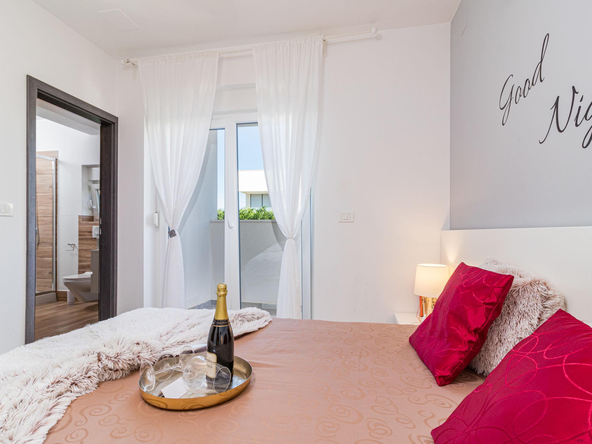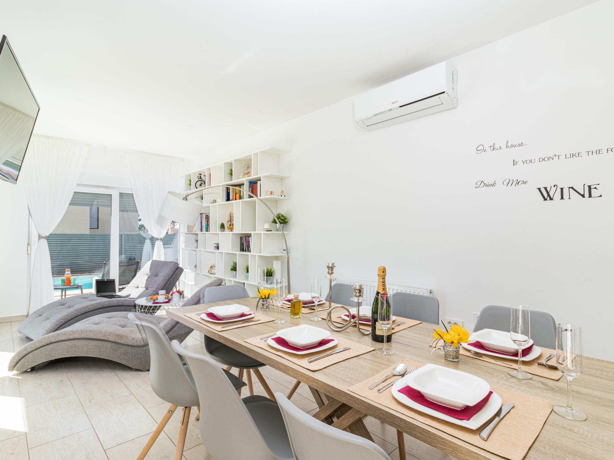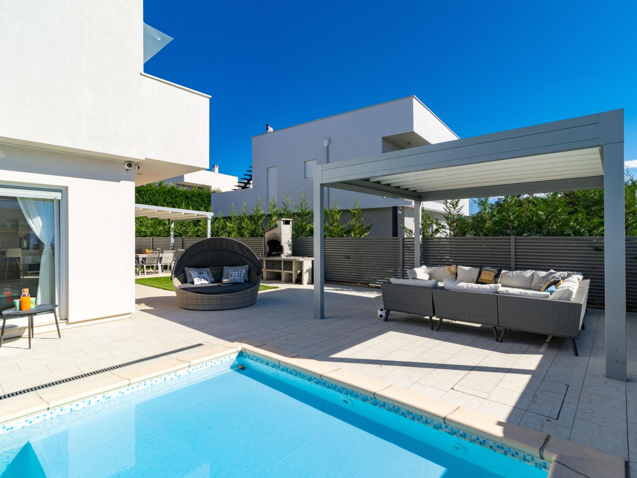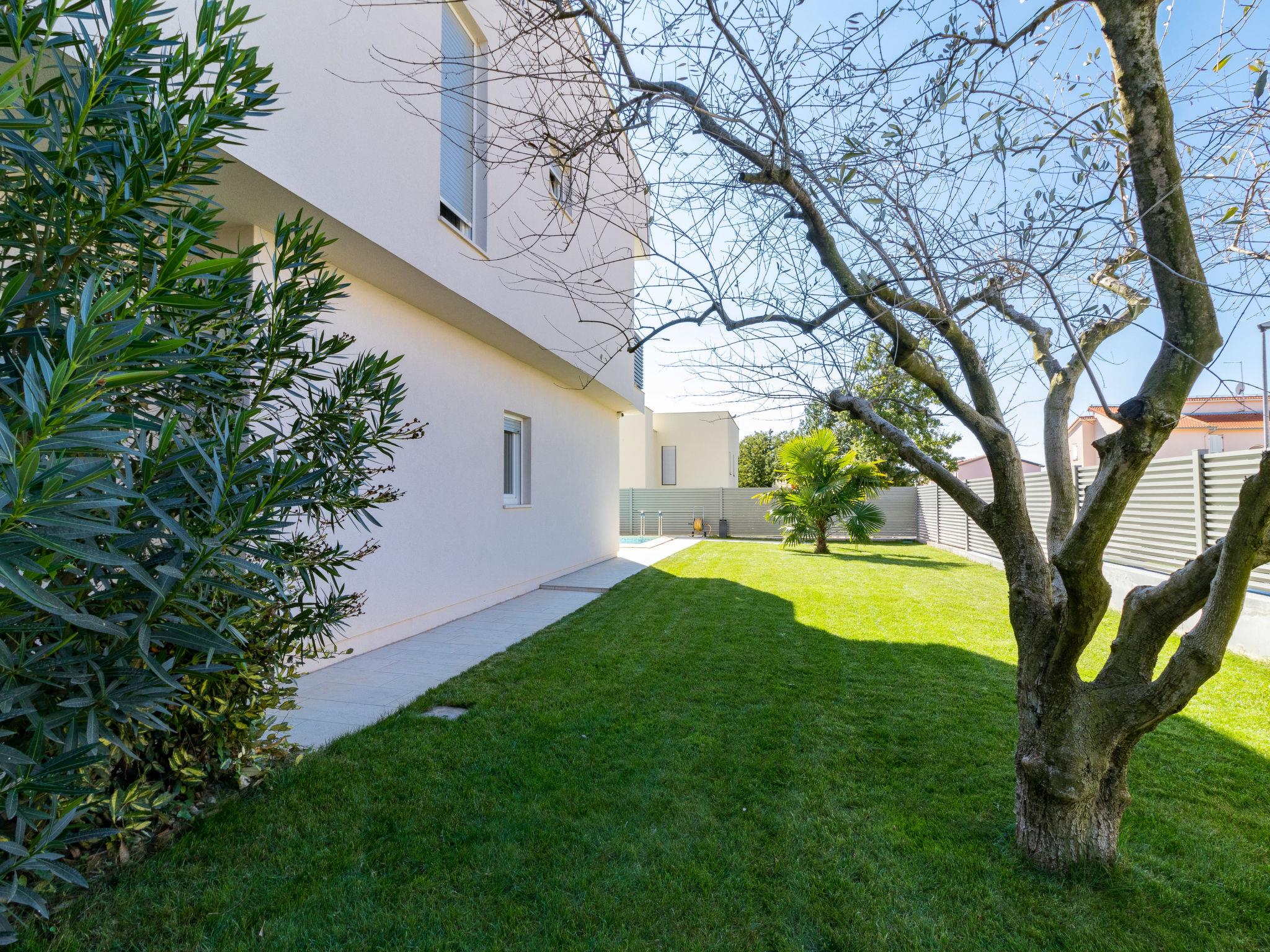 Modern single-family house "Villa Virtus", 2 storeys, built in 2016. 4 km from the centre of Novigrad, 8 km from the centre of Umag, 24 km from the centre of Porec, in the residential district, from the sea, 200 m from the beach. Private: property 500 m2 (fenced), swimming pool angular, heated (8 x 4 m, depth 145 cm, seasonal availability: 27.Mar. - 05.Nov.). Outdoor shower, hot tub, terrace, garden furniture. In the house: internet access, roof terrace, burglar alarm system, washing machine. Parking (for 2 cars) at the house on the premises. Shop 200 m, supermarket 4 km, bus stop 290 m, rocky beach 200 m. Marina 8 km.