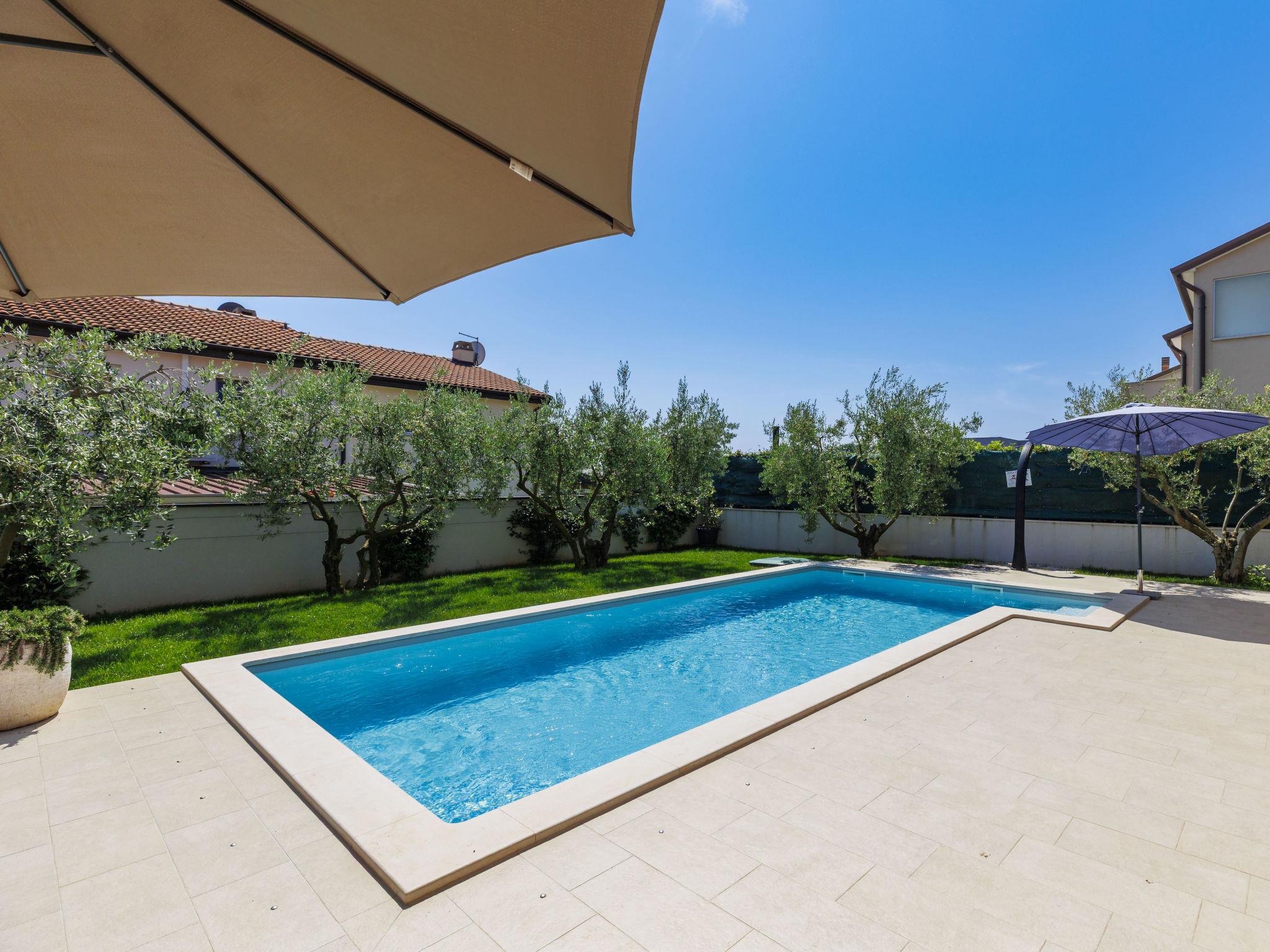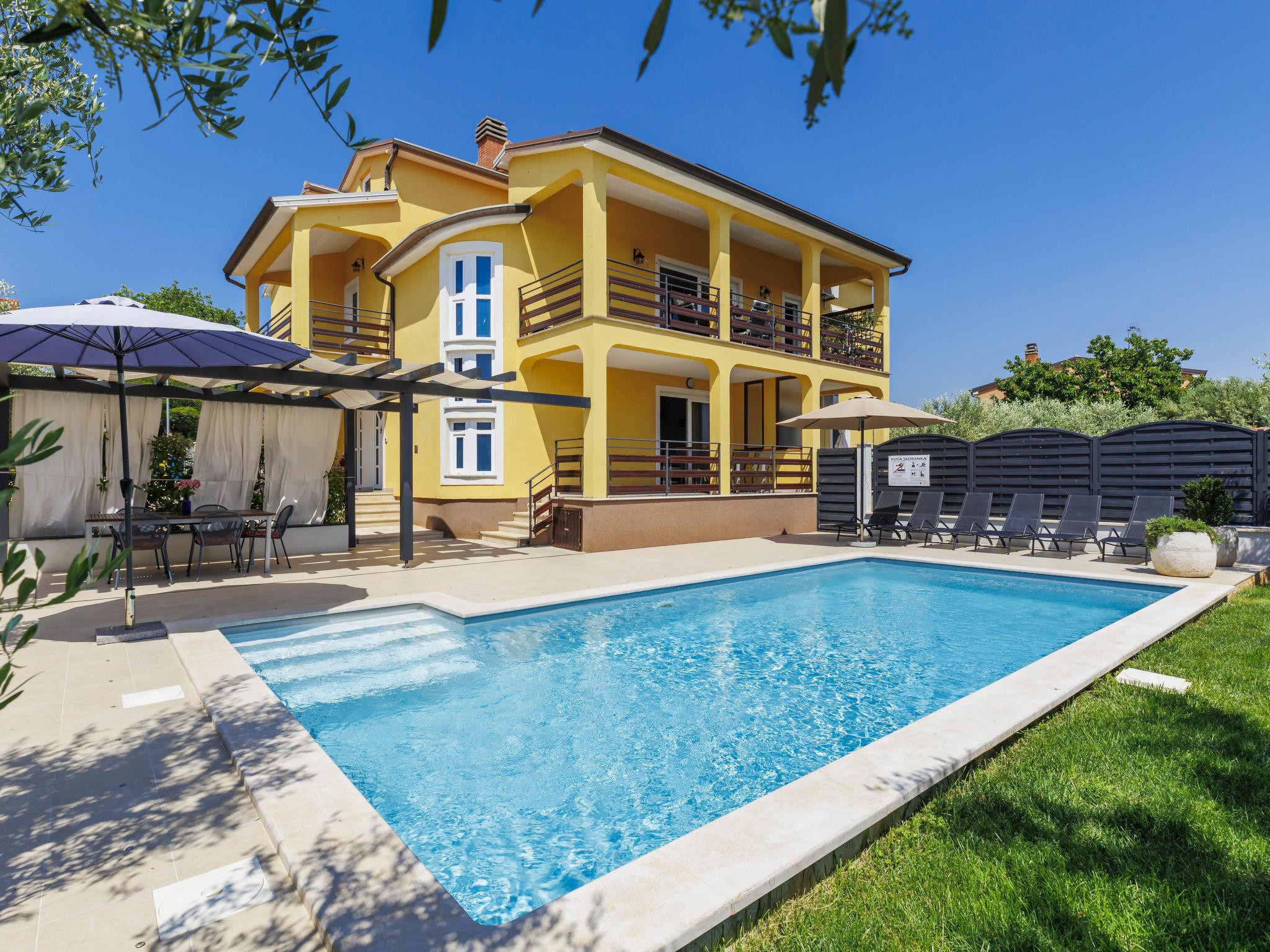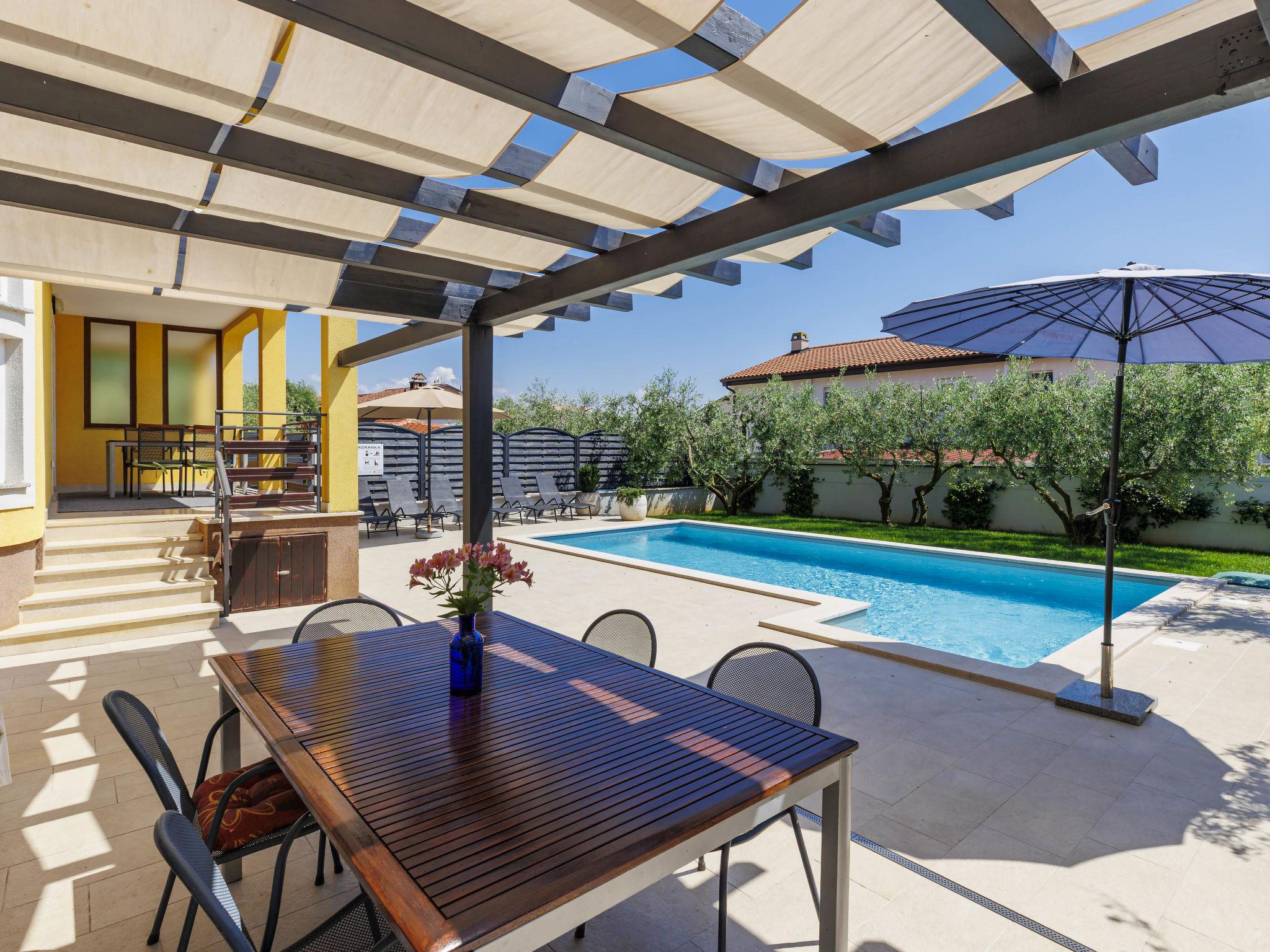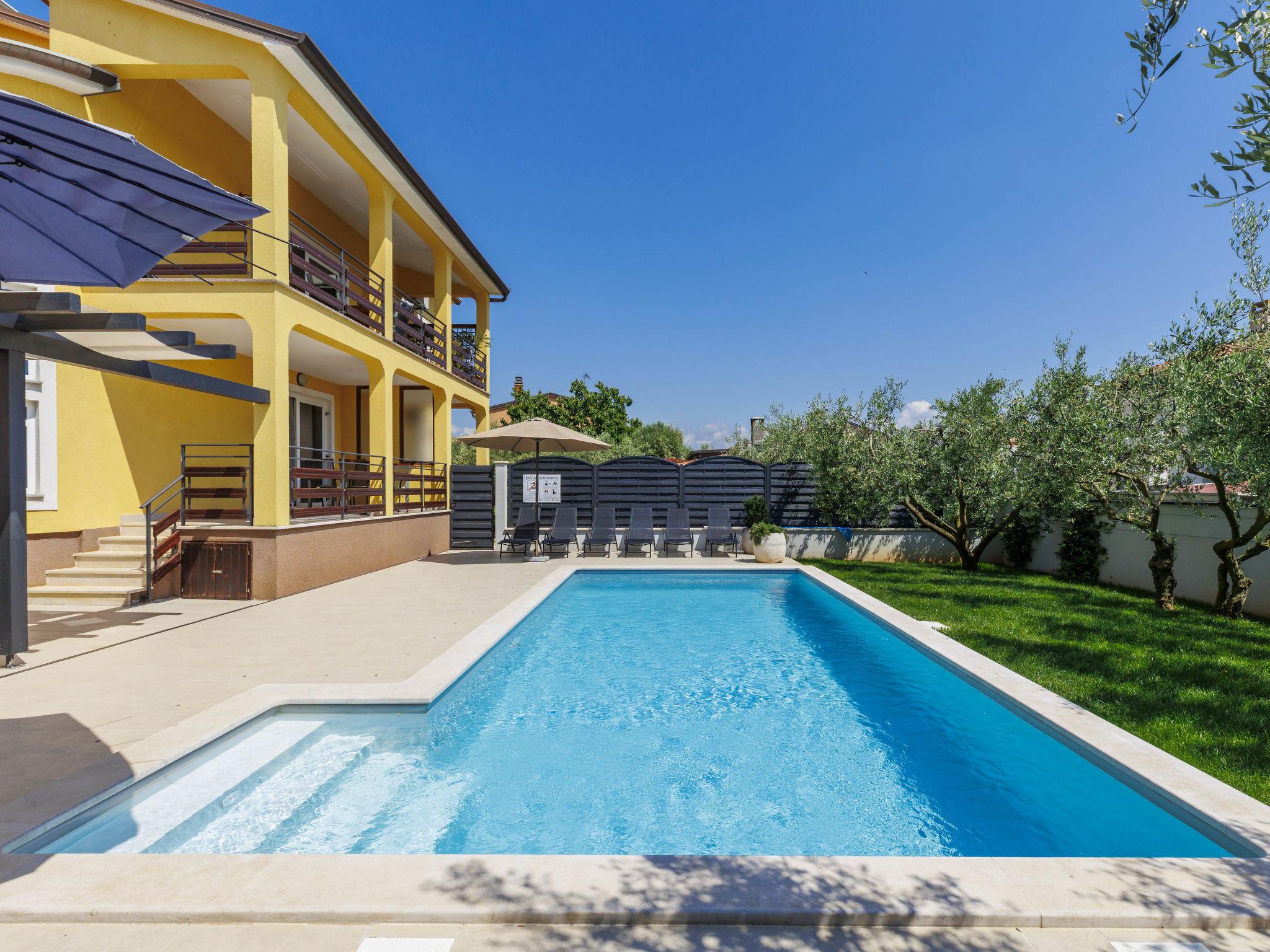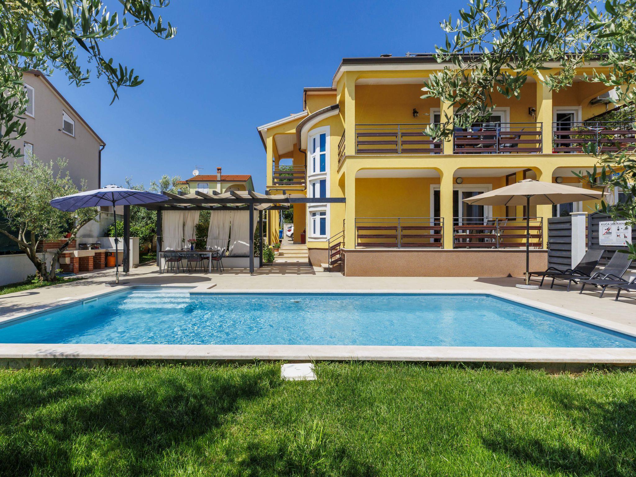 Semi-detached house "Jadranka", 2 storeys. In the hamlet Strada Contessa 2 km from the centre of Novigrad, in a quiet, sunny position, 1.5 km from the sea, 1.5 km from the beach, in a cul-de-sac. Private: property 400 m2 (fenced), lawn, swimming pool angular (8 x 4 m, 32 m2, depth 140 cm, seasonal availability: 01.May. - 30.Sep. pool opening hours: 08:00-20:00) with internal staircase. Outdoor shower, garden furniture, barbecue. In the house: internet access, washing machine. Airport transfer (extra). Parking (for 2 cars) at the house on the premises. Shop 1.5 km, supermarket 1.5 km, restaurant 1.5 km, café 1.5 km, bus stop 2.3 km, pebble beach 1.5 km. Marina 1.5 km, tennis 1.5 km, children's playground 1.5 km. Nearby attractions: Aquapark 5 km. Please note: suitable for families. The owner does not accept any youth groups. Semi-detached house consists of 2 apartments rented as one unit.