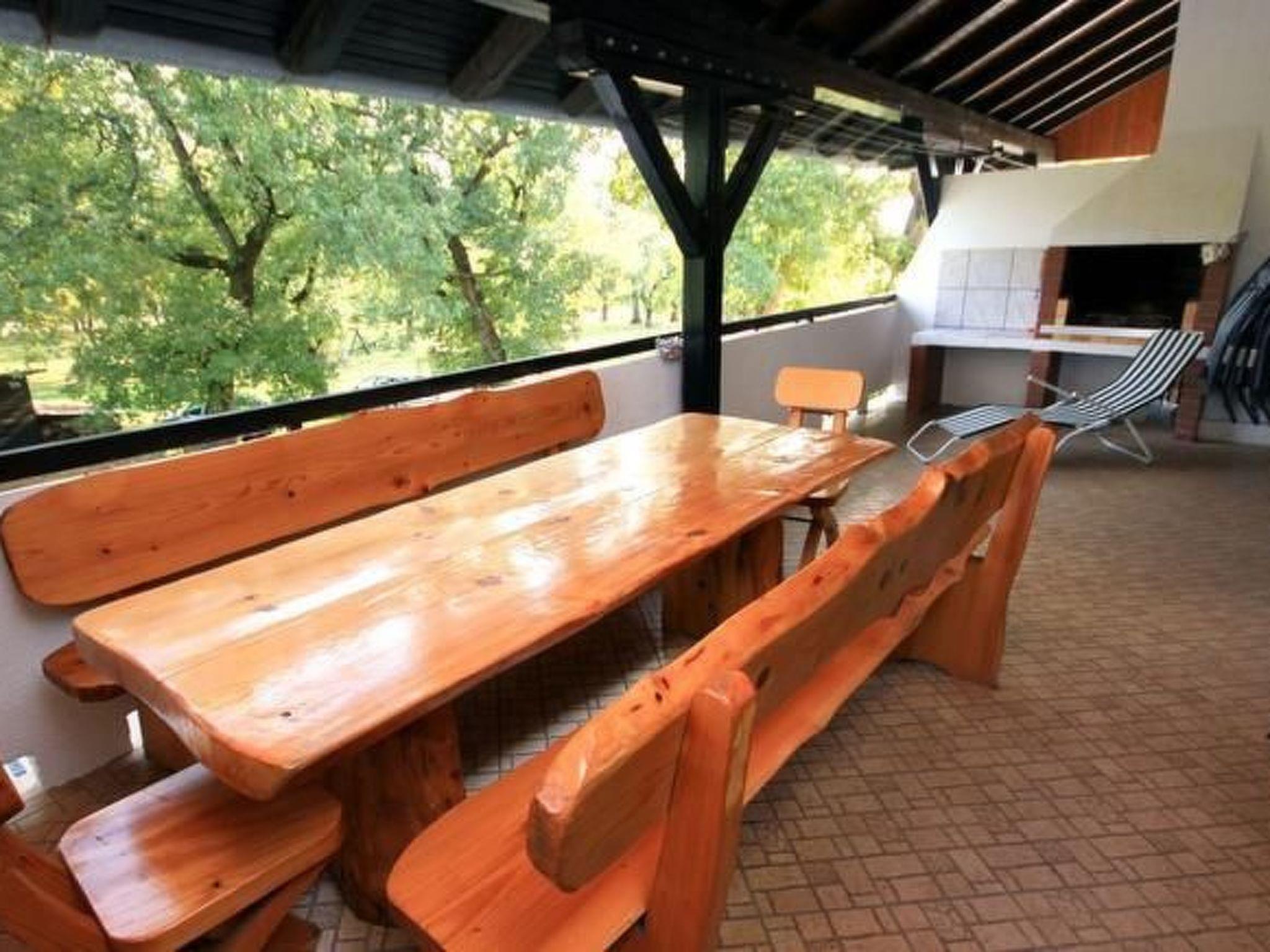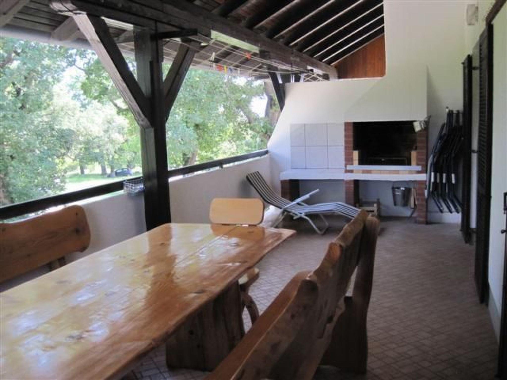 The approximately 25 m² balcony, furnished with a large table and benches, invites you to linger with its built-in barbecue.