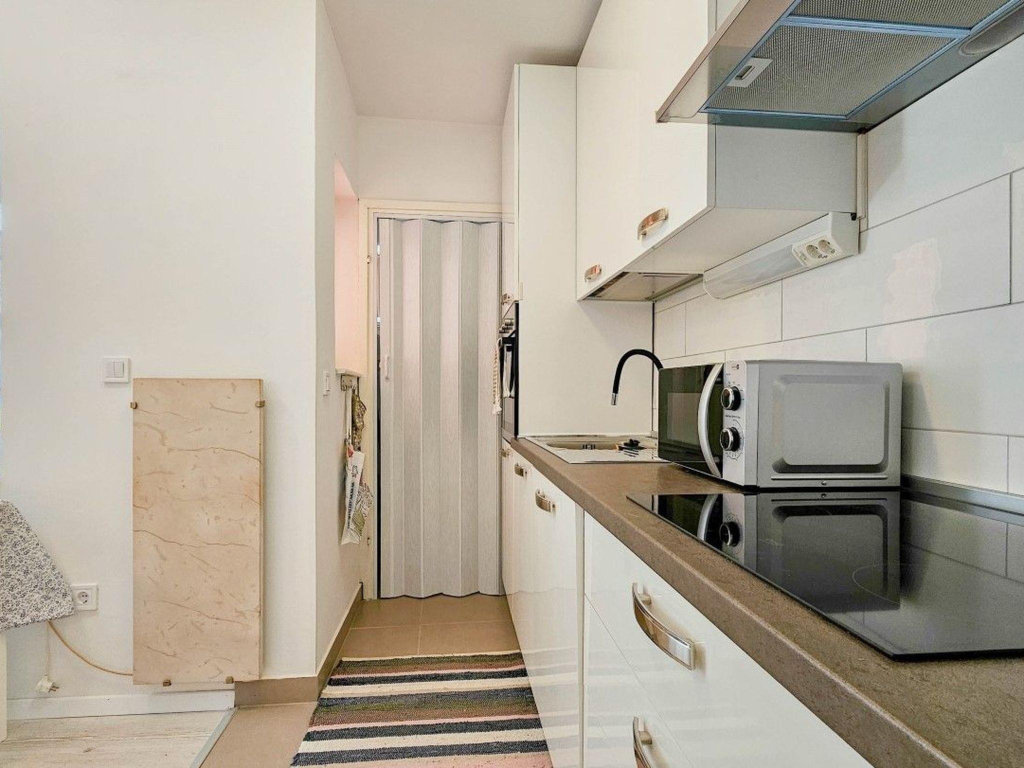 The apartment consists of two bedrooms - one with a double bed, the other with a single bed - and an extra bed in the living room with kitchen. The kitchen is equipped with the basic things for preparing meals, and the bathroom has a shower, toilet and washing machine. An enclosed balcony with seating furniture provides a pleasant space for morning coffee or evening relaxation.