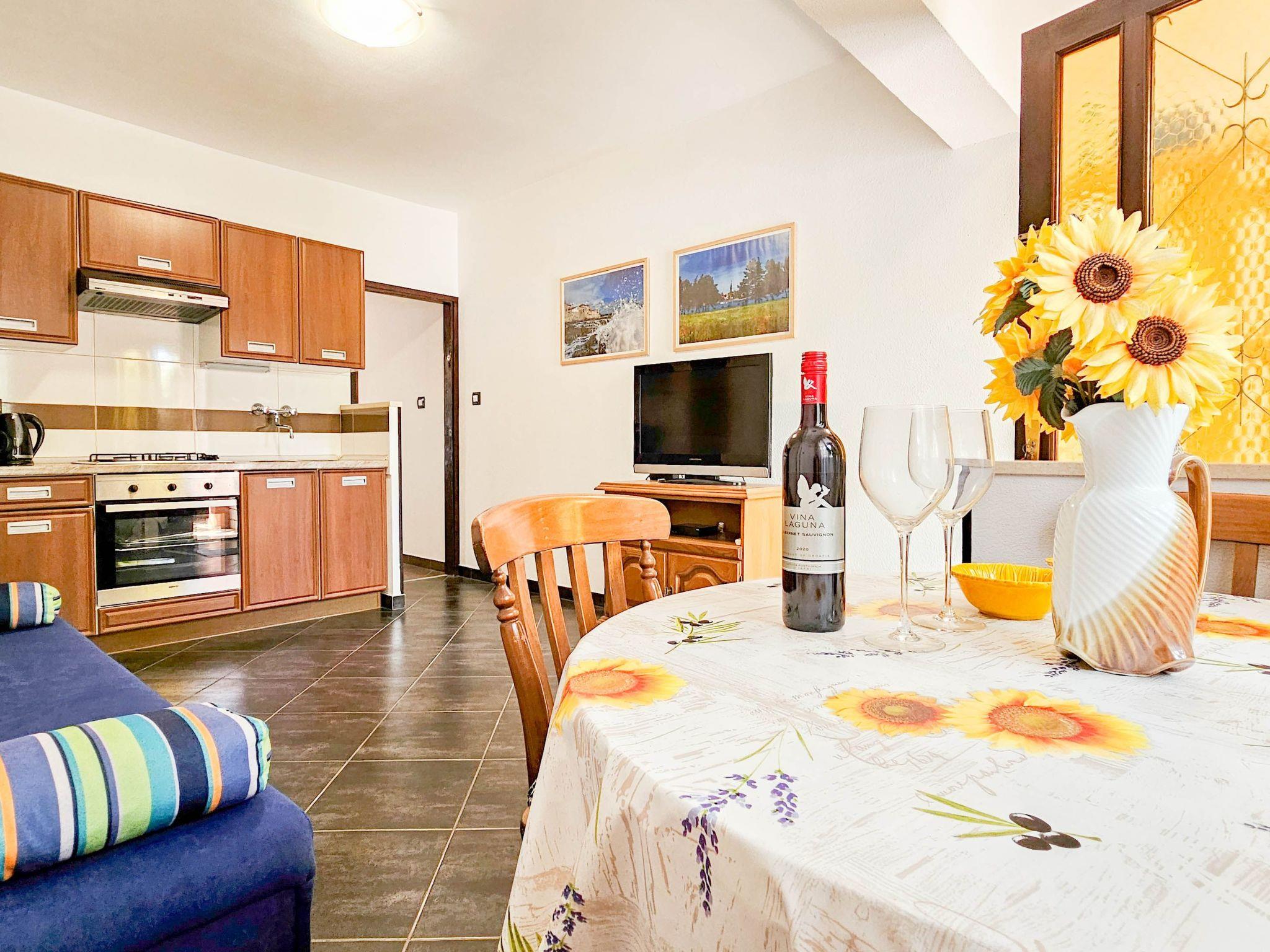 Located in a quiet part of Novigrad, this ground floor apartment offers the perfect combination of comfort and relaxation. It is ideal for couples and consists of a cozy bedroom, a practically equipped kitchen with a dining area and a bathroom with a shower. There is also a terrace for morning coffee or evening socializing with a glass of wine.