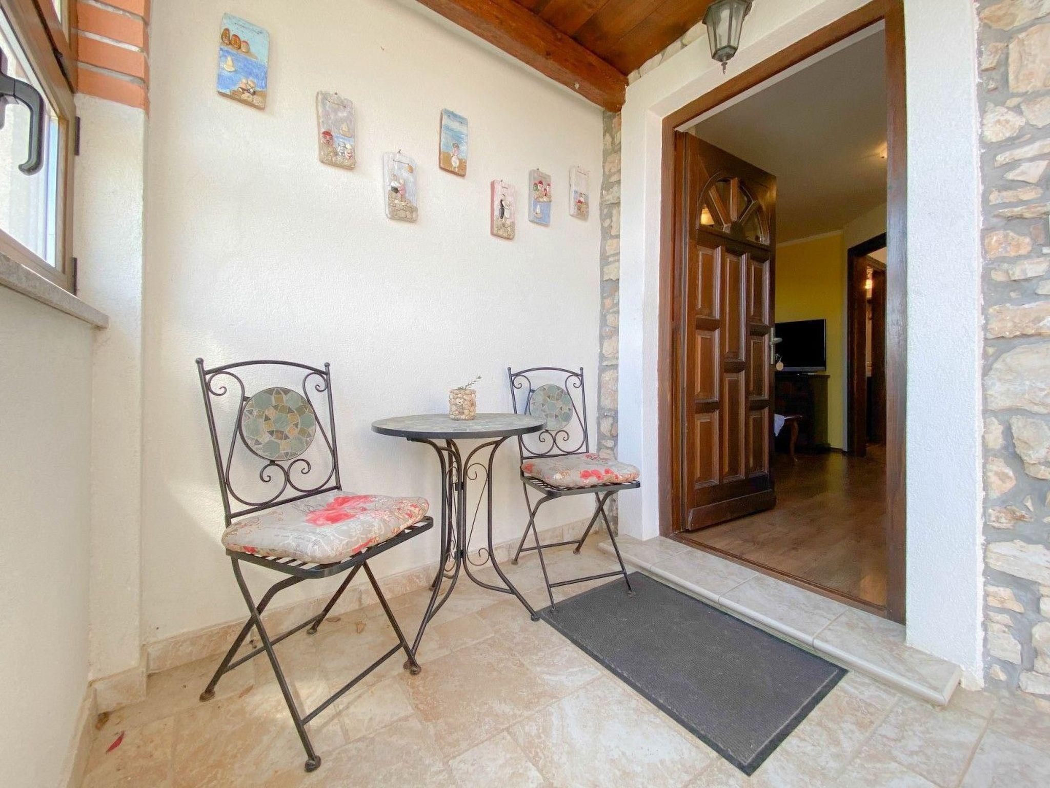 Inside, the apartment is well-equipped to cater to your every need. The cozy bedroom features a comfortable double bed, ensuring a restful night's sleep. The adjoining kitchen and living room area are thoughtfully designed for convenience and functionality. The kitchen comes equipped with a gas cooker, refrigerator, and coffee maker, perfect for preparing meals and beverages during your stay. Additionally, the presence of partial air conditioning allows for a comfortable indoor climate on warmer days.