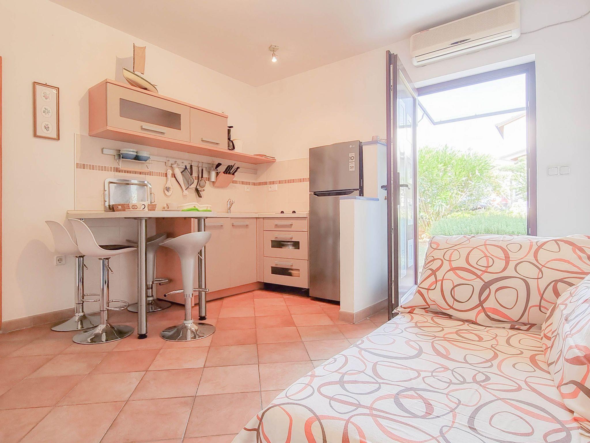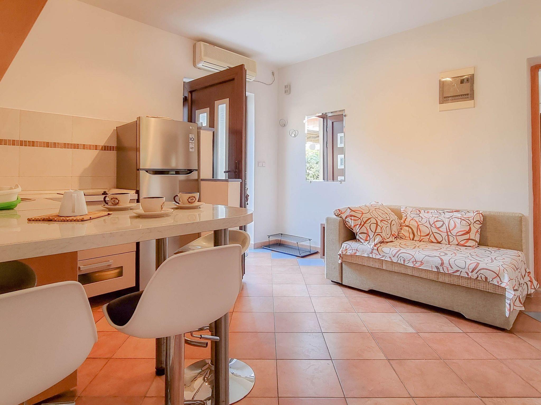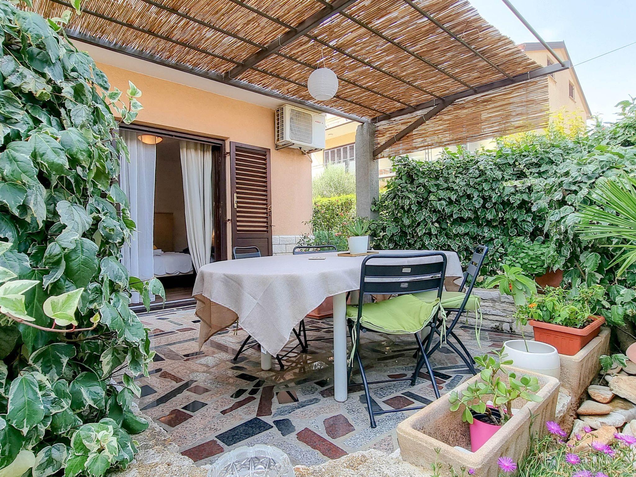 Stepping outside, the apartment reveals a charming terrace furnished with outdoor seating, offering a quaint spot for morning coffees or relaxing evenings under the stars. Here, the essence of Novigrad's tranquil lifestyle is captured beautifully, allowing guests to unwind in the privacy of their own outdoor space.