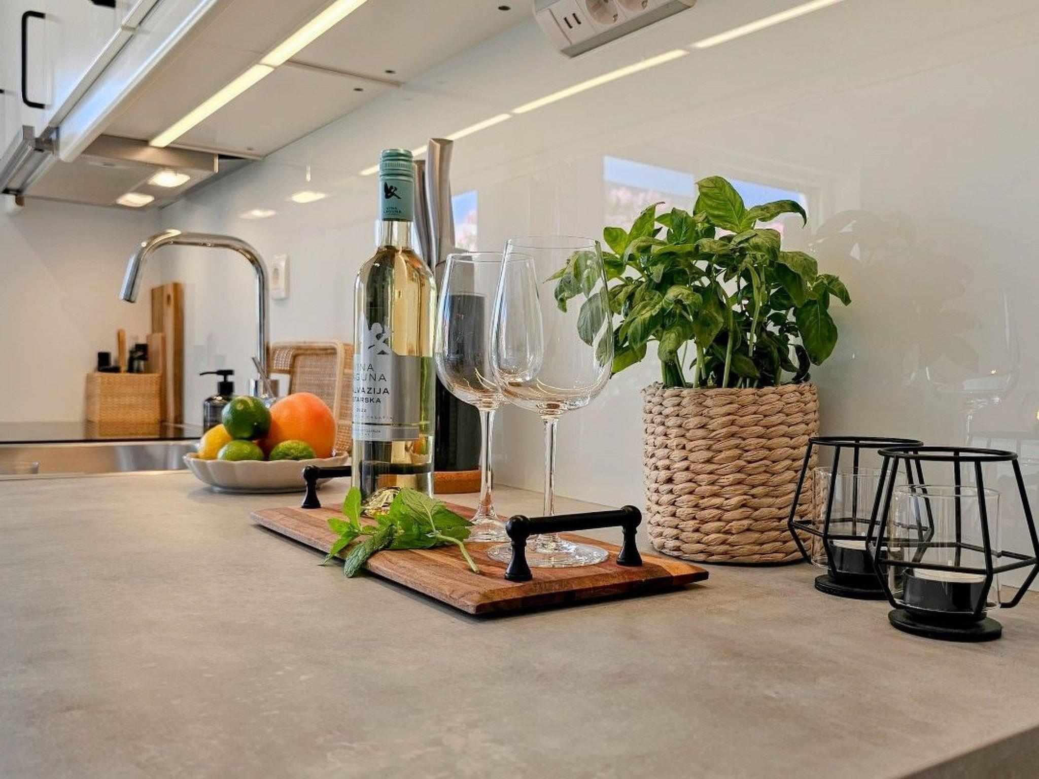The exterior space of the apartment provides additional comfort and the possibility of enjoying the fresh air. There is a sofa on the terrace, ideal for relaxing and socializing with a view of the surroundings. Also, guests can use the grill to prepare delicious meals outdoors. Parasols provide much-needed protection from the sun during hot summer days.