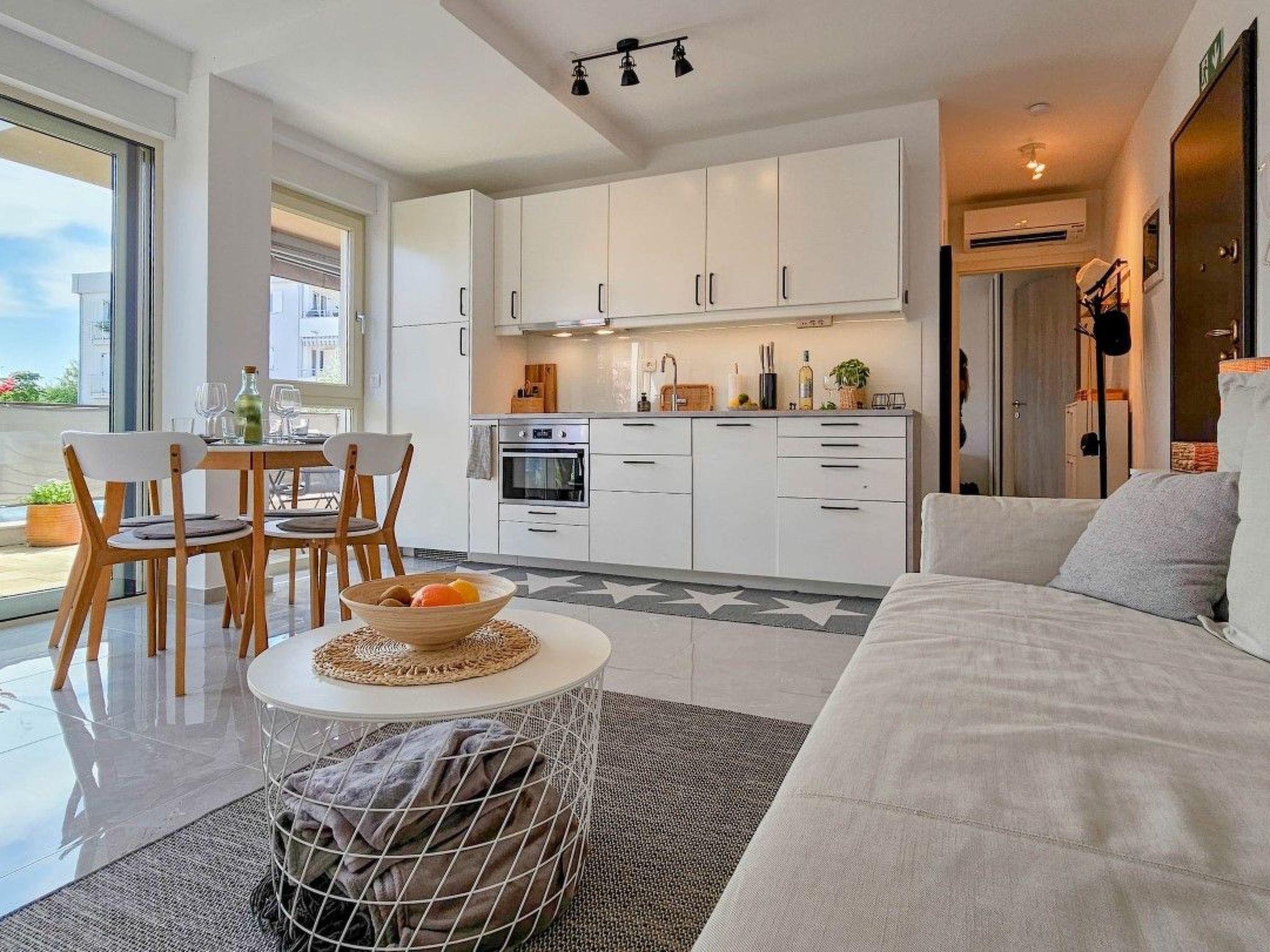Inside the apartment, contemporary design dominates, creating a pleasant and elegant ambience. It consists of one bedroom, modern bathroom, kitchen and living room. The living room also has a comfortable sofa bed that can accommodate an additional two people.
