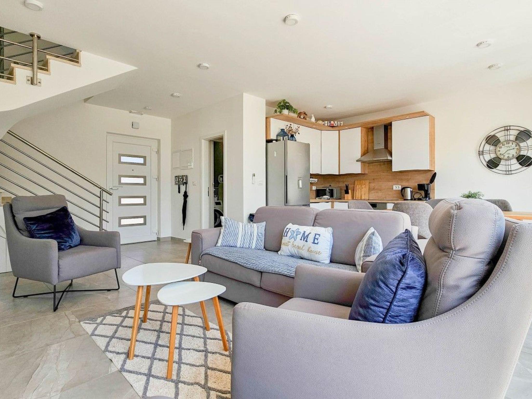 On the ground floor of the house there is a modern equipped kitchen with a dining room, a spacious living room with a sofa bed for 2 people, one bathroom and a laundry room. On the first floor there are two comfortable bedrooms with a double bed and an additional bathroom.