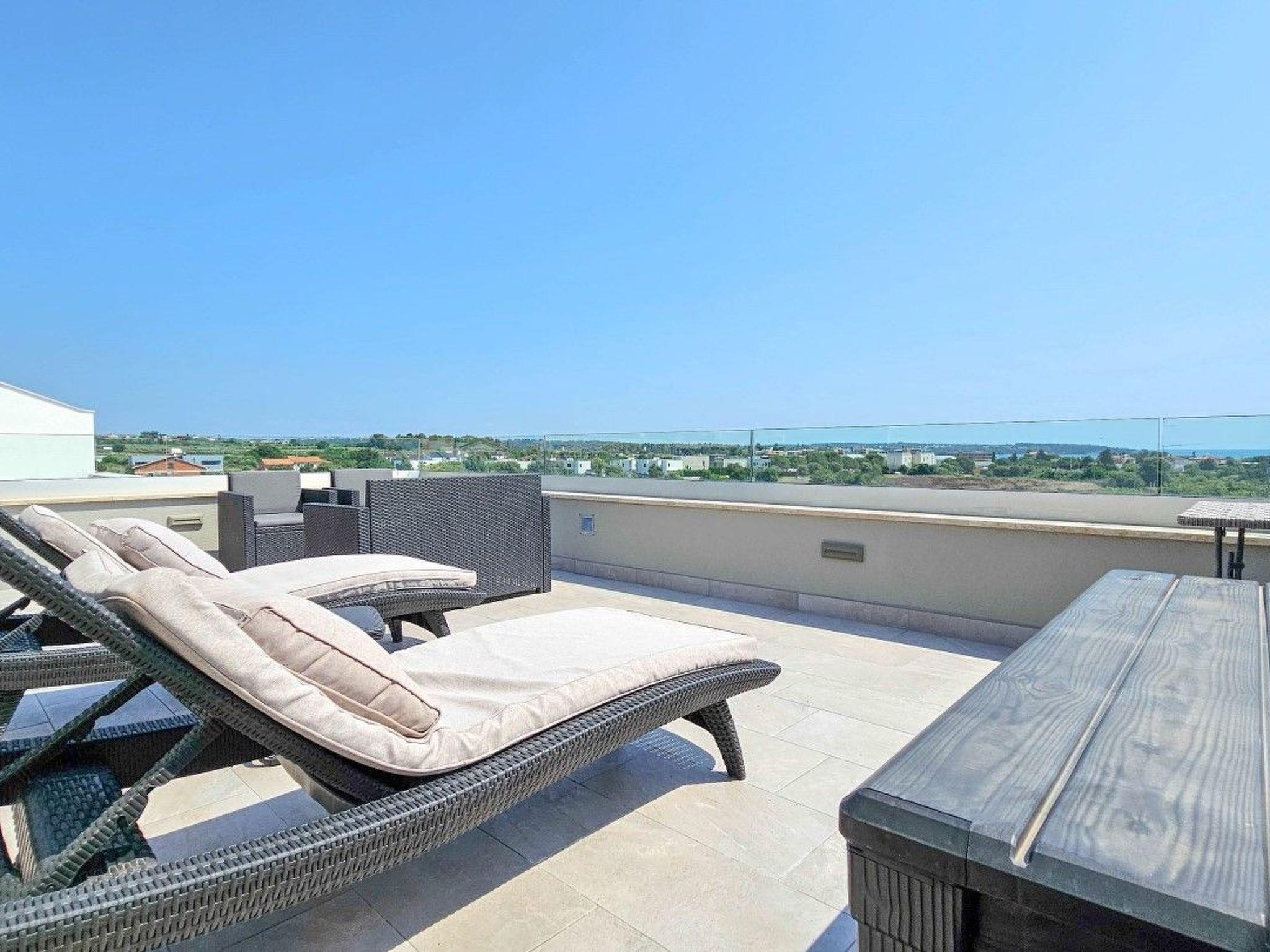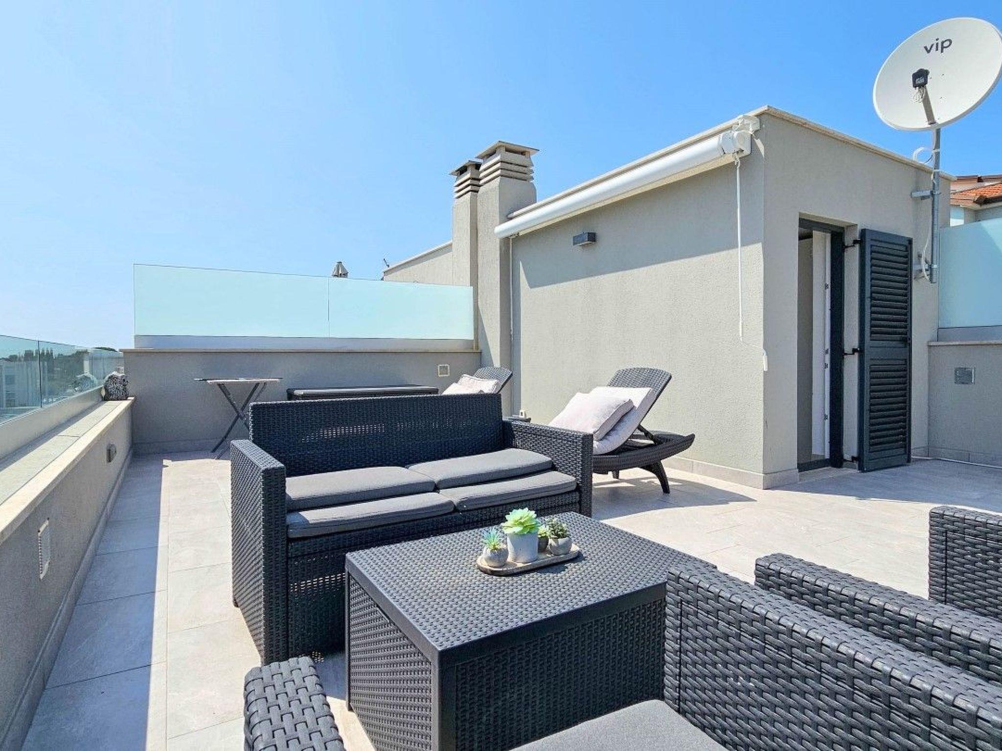 The house extends over two floors, and two spacious terraces offer you beautiful views of the sea and the surrounding area. The roof terrace with seating is perfect for enjoying the sunsets and the panoramic view of the marina and the Old Town, while the ground floor terrace equipped with garden furniture, a barbecue and a sink is ideal for relaxed evenings with a barbecue and socializing.