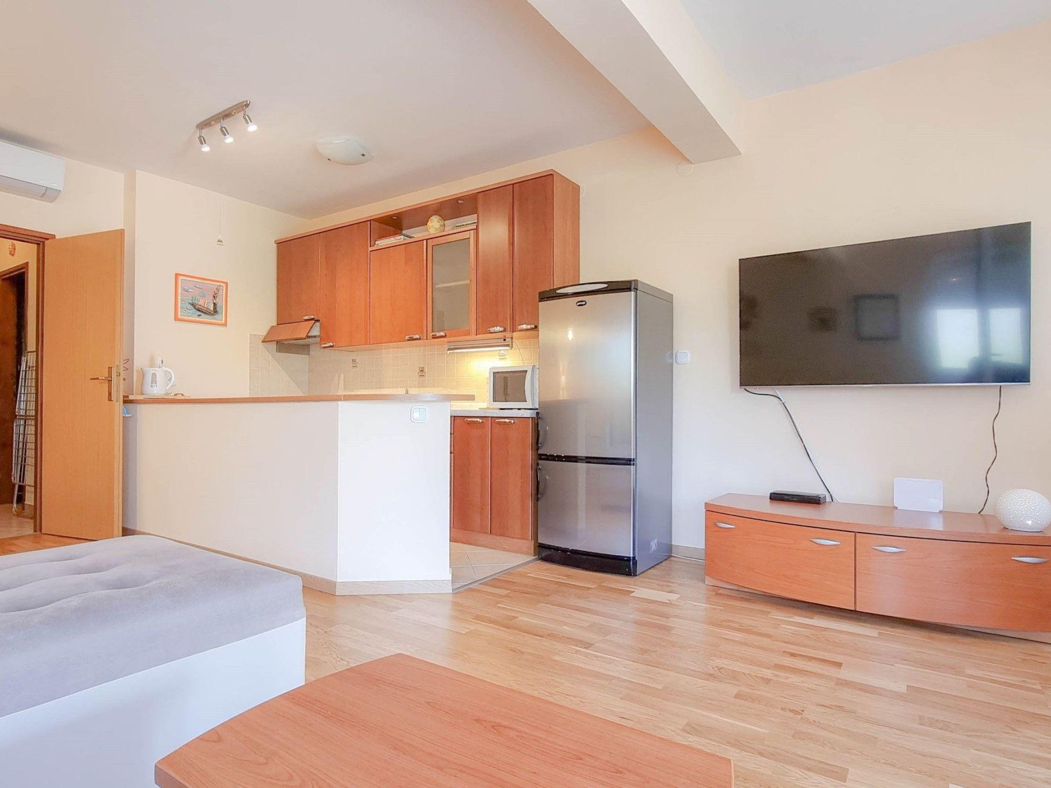 Inside, the apartment encompasses a thoughtfully arranged living space designed to accommodate 2 to 3 guests comfortably. The bedroom is cozy, featuring a double bed for restful nights. The living area houses a sofa bed suitable for an additional guest, ensuring everyone has plenty of space to relax. The kitchen comes fully equipped with an electric stove, refrigerator, microwave, dishwasher, gas cooker, and coffee machine, facilitating easy meal preparation for all dining needs. Added conveniences include a washing machine for sole use within the property, SAT-TV, internet access, and air conditioning in parts of the apartment, making it a comfortable retreat year-round.