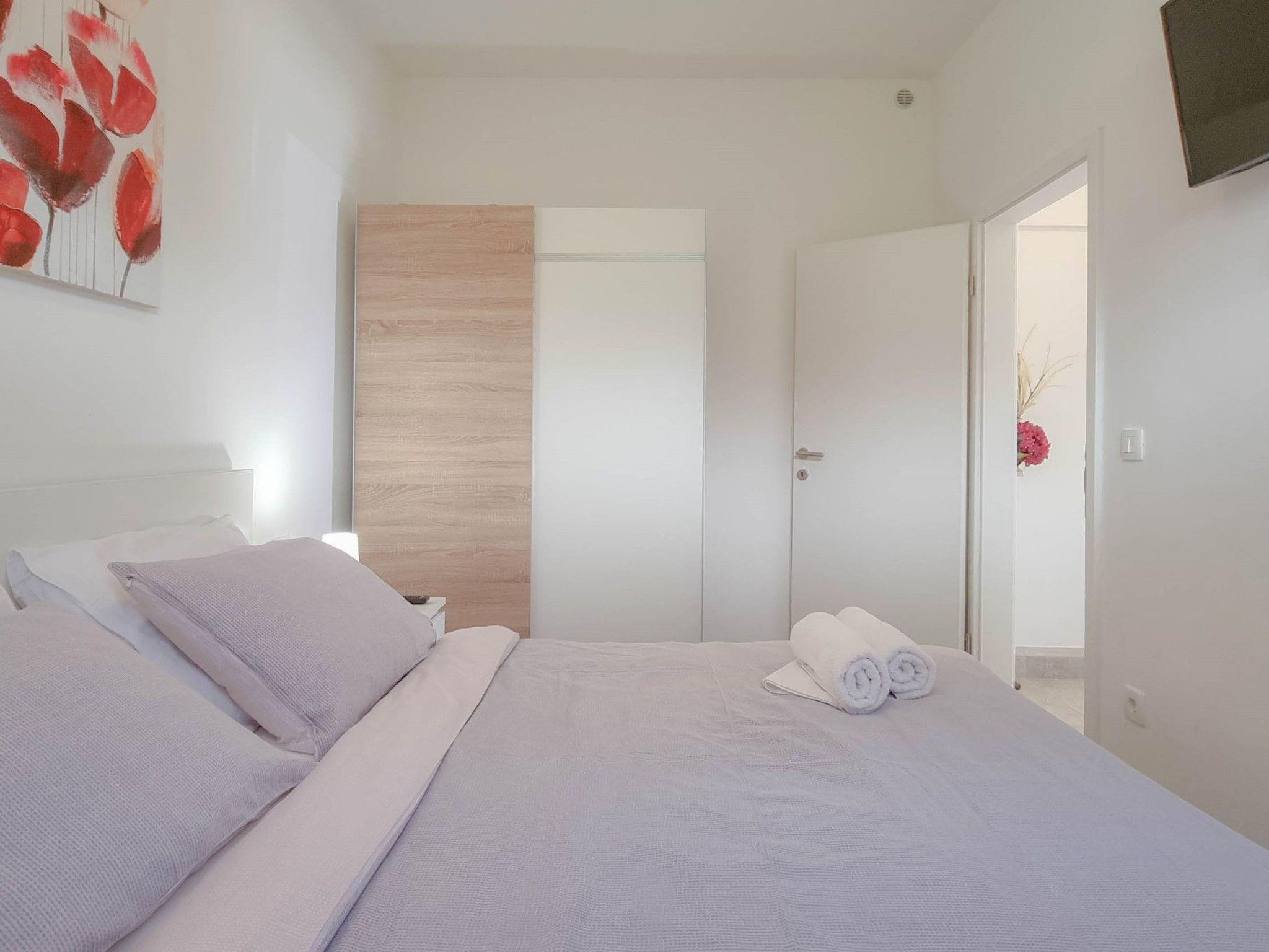 Inside, the apartment caters to your every need with its thoughtful amenities and homely comfort. The layout features two well-appointed bedrooms, ensuring a restful night's sleep for all guests. The living area is designed for relaxation, melding seamlessly with a fully-equipped kitchen that includes a dishwasher, electric stove, microwave, and all-important coffee machine. Whether you're starting your day with a morning coffee or winding down in the evening, the air-conditioned spaces promise a cozy retreat from the outdoor activities.