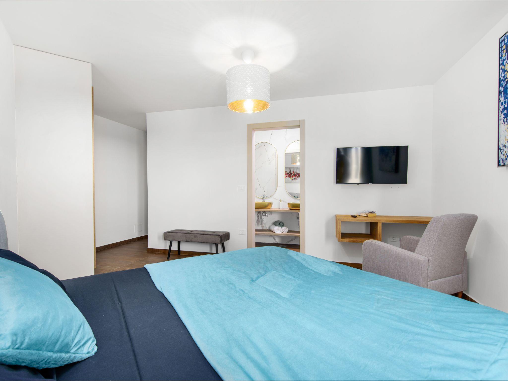 The centrepiece of the villa is the lovingly designed interior, which is equipped with all the amenities to make your stay as comfortable as possible. On a generous living space of 150 m2, the villa offers three inviting bedrooms and just as many bathrooms, guaranteeing enough privacy and comfort for up to 7 people. A washing machine, coffee machine and dishwasher are also available for your exclusive use, making self-catering a breeze.