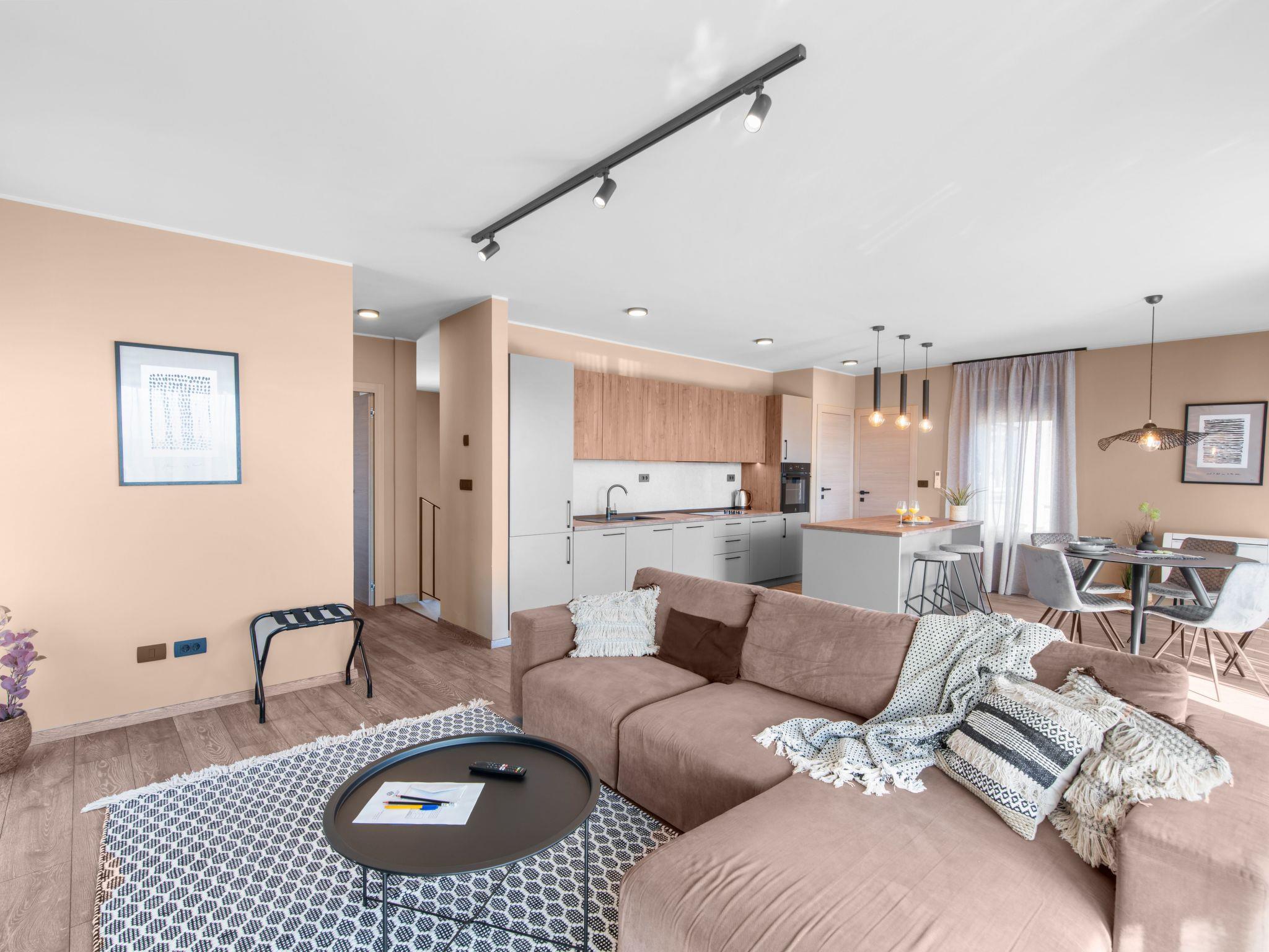Inside the flat, guests will find a carefully furnished environment that is ideal for families or groups of up to 5 people. In addition to two cosy bedrooms and two practical bathrooms, you will benefit from the presence of an espresso pot and a dishwasher to make your everyday life easier. The air-conditioned environment throughout the flat provides additional comfort. Furthermore, a washing machine for sole use offers a practical solution for longer stays.