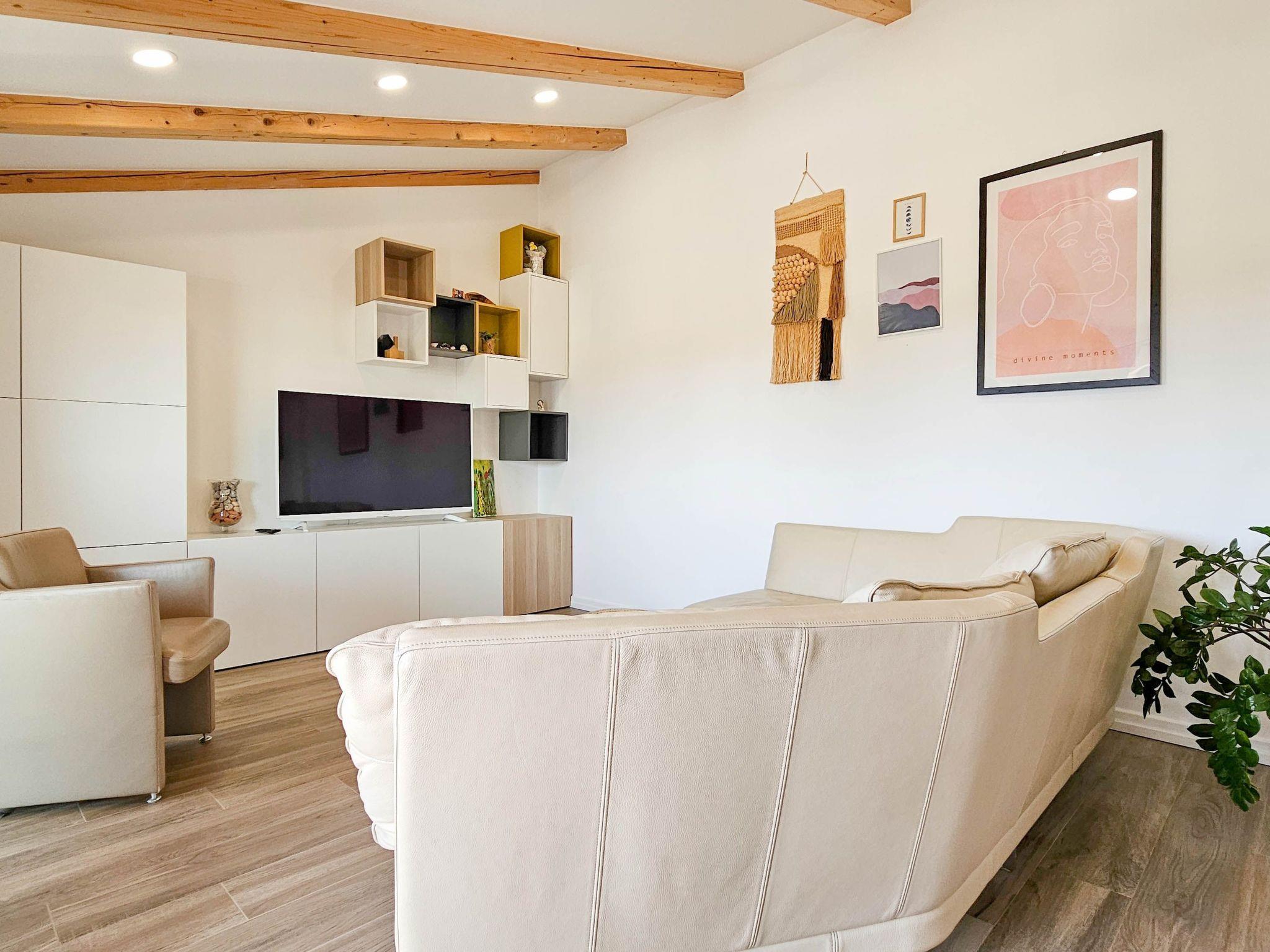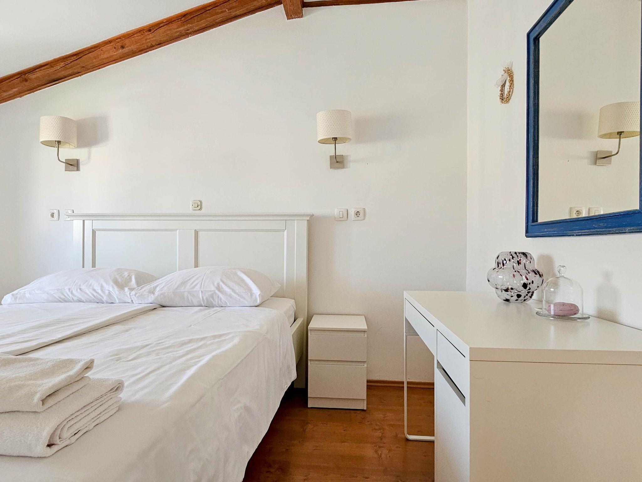The apartment consists of two bedrooms with comfortable double beds, a bright living room and a kitchen with a dining area. The kitchen is equipped with the basic things for preparing meals, and there is also a beautiful balcony with a table and chairs, ideal for morning coffee or evening relaxation. The apartment also has a modern bathroom with a shower and toilet.