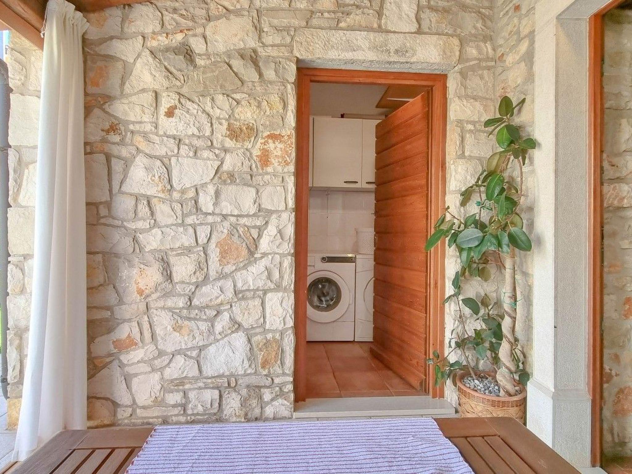 The house's prime location places you in the heart of Istrien's enchanting atmosphere, with the beach merely 100 meters away, inviting for sun-soaked days and relaxing swims in the sea. For the adventurers, water sports are available within a short 700-meter stroll. The nearest town center, just 200 meters from your doorstep, offers a glimpse into the local life with its array of shops, restaurants, and cafés, ensuring your stay is as leisurely or as lively as you wish. Moreover, the convenience of having a grocery store within the same proximity allows for easy access to all your essentials.