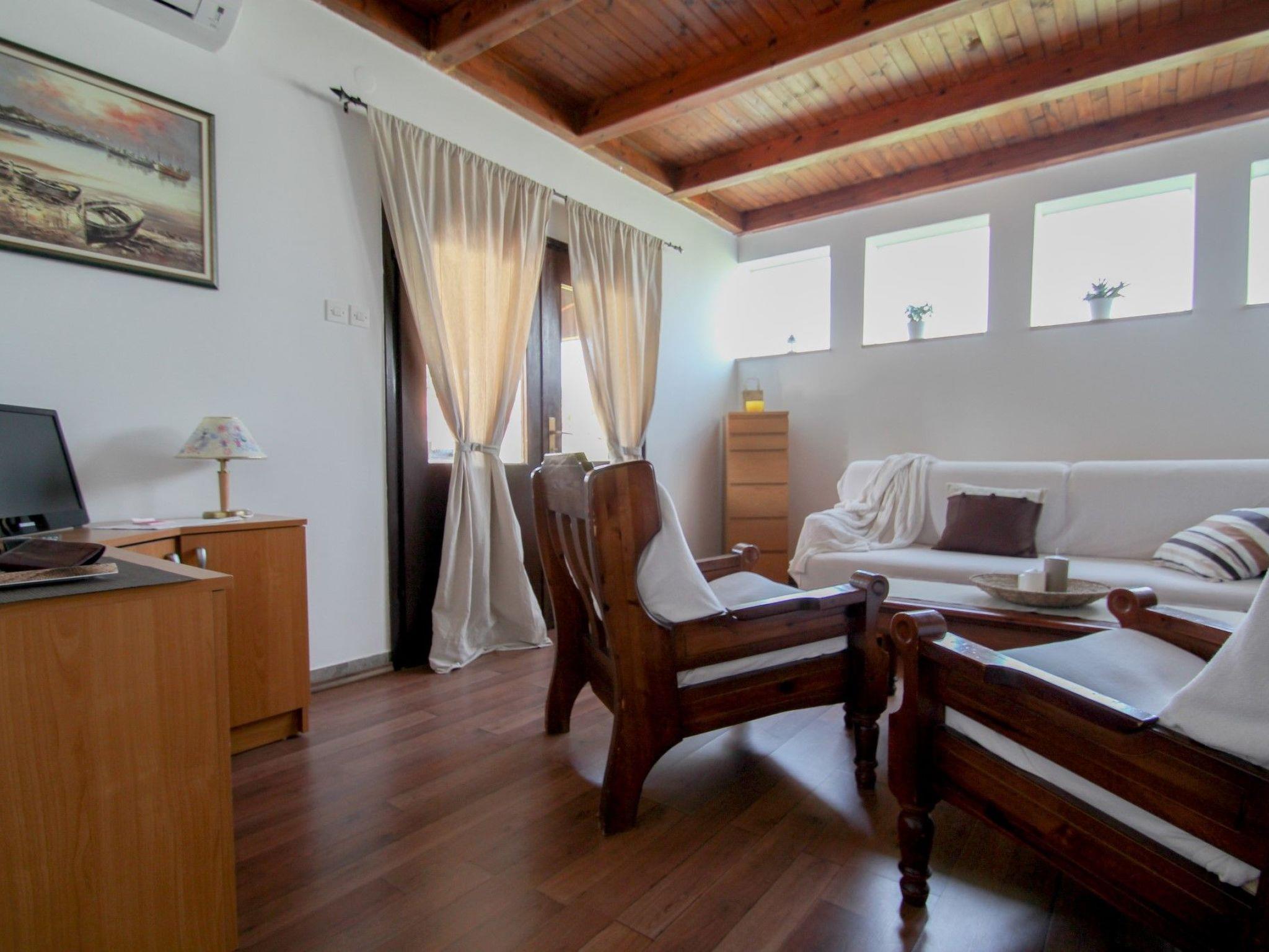 Inside, the holiday home is thoughtfully equipped to cater to your every need. The layout includes one cozy bedroom with a double bed, providing a peaceful night's rest. The living space is enhanced with a sofa bed, suitable for an additional 1-2 visitors, ensuring everyone has a comfortable spot. The kitchen is ready for your culinary adventures, fitted with an electric stove, refrigerator, and a coffee maker, perfect for your morning brew. The bathroom offers a practical setup with a shower and wc. For added comfort, the presence of air conditioning in parts of the house, SAT-TV, and bed linen included in the price makes your stay even more enjoyable.