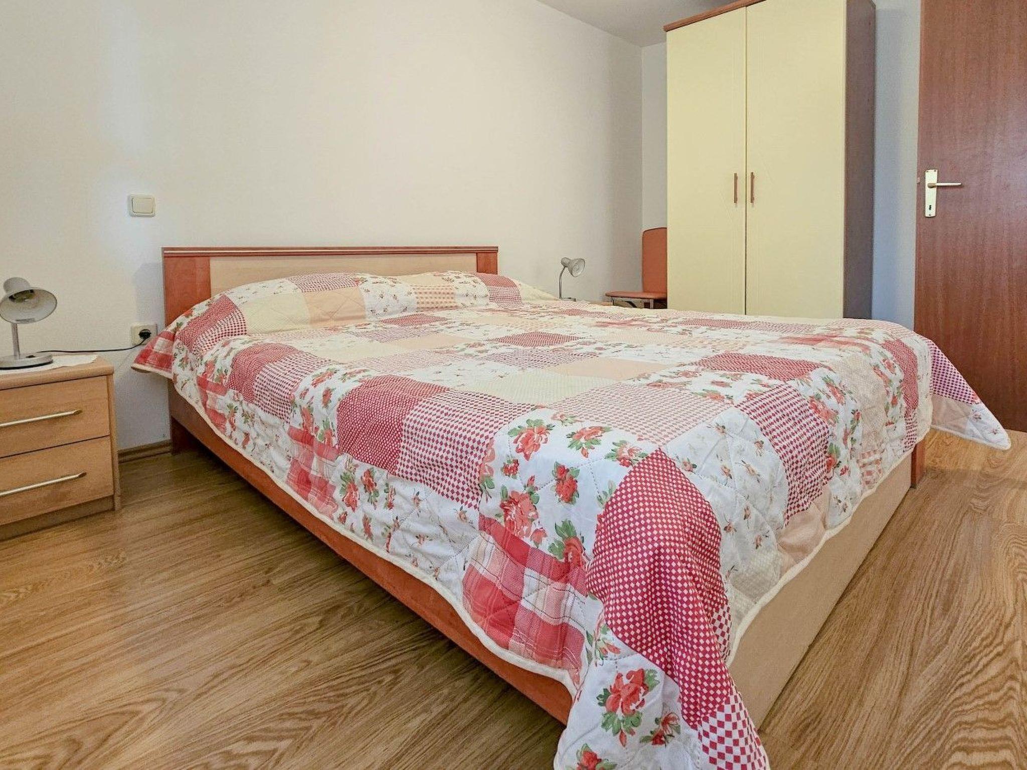 Inside, the apartment spans a generous 60m2 on the ground floor, thoughtfully arranged to cater to your every need. It houses two cozy bedrooms, each boasting a comfortable double bed, ensuring a restful night's sleep for all guests. The living area is equipped with a sofa bed that can accommodate an additional person, making it perfect for families or small groups. Essential appliances, including an electric stove, a refrigerator, and a coffee maker, are provided in the kitchen to help you prepare meals with ease. Additionally, the apartment features partial air conditioning to keep the environment pleasant during warmer days.