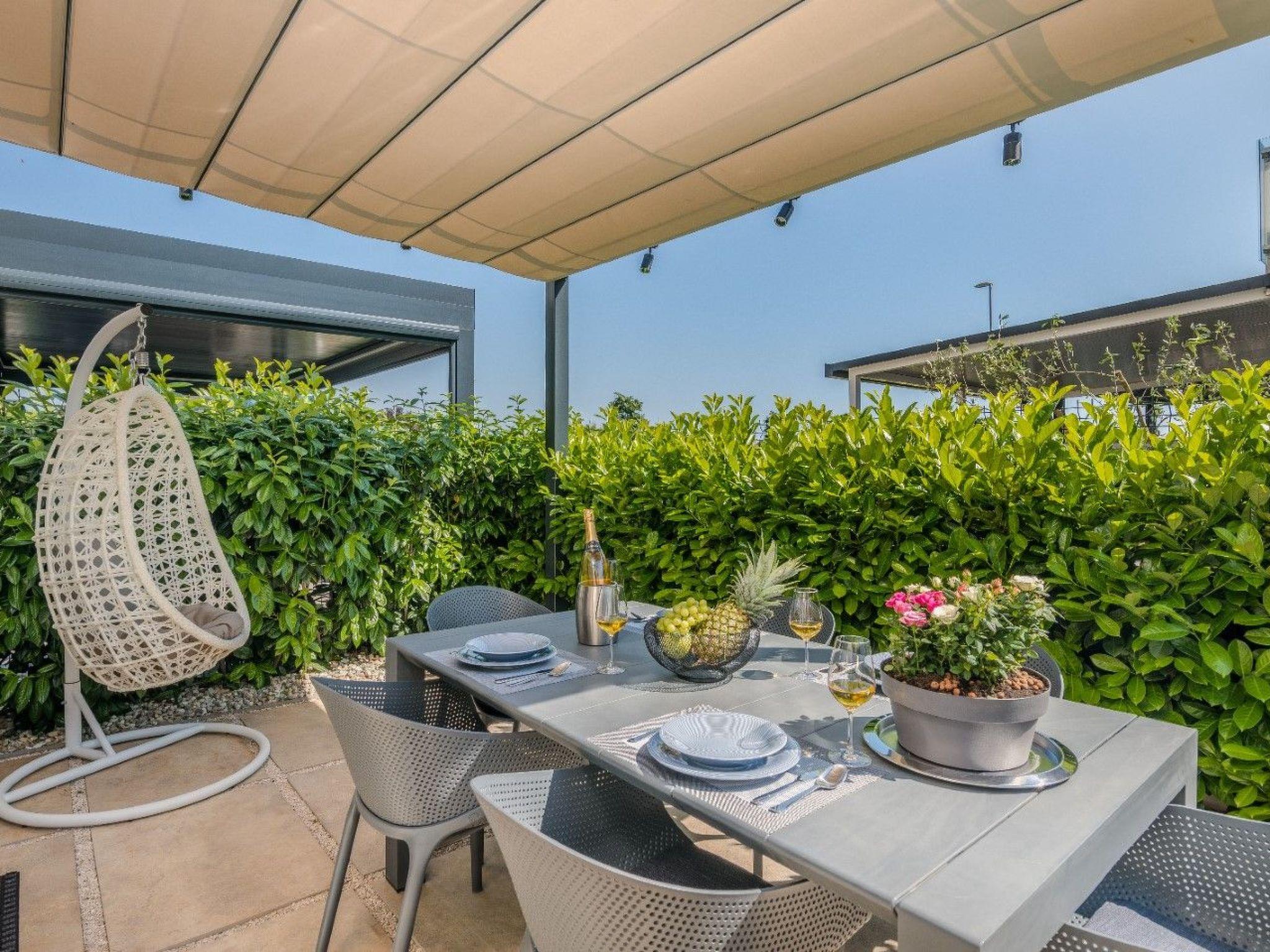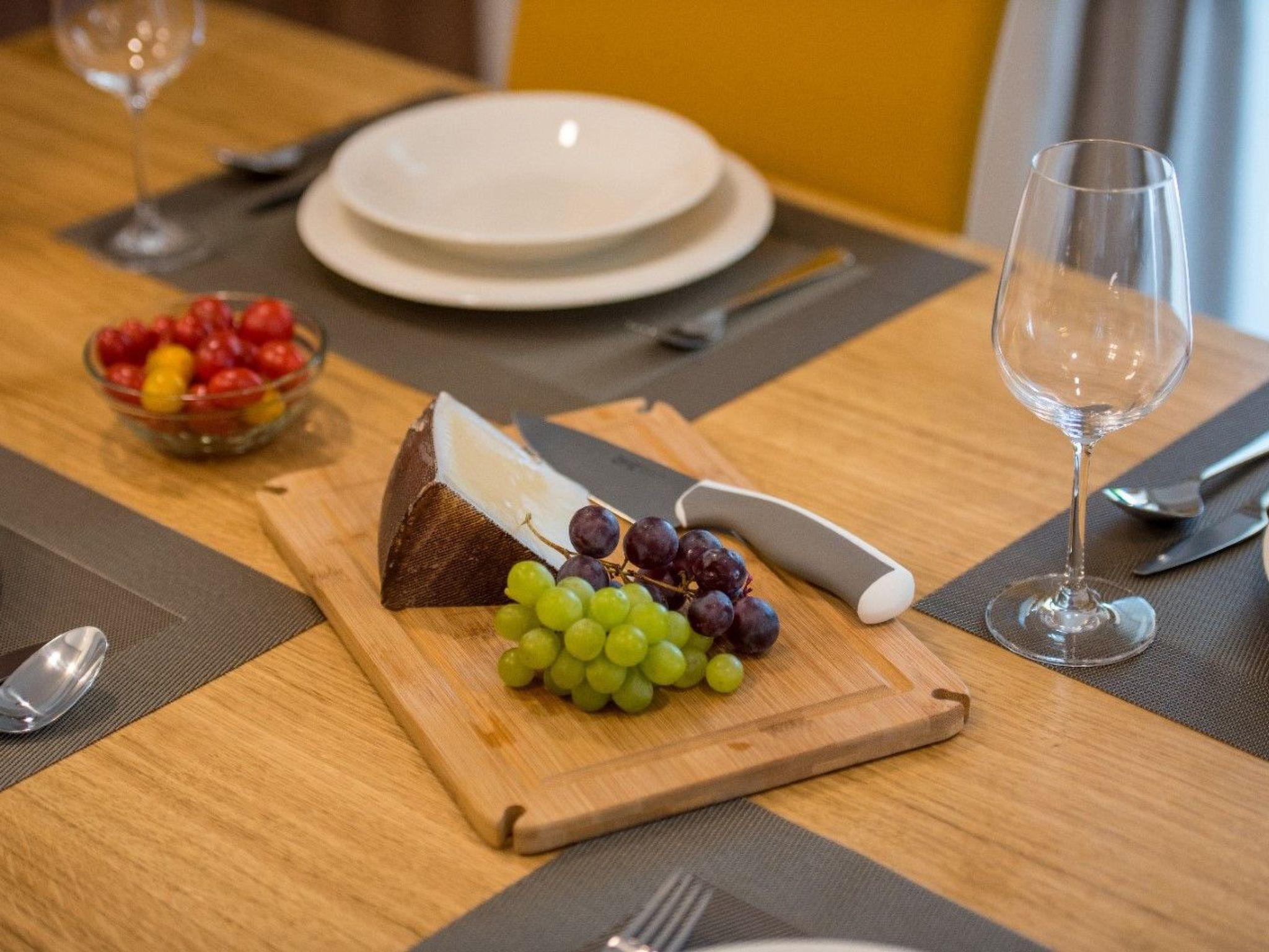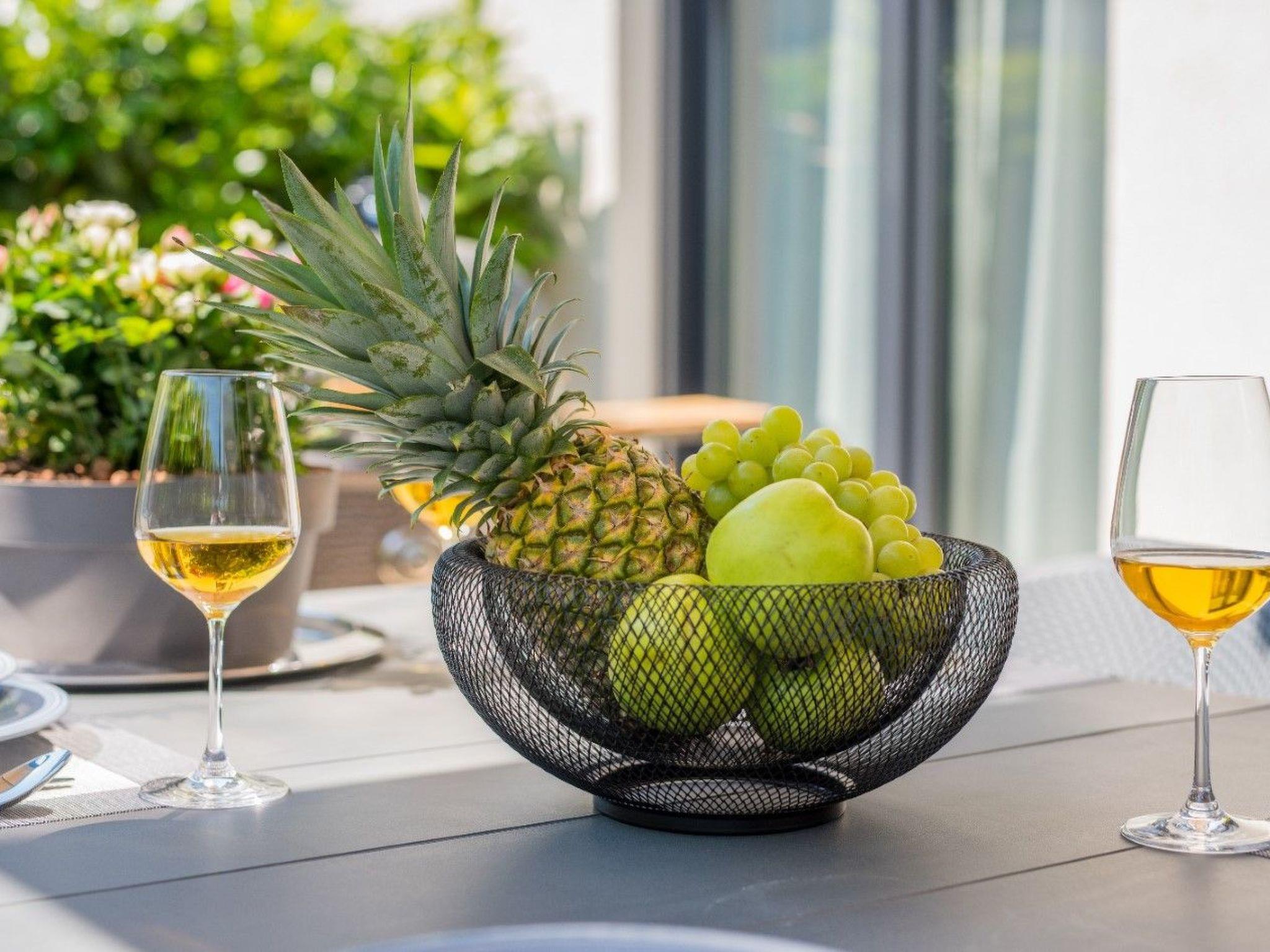 The outdoor spaces of this holiday house are just as impressive. The terrace on the ground level invites you to linger over morning coffees or evening relaxation, while the balcony offers a private spot to enjoy the fresh air. The highlight, however, is the spacious roof terrace, complete with a hot tub and furniture – a perfect oasis for relaxation at any time of the day. These outdoor areas provide ideal settings for relaxation, conversation, and enjoying the company of your group.