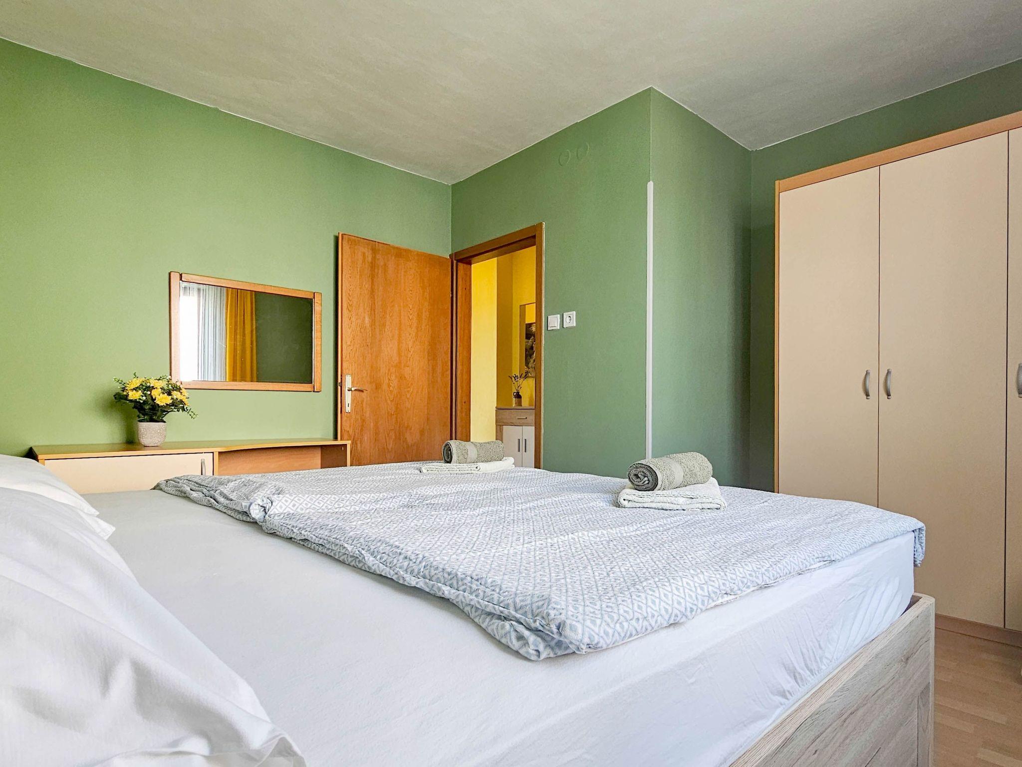 Inside, the apartment is thoughtfully equipped to ensure a comfortable stay. It features a well-appointed kitchen, where guests can whip up delightful meals using the electric stove, oven, and refrigerator, complemented by the inclusion of a coffee machine for those morning brews. Two inviting bedrooms, one furnished with a double bed and a single bed, and the other with a double bed, await to offer restful nights. The interior is rounded off with a functional bathroom equipped with a shower, ensuring all your needs are met during your stay.