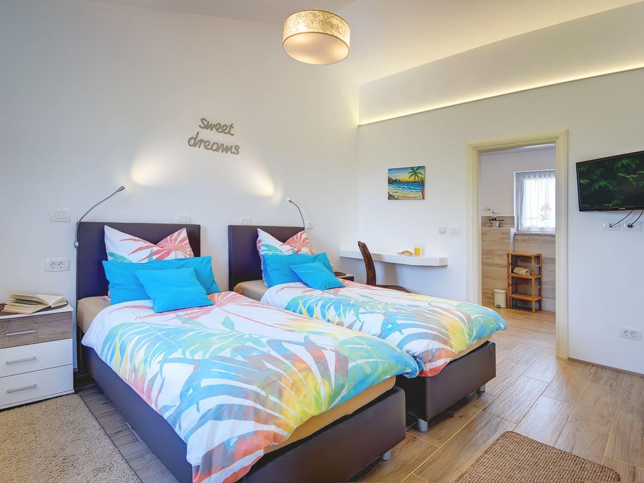 The newly built, fully and beautifully furnished villa in typical Istrian stone house style near Novigrad in Buzinija offers in a quiet location in the idyllic landscape overlooking olive groves, vineyards and the sea on one hand ideal conditions to relax - on the other hand, the port town of Novigrad with many beaches, restaurants and bars can be reached quickly. For a perfect family holiday, Villa Sunset offers a private heatable swimming pool with sun porch + deckchairs and a large shaded terrace ideal for spending time together or preparing meals in the evening with friends and family in the outdoor area with barbecue. All rooms are air-conditioned or heated and have flat-screen TVs and en suite bathrooms for maximum privacy and comfort. Villa Sunset delights with a tastefully decorated interior that is decorated in bright colors and gives the feeling of complete relaxation. Pool heating with heat pump upon request at least 2 weeks before arrival; weather-related temperature; pool is available in the period: 13.4.-12.10.Important information: Security deposit will be returned after your departure, on your bank account.