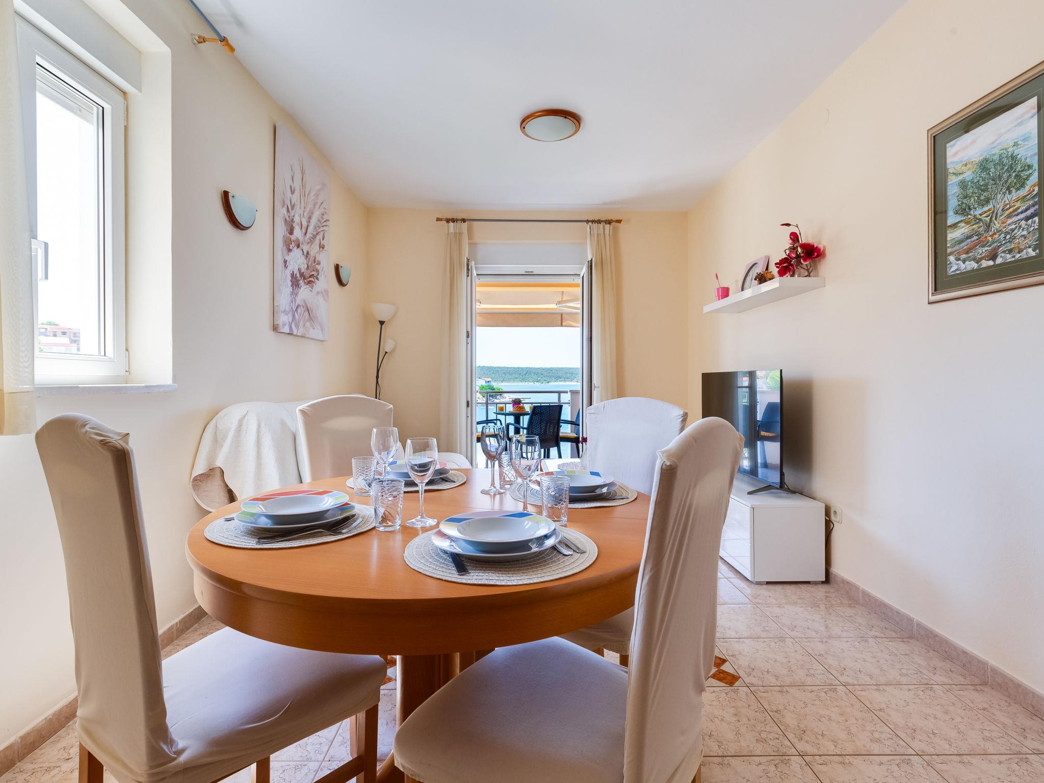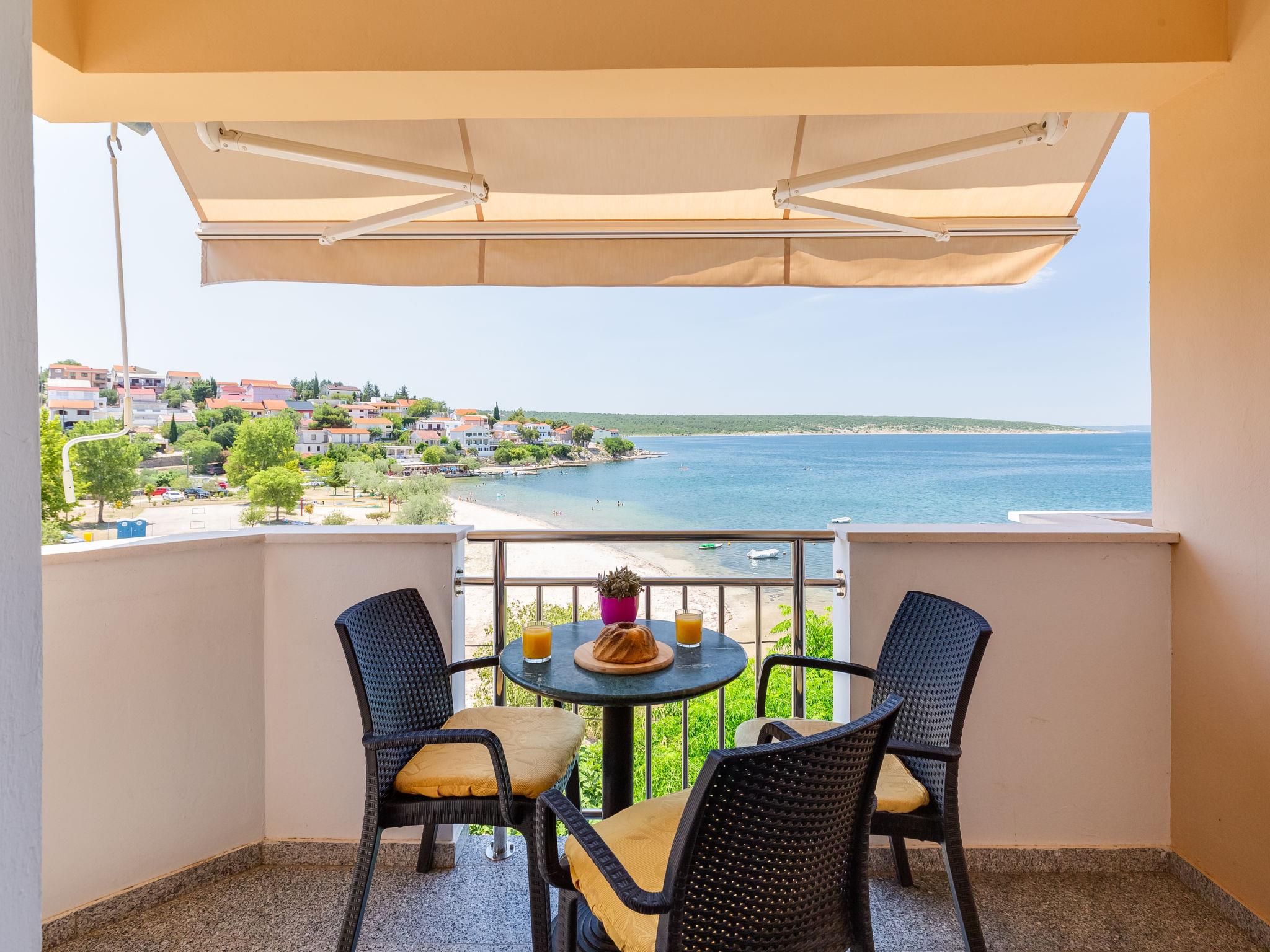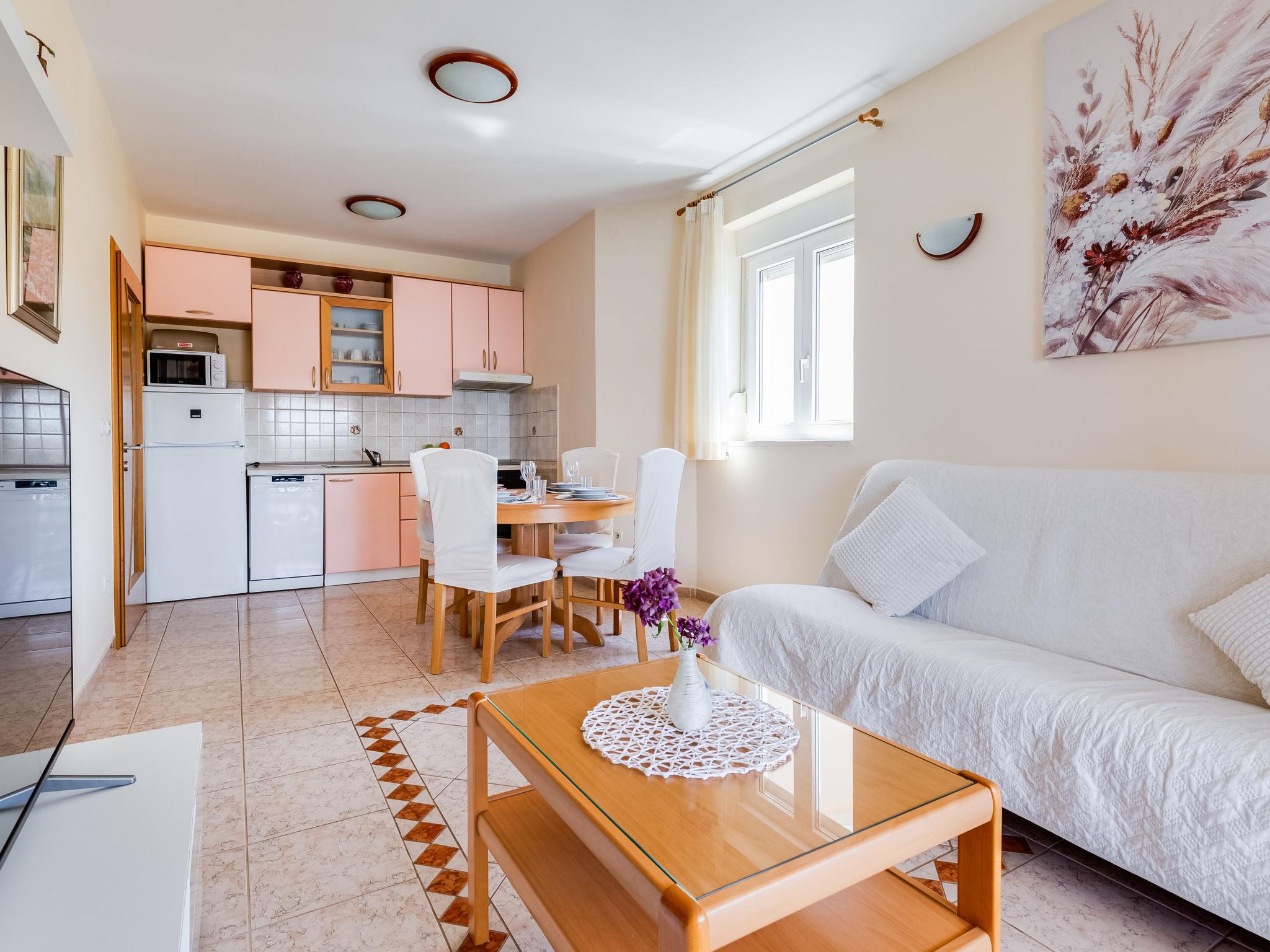 "Daria 3", 2-room apartment 50 m2 on 2nd floor. Living/dining room with 1 sofabed, satellite TV and air conditioning. Exit to the balcony. 1 room with 1 double bed. Open kitchen (4 hot plates, oven, dishwasher, freezer). Shower/WC. No heating option. Balcony. Balcony furniture. Marvellous view of the sea. Facilities: washing machine. Internet (WiFi, free).