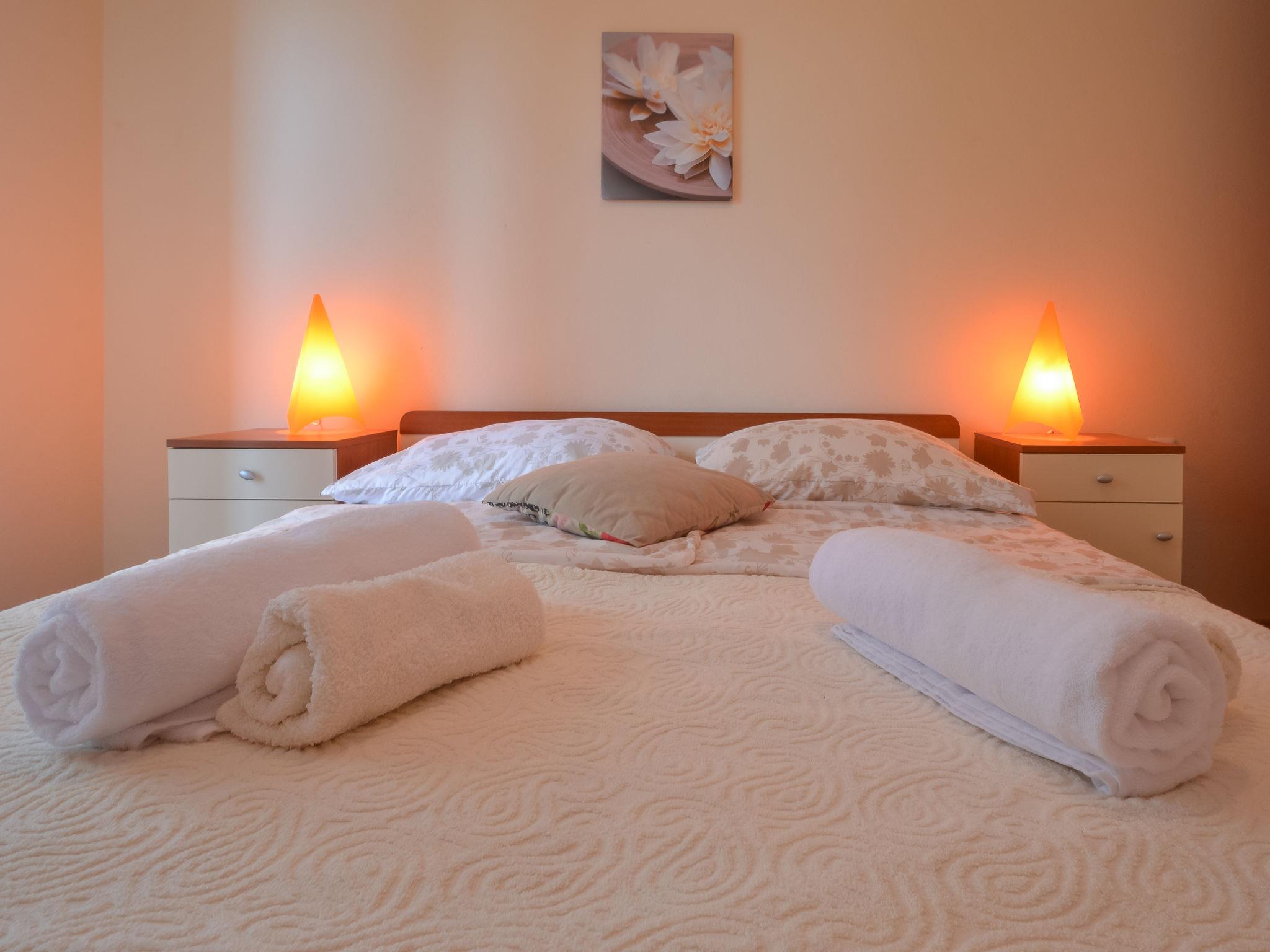 2-room apartment 45 m2 on 1st floor, south facing position. Beautiful and modern furnishings: living/dining room 20 m2 with 1 double sofabed and satellite TV (flat screen), air conditioning. Exit to the balcony. 1 room with 1 double bed (160 cm). Exit to the balcony. Open kitchen (4 hot plates, oven, electric coffee machine). Shower/WC. No heating option. Balcony 8 m2, south facing position. Terrace furniture. Marvellous view of the sea. Facilities: Internet (WiFi, free). Please note: private mooring (extra). Access to the apartment is via 5 steps from the car park.