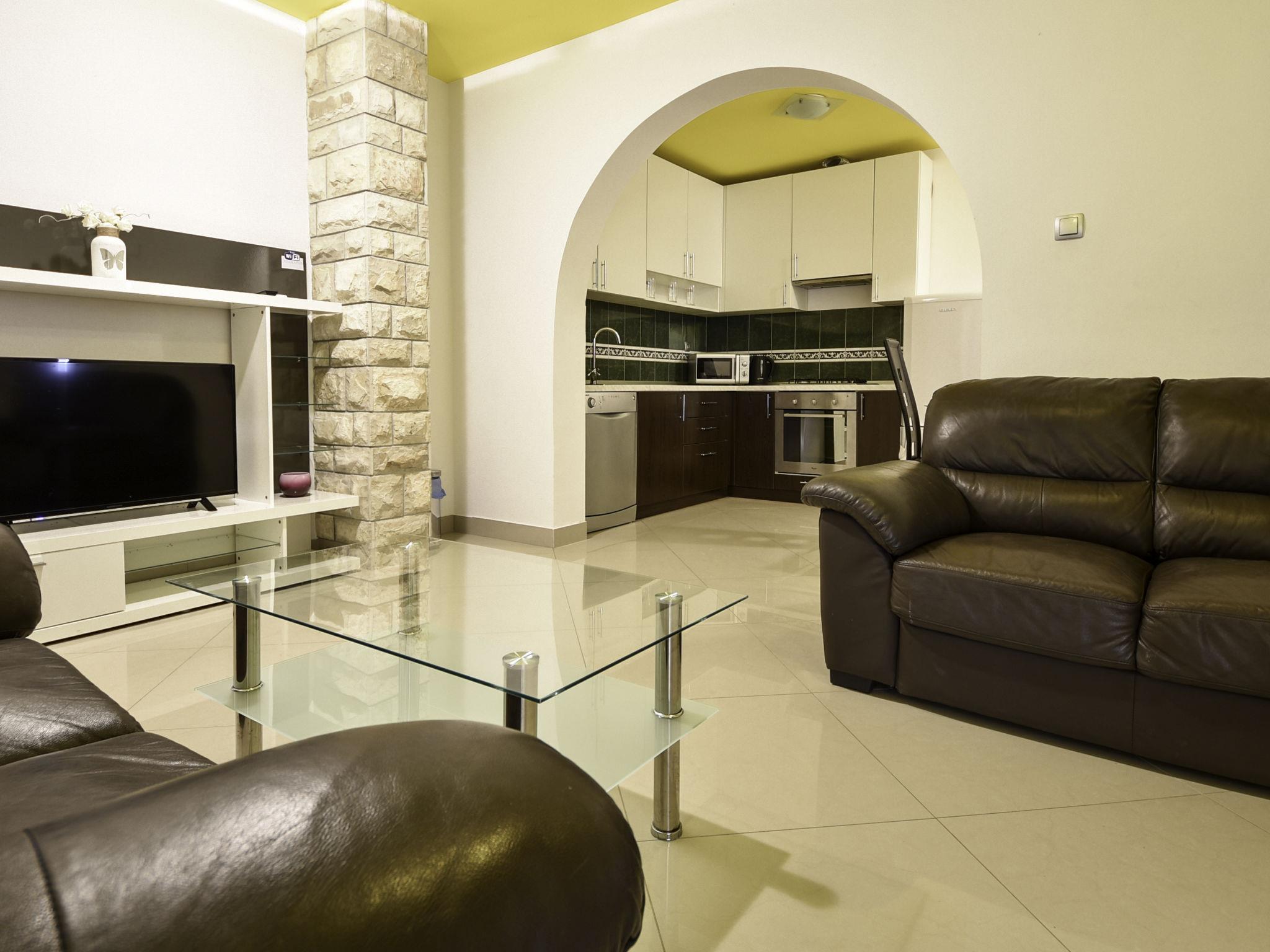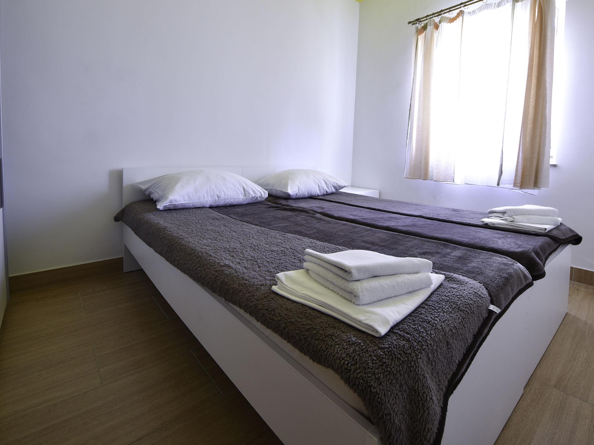 3-room apartment 70 m2, on the ground floor. Living/dining room with satellite TV (flat screen), air conditioning. Exit to the terrace. 1 room with 1 double bed (2 x 80 cm, length 200 cm). 1 room with 2 beds (80 cm, length 200 cm). Open kitchen (4 hot plates, oven, dishwasher, freezer). Shower/WC. No heating option. Terrace 20 m2, roofed. Terrace furniture. Facilities: washing machine. Internet (WiFi, free). Parking (fenced).