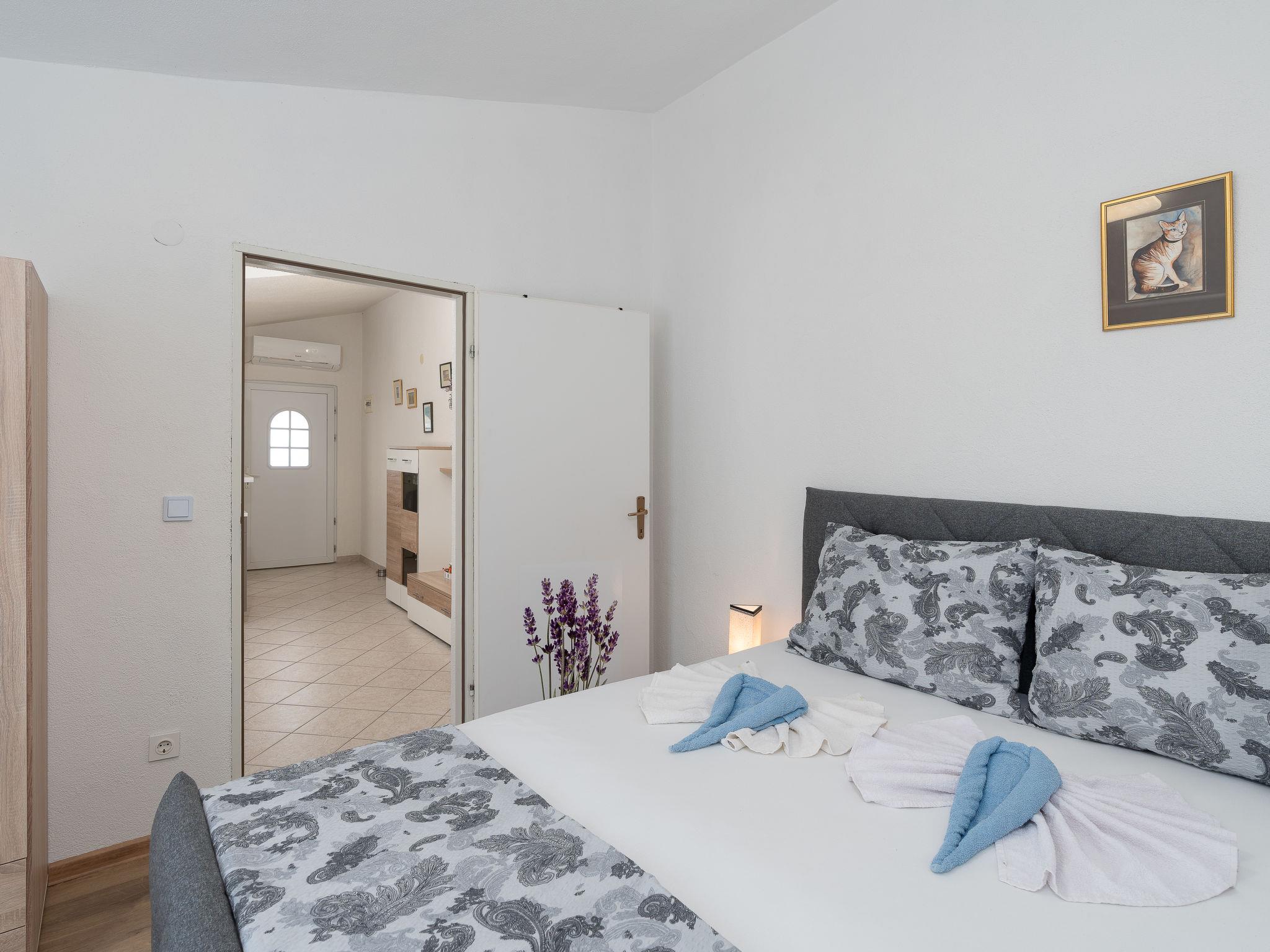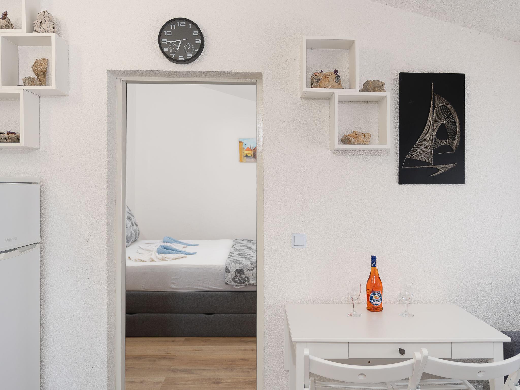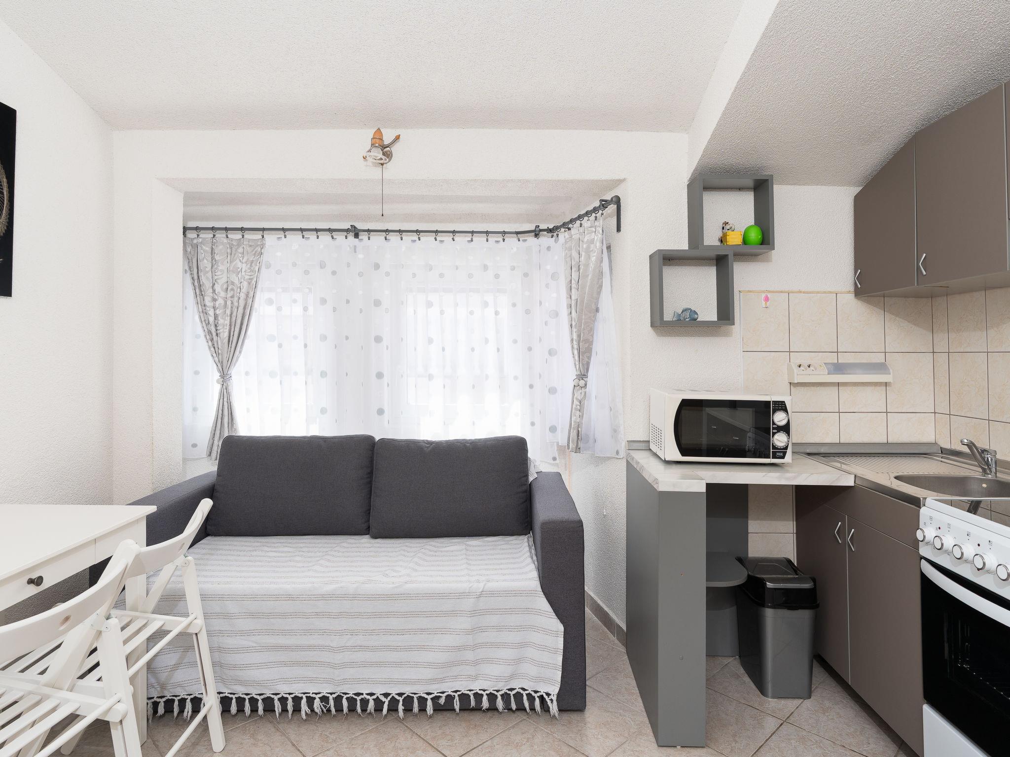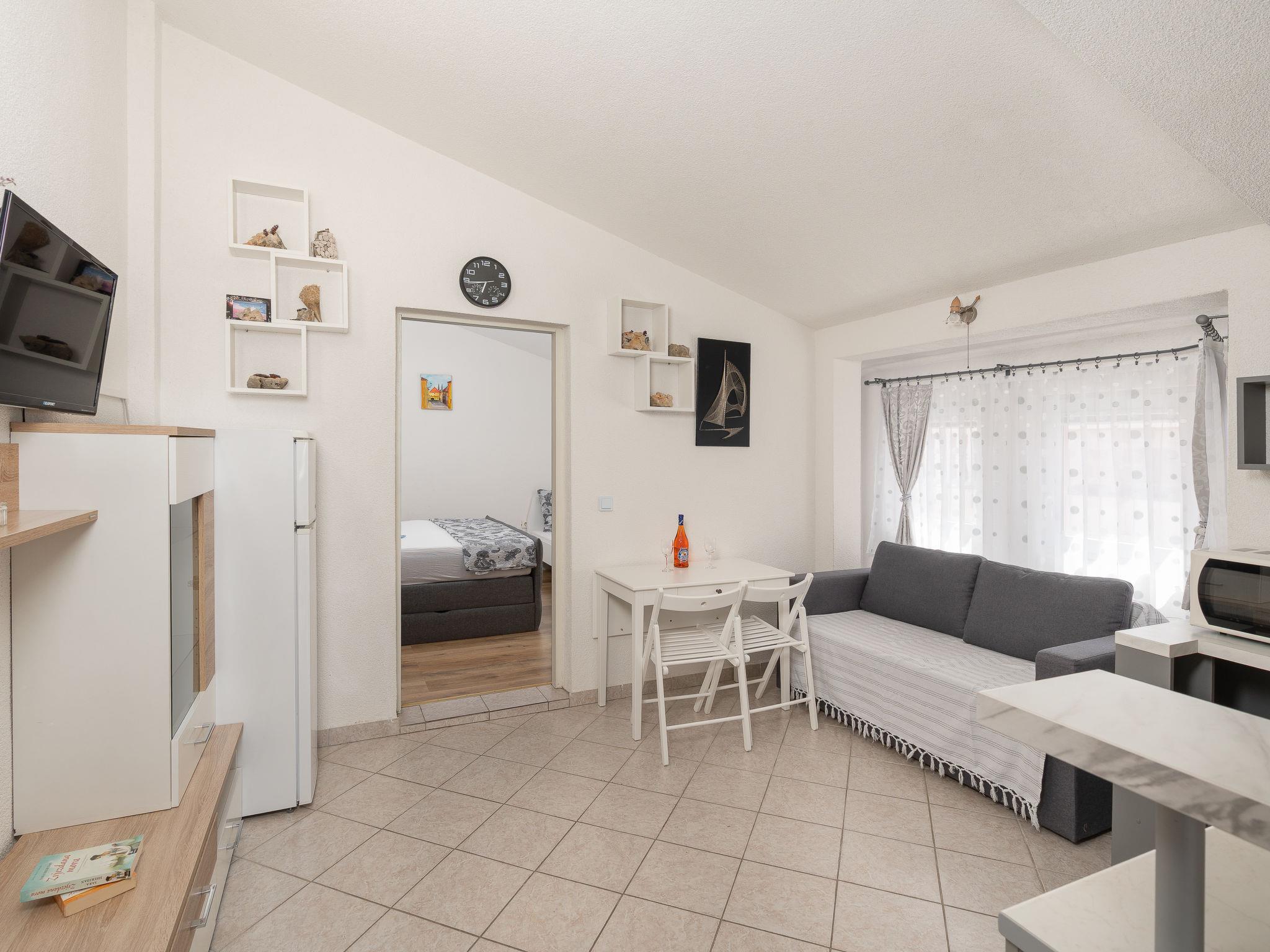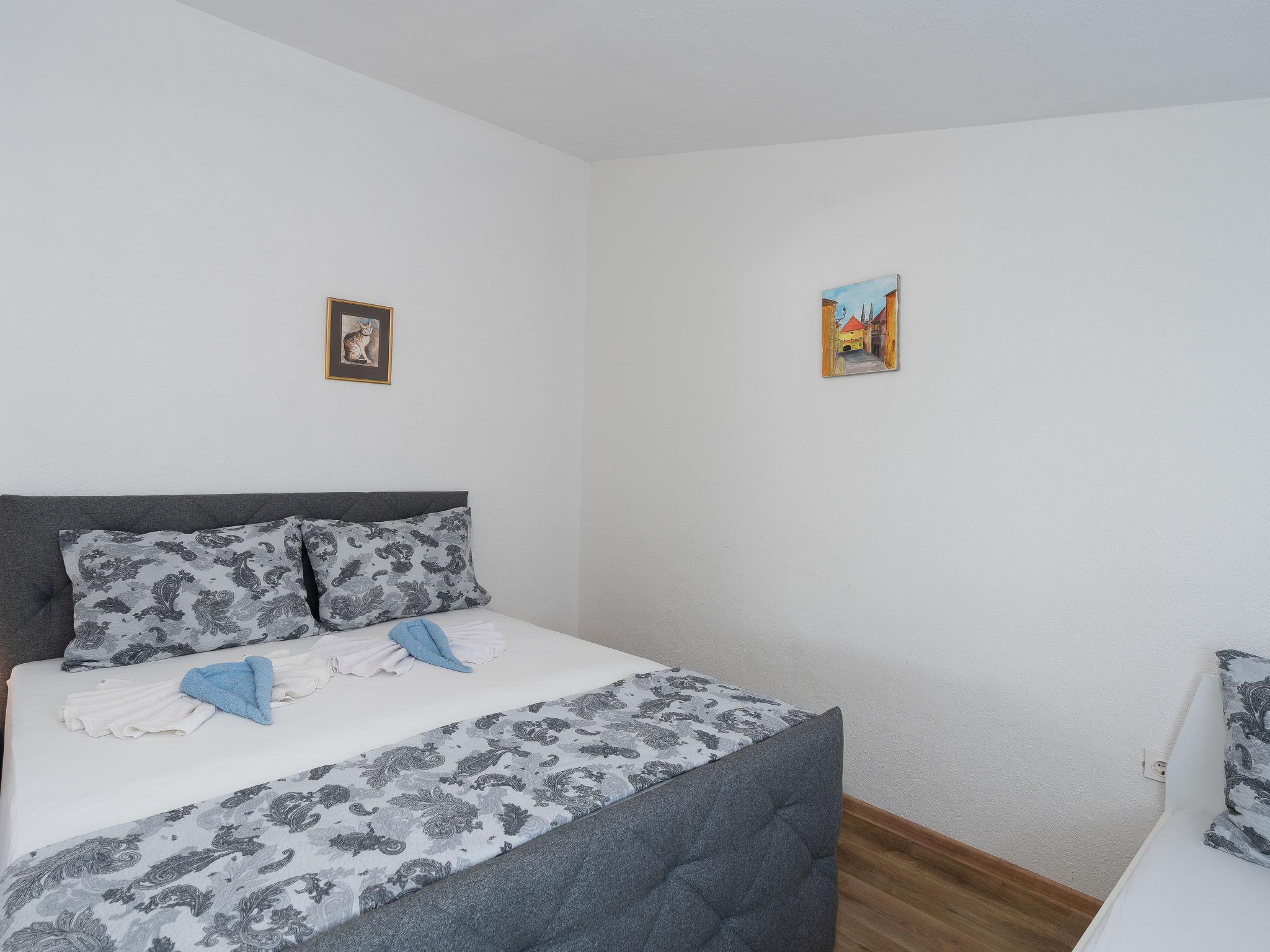 2-room apartment 30 m2 on 2nd floor, south-west facing position. Living/dining room 15 m2 with 1 double sofabed (140 cm, length 200 cm), satellite TV (flat screen), air conditioning. Exit to the terrace. 1 room with 1 bed (90 cm, length 200 cm), 1 french bed (160 cm, length 200 cm). Open kitchen (2 hot plates, oven, 2 gas rings, microwave, freezer, electric coffee machine). Shower/WC. No heating option. Facilities: Internet (WiFi, free).