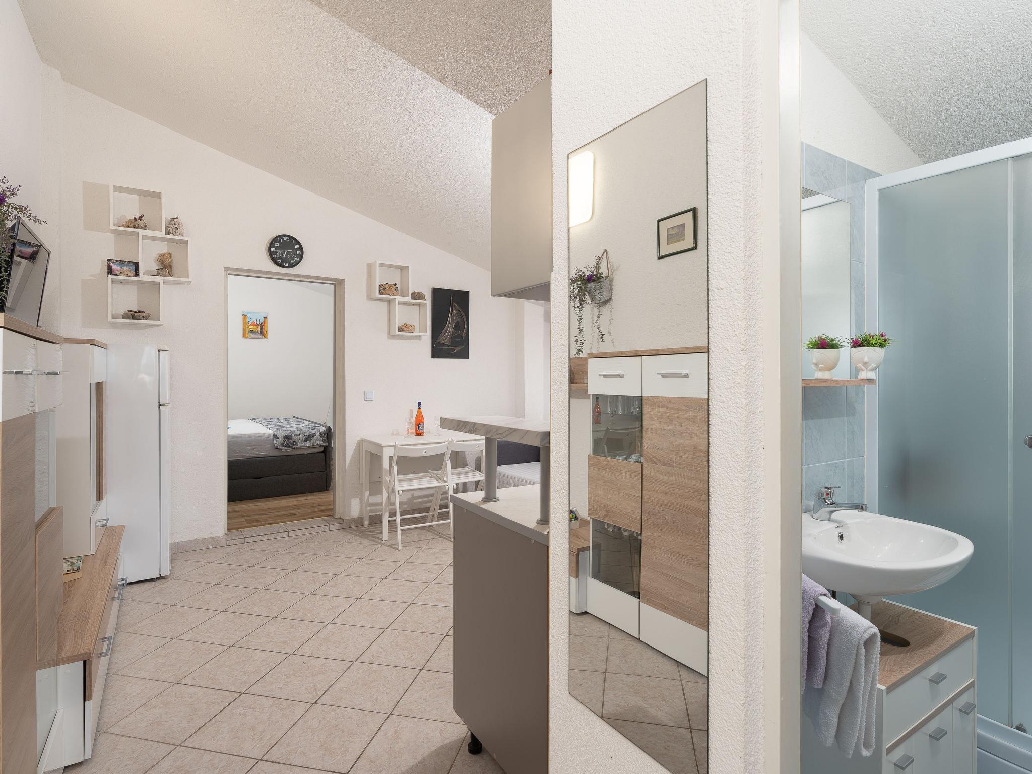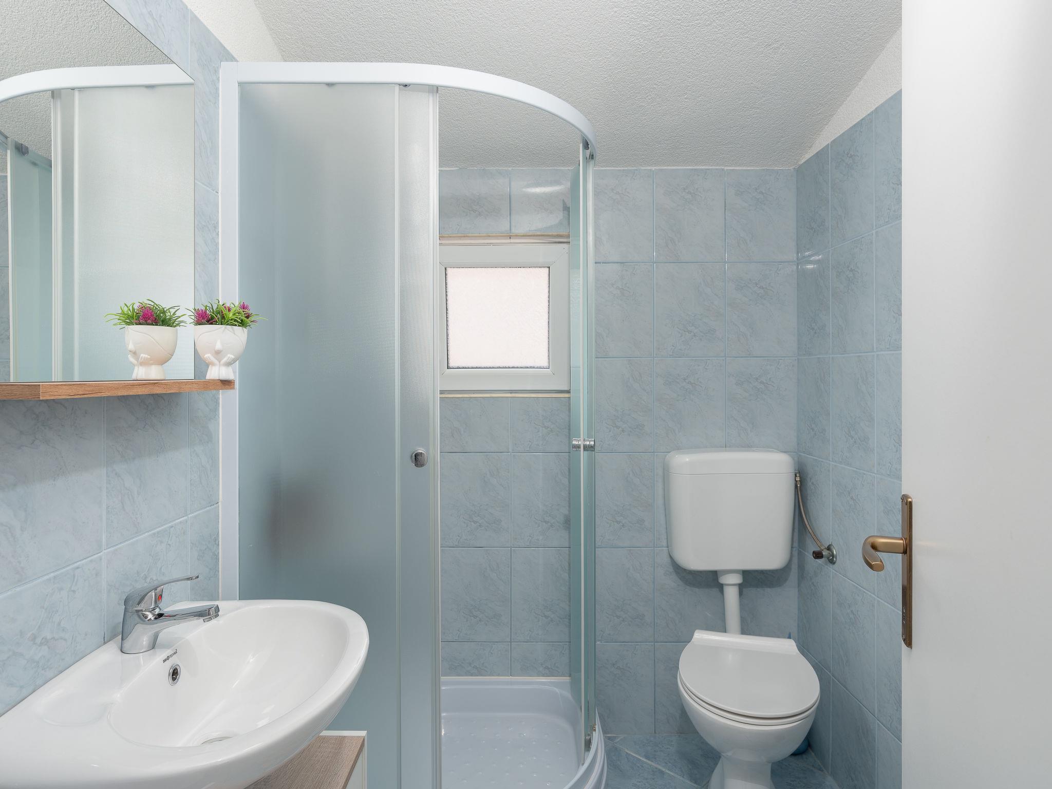 Ribnica 15 km from Novigrad: 3-family house "Mia". 12 km from the centre of Obrovac, in a quiet, sunny, elevated position, 80 m from the sea, 80 m from the beach. For shared use: property 160 m2 (fenced). Garden furniture, barbecue. In the house: internet access. Parking at the house on the premises. Shop 1 km, restaurant 1 km, bus stop 25.1 km, pebble beach 80 m. Access to the beach via 30 steps.