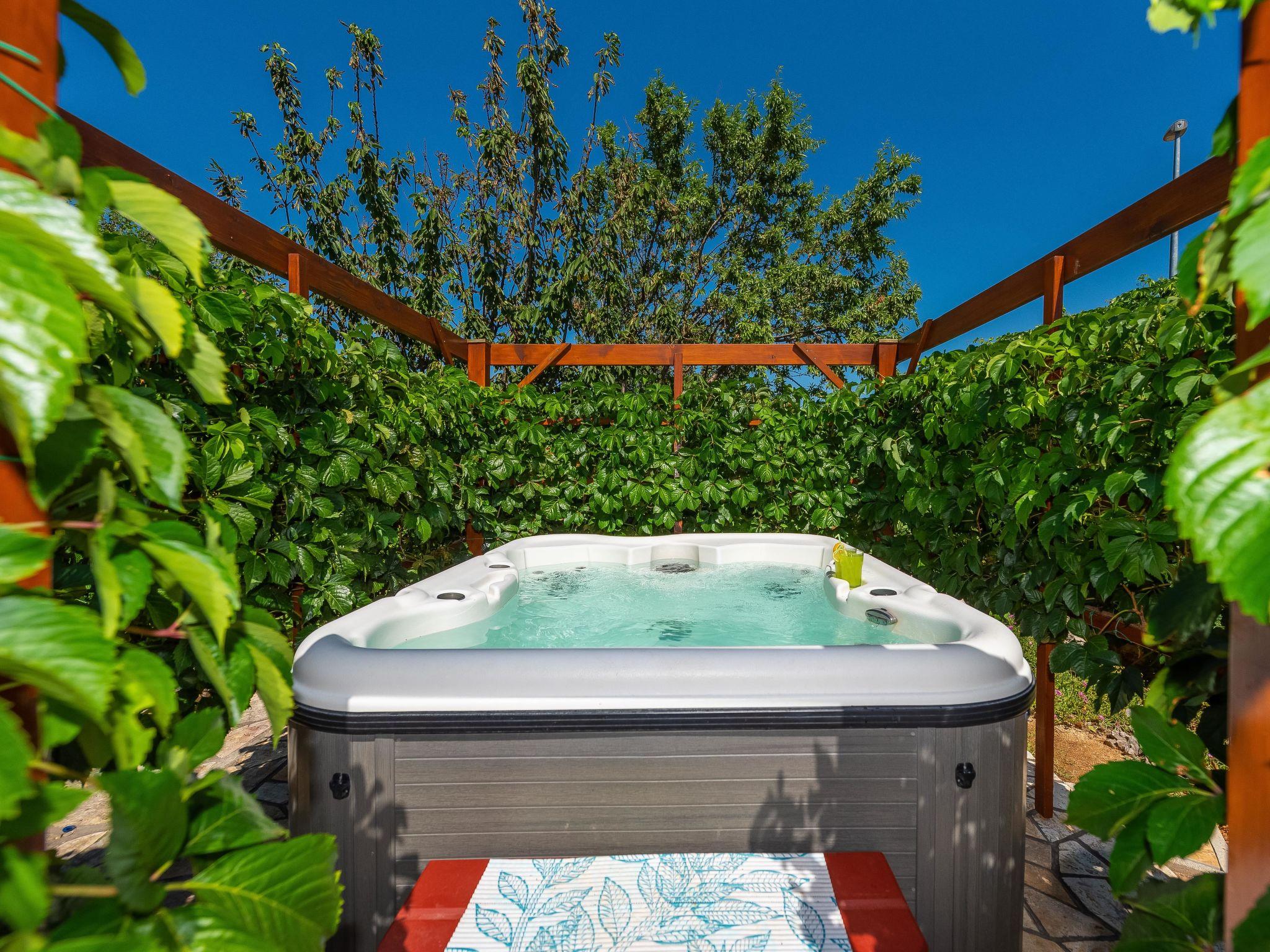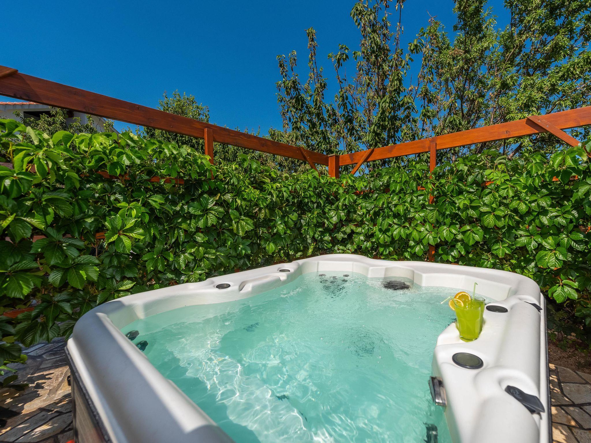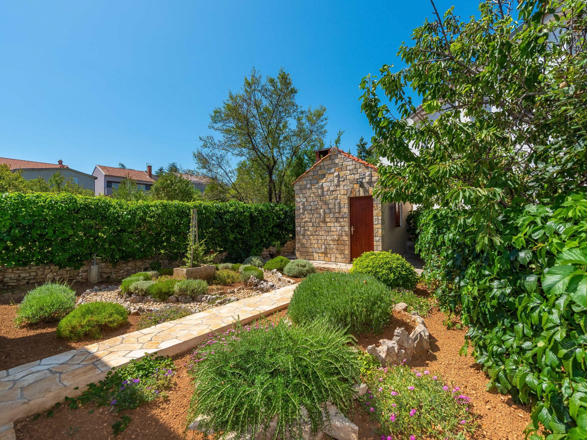 Pridraga 5 km from Novigrad: Beautiful single-family house "Milka", 2 storeys, surrounded by trees. In the hamlet Cuskijaš, in a sunny position, 40 m from the sea, 40 m from the beach, in the countryside, east facing position. Private: well-kept garden (fenced) with wildlife garden. Outdoor shower, hot tub, barbecue house. In the house: internet access, washing machine. Available: bicycles (2). Roofed, parking (for 2 cars) at the house. Shop 1 km, restaurant 1.5 km, bus stop 17.2 km, pebble beach, shingle beach 40 m. Walking paths from the house 20 m, cycle lane 30 m. The area is suitable for windsurfing.