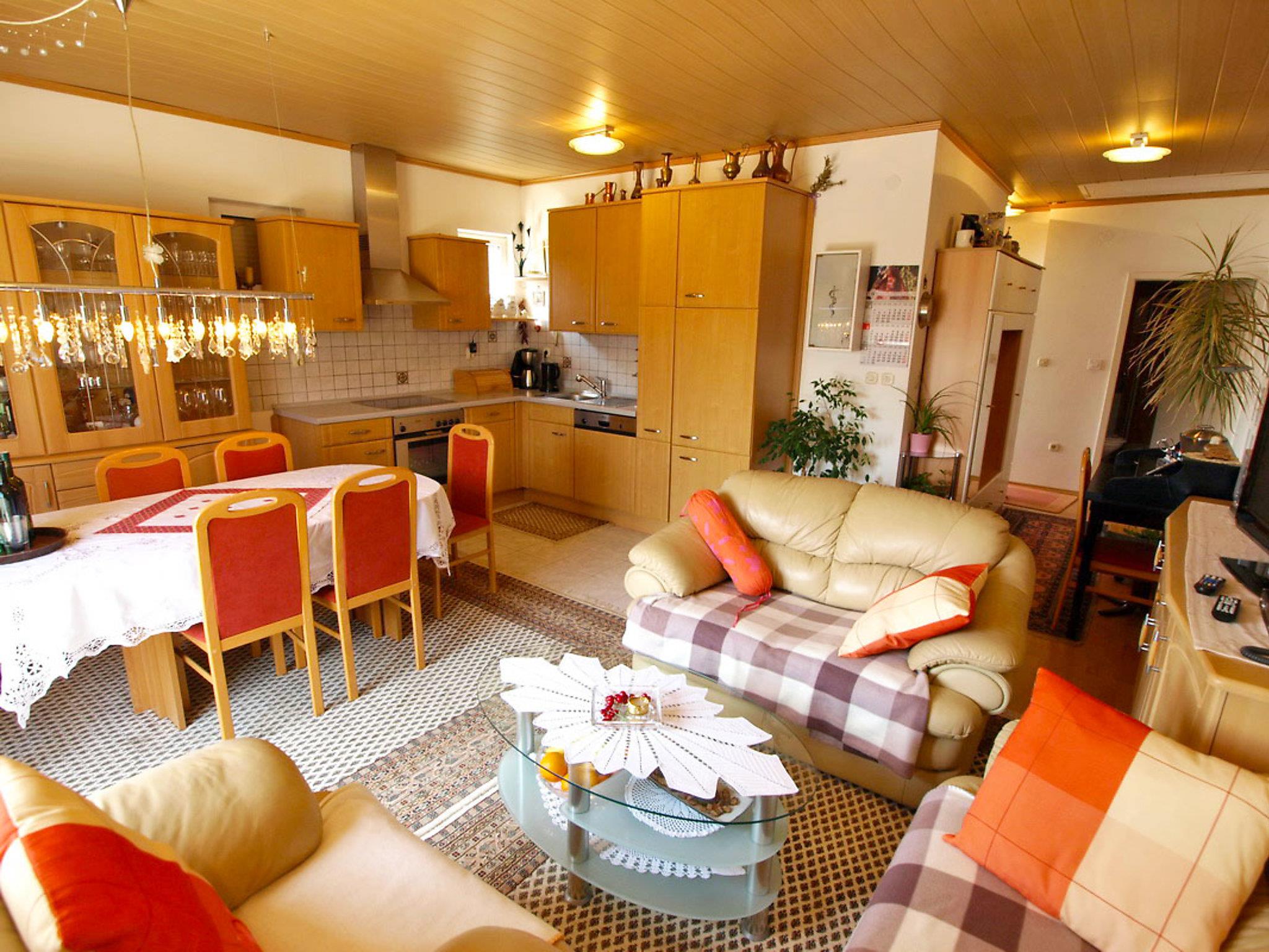 3-room apartment 85 m2 on 1st floor, east facing position. Living/dining room with 1 double sofabed and satellite TV (flat screen), air conditioning. Exit to the terrace. 1 room with 1 double bed and bath/WC. Exit to the terrace. 1 room with 1 double bed. Open kitchen (oven, dishwasher, 4 ceramic glass hob hotplates, electric coffee machine). Shower/WC. Terrace 20 m2 partly roofed, terrace 20 m2. Terrace furniture. Facilities: washing machine. Internet (WiFi, free). Maximum 1 pet/ dog allowed.