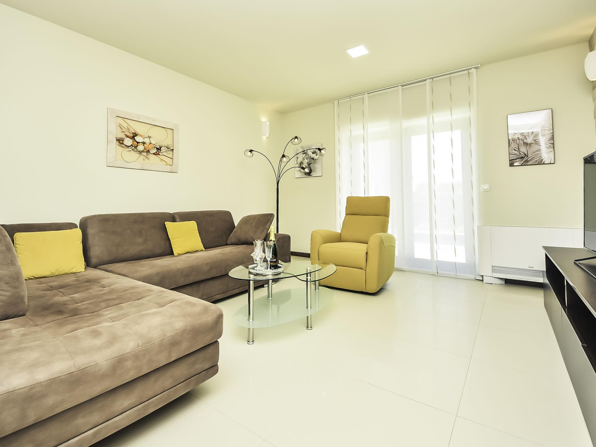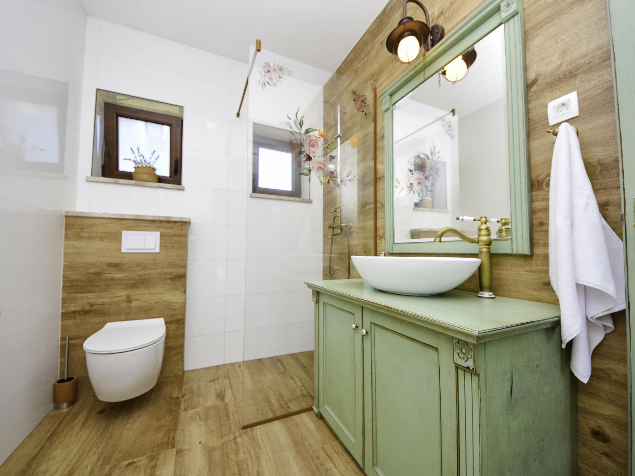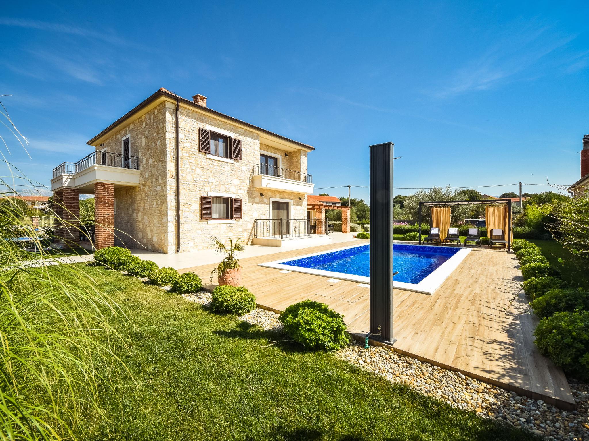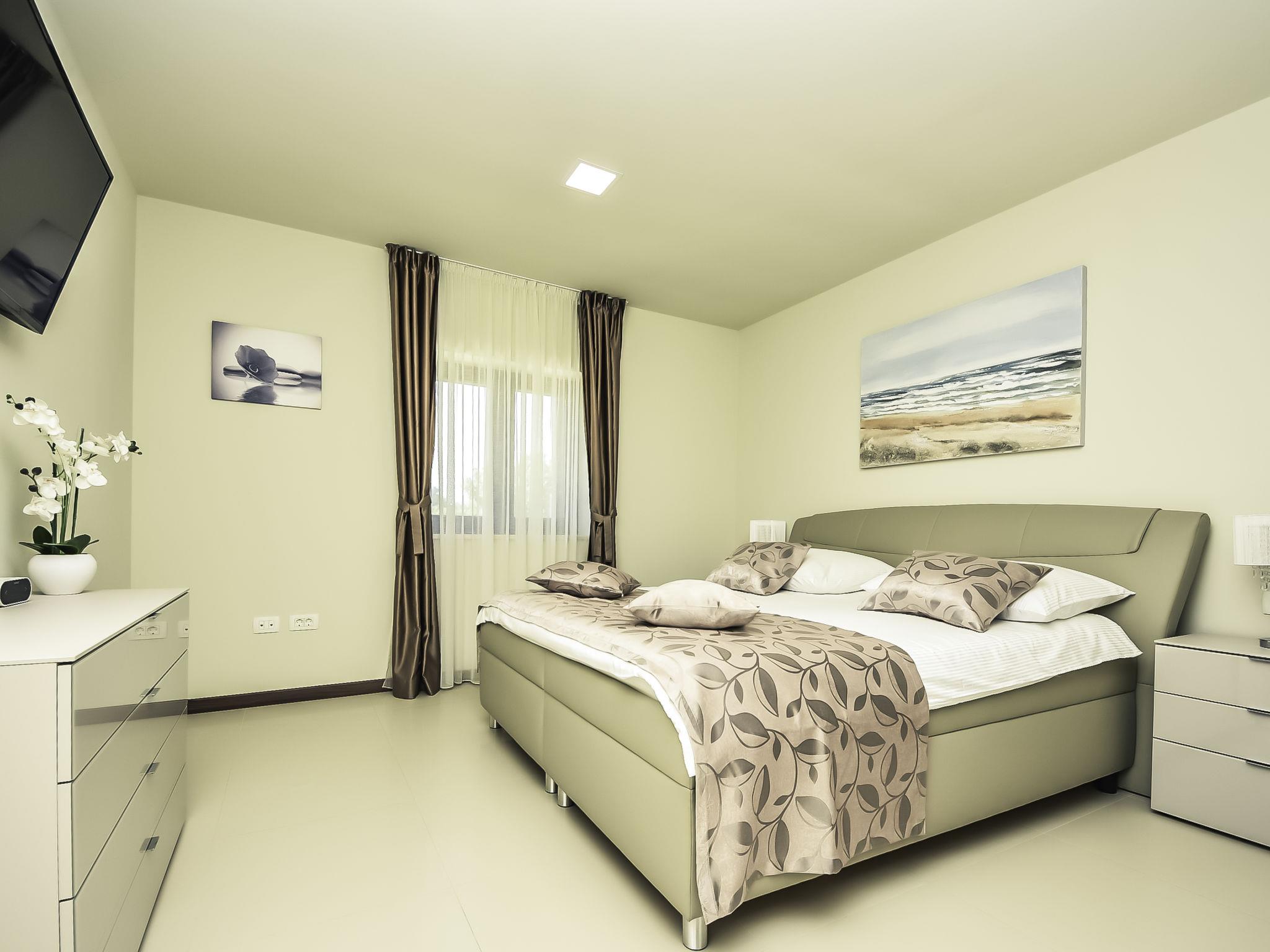 Pridraga: 2-family house "Korina", 2 storeys. 2 km from the centre of Pridraga, 5 km from the centre of Novigrad, in a quiet, sunny position, 2.5 km from the sea, 2.5 km from the beach. Private: property 1'500 m2 (fenced), lawn, swimming pool angular (8 x 4 m, depth 145 cm, seasonal availability: 01.May. - 01.Oct.) with internal staircase. Outdoor shower, garden furniture, barbecue house. In the house: internet access, air conditioning, washing machine. Parking (for 3 cars) at the house on the premises. Shop 2 km, restaurant 2 km, bus stop 14.6 km, pebble beach 2.5 km. Groups of teenagers on request only. Please note: airfield 25 km from the property. Barbecue house (open-hearth fireplace, 2 ceramic glass hob hotplates, 2 gas rings, dining table, air conditioning, shower/WC).