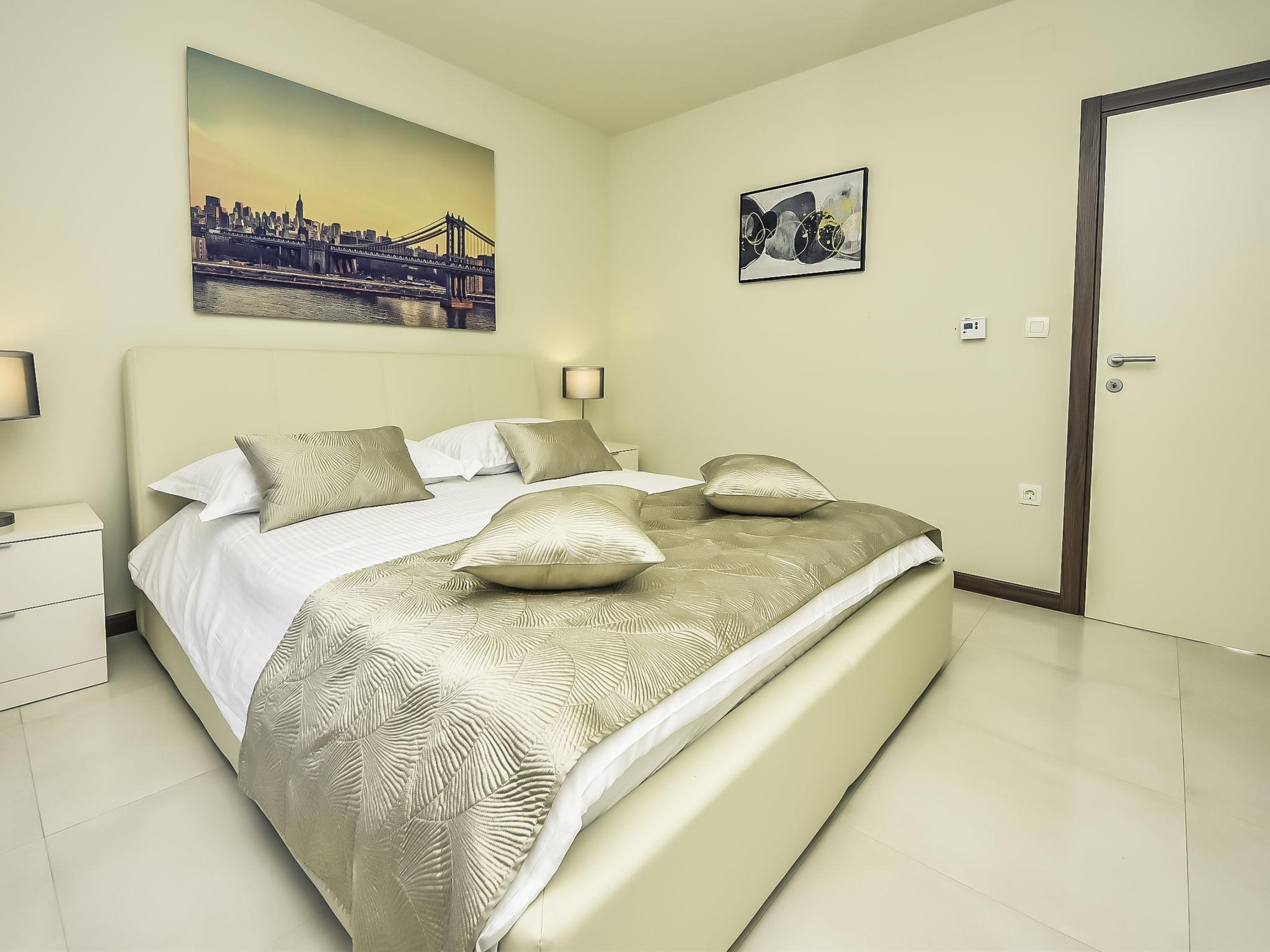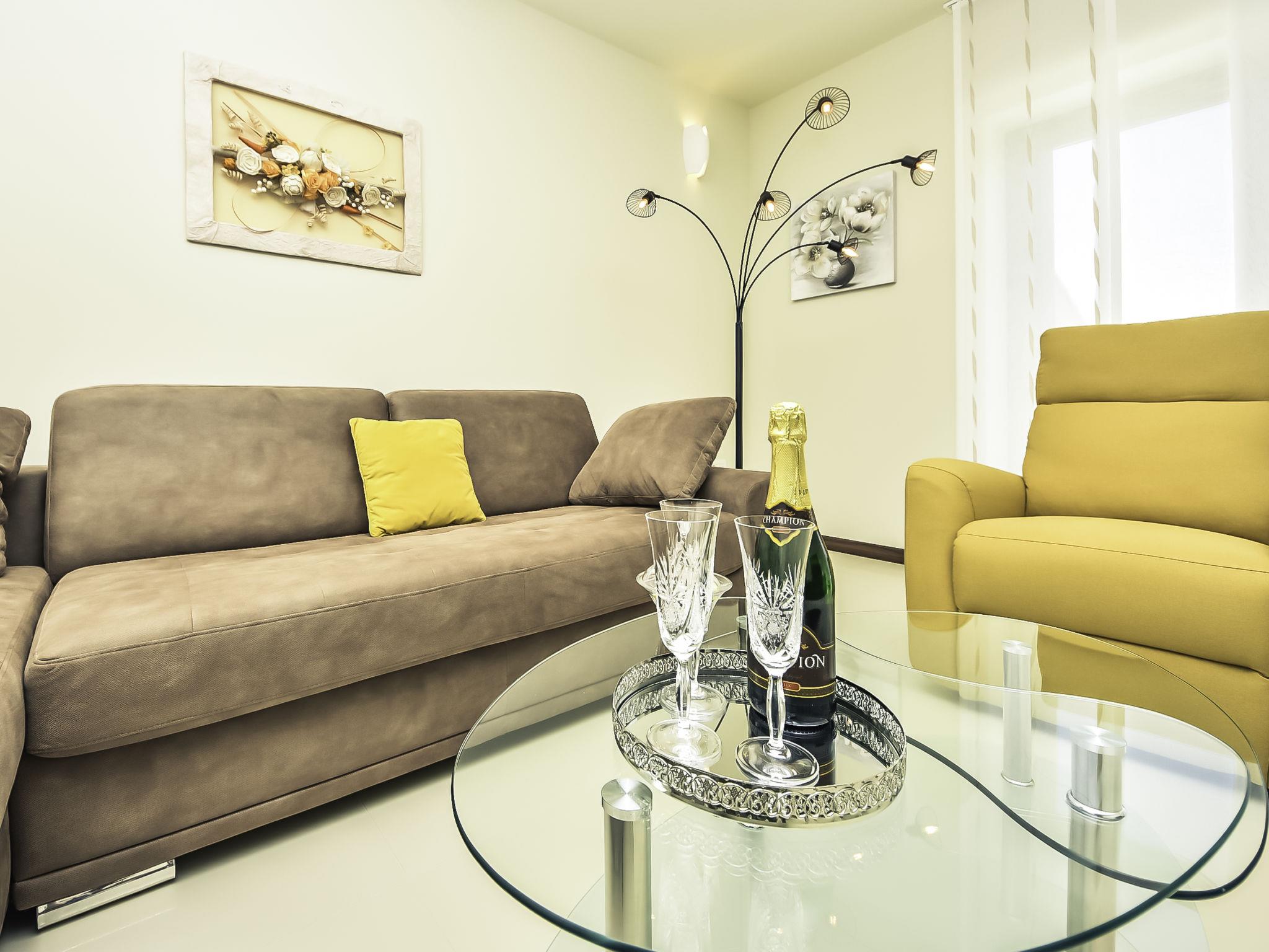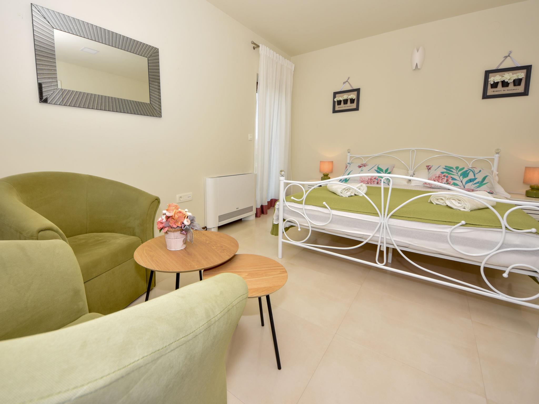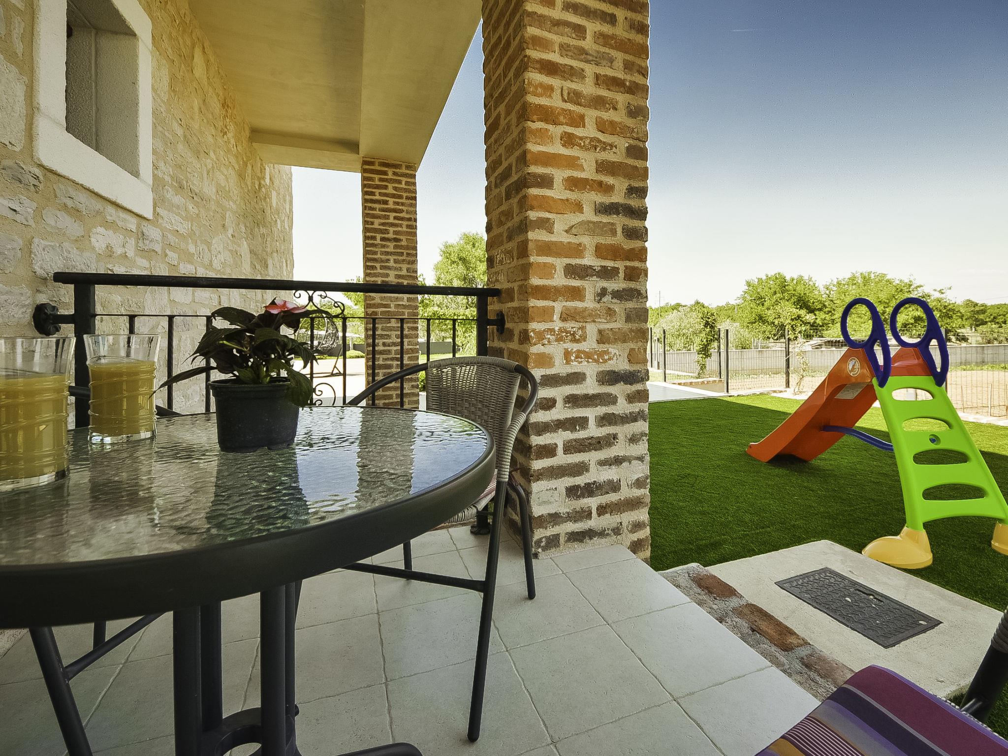 Pridraga: 2-family house "Korina", 2 storeys. 2 km from the centre of Pridraga, 5 km from the centre of Novigrad, in a quiet, sunny position, 2.5 km from the sea, 2.5 km from the beach. Private: property 1'500 m2 (fenced), lawn, swimming pool angular (8 x 4 m, depth 145 cm, seasonal availability: 01.May. - 01.Oct.) with internal staircase. Outdoor shower, garden furniture, barbecue house. In the house: internet access, air conditioning, washing machine. Parking (for 3 cars) at the house on the premises. Shop 2 km, restaurant 2 km, bus stop 14.6 km, pebble beach 2.5 km. Groups of teenagers on request only. Please note: airfield 25 km from the property. Barbecue house (open-hearth fireplace, 2 ceramic glass hob hotplates, 2 gas rings, dining table, air conditioning, shower/WC).