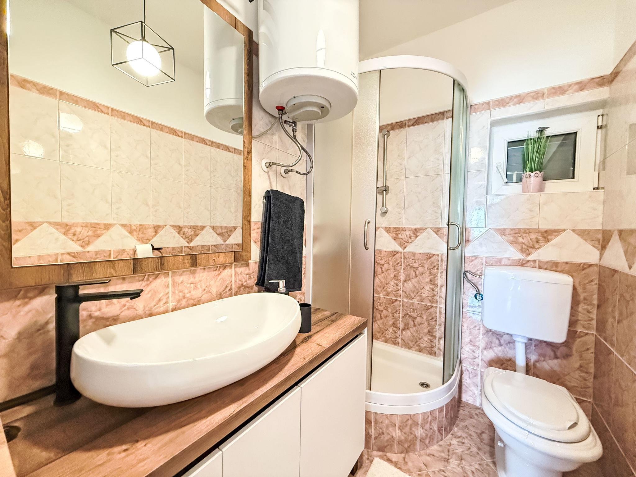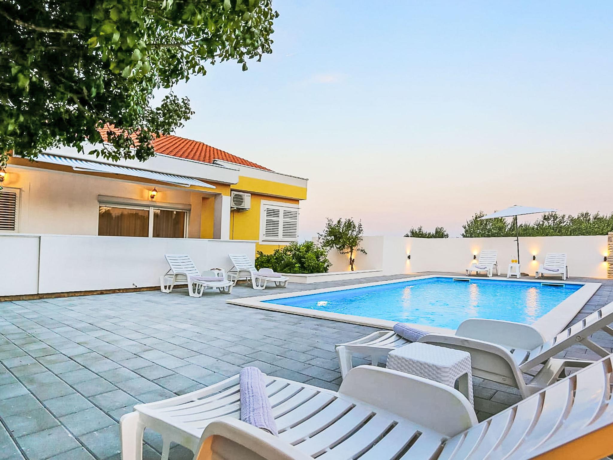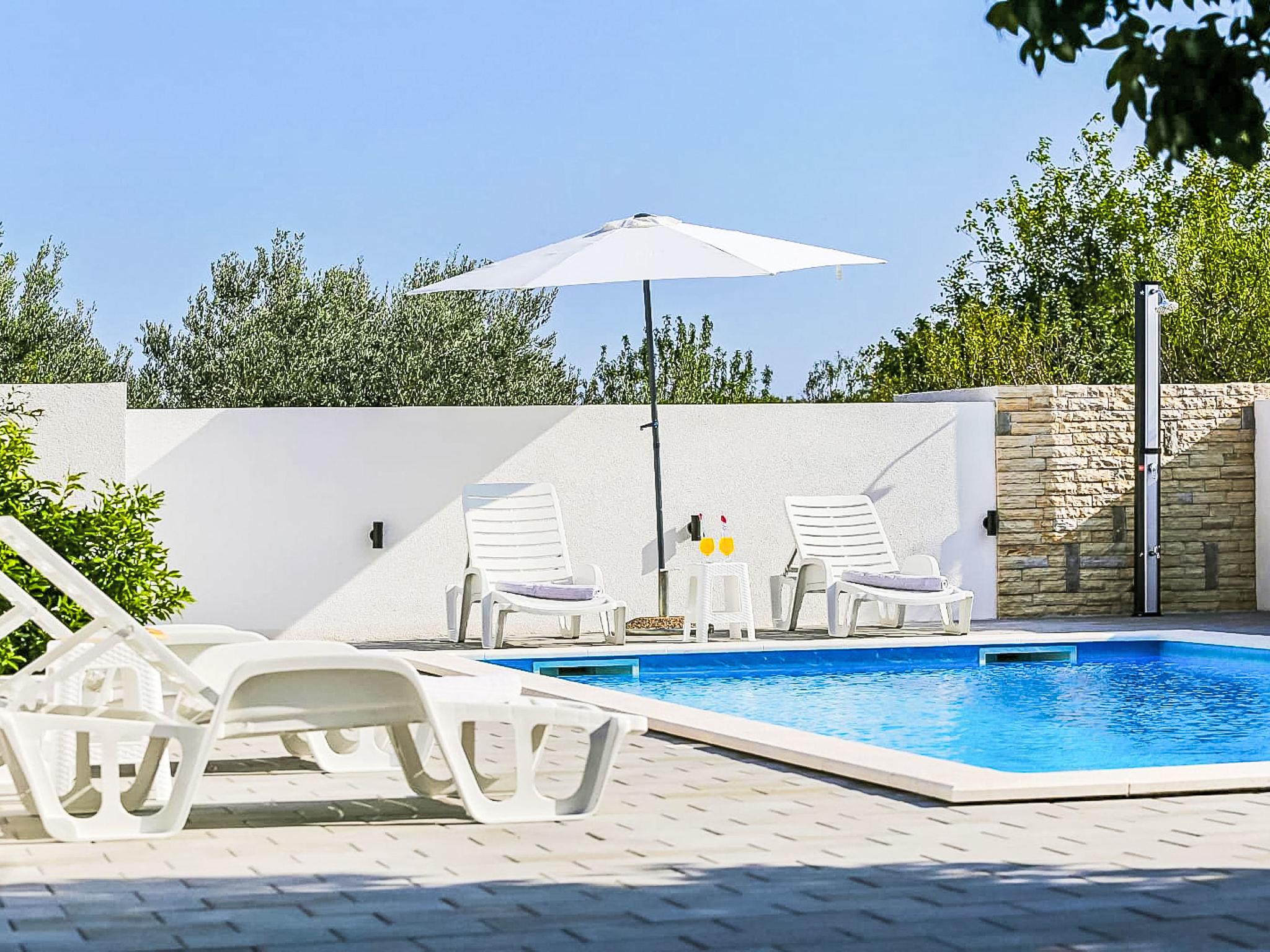 Single-family house "Karlo". 7 km from the centre of Posedarje, in a quiet, sunny position, 2 km from the sea, 2.2 km from the beach. Private: property 1'200 m2, swimming pool (8 x 4 m, depth 150 cm, seasonal availability: 01.May. - 01.Oct.). Outdoor shower, table tennis, garden furniture, barbecue. In the house: internet access, trampoline, washing machine. Parking (for 3 cars) at the house on the premises. Shop 750 m, supermarket 6 km, restaurant 4.5 km, bus stop 6.1 km, sandy beach 4 km. Nearby attractions: Np Paklenica 30 km, Np Krka 80 km.