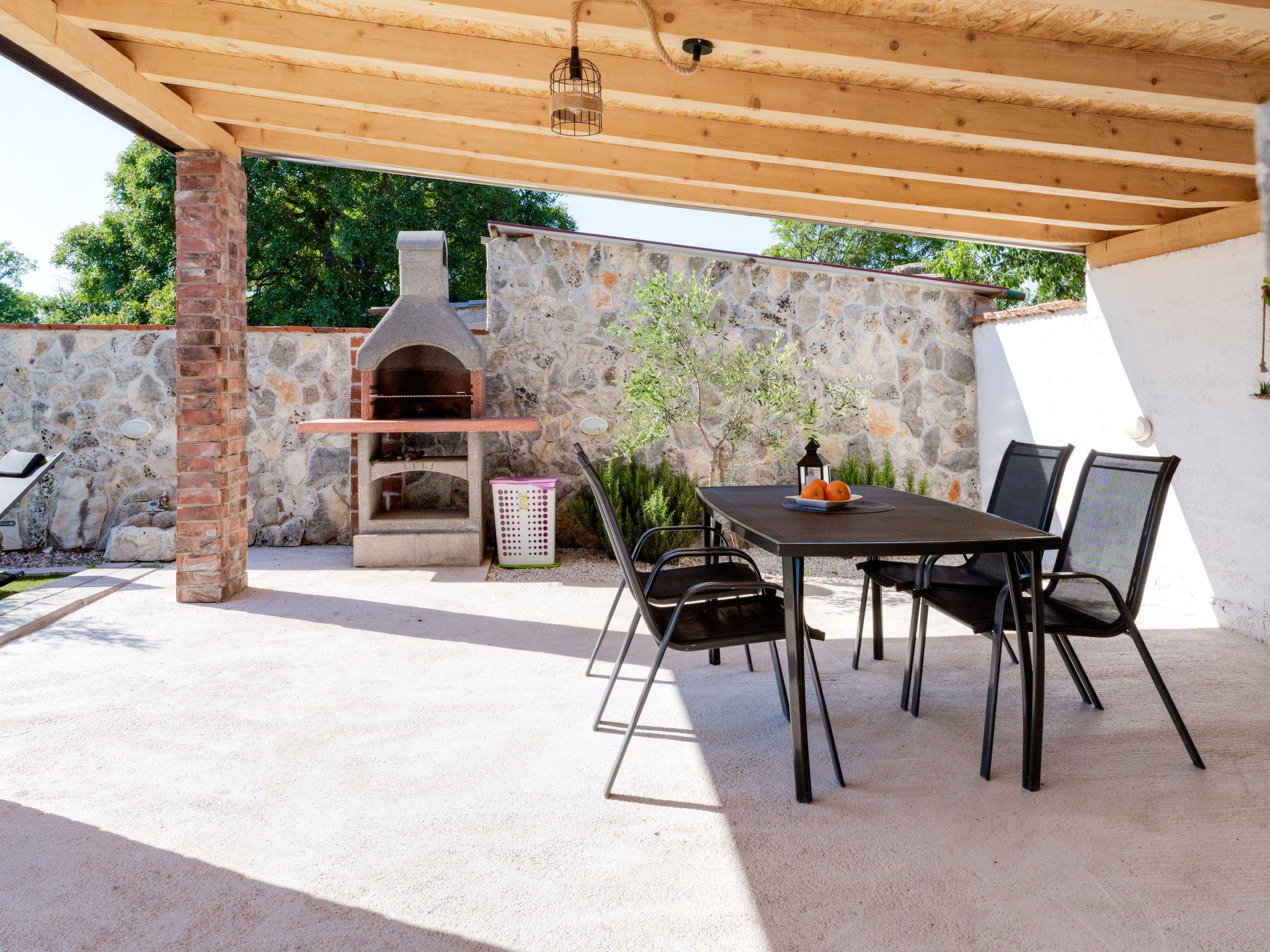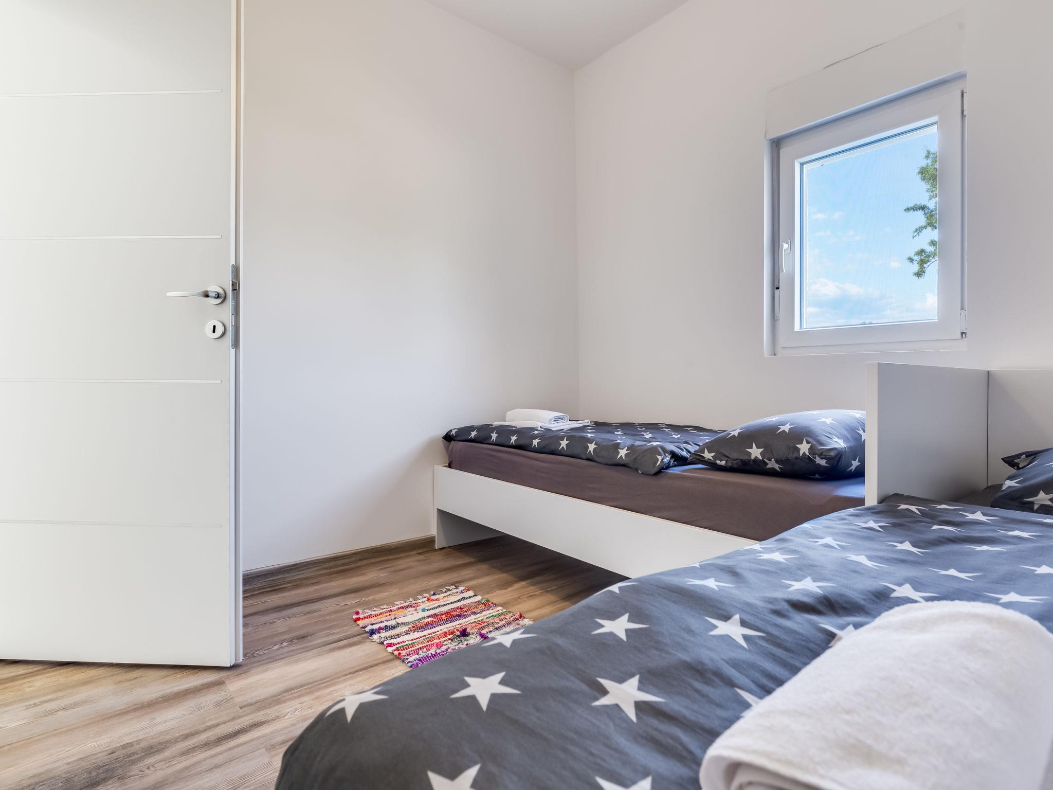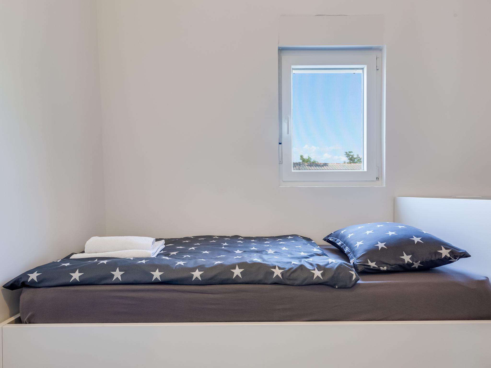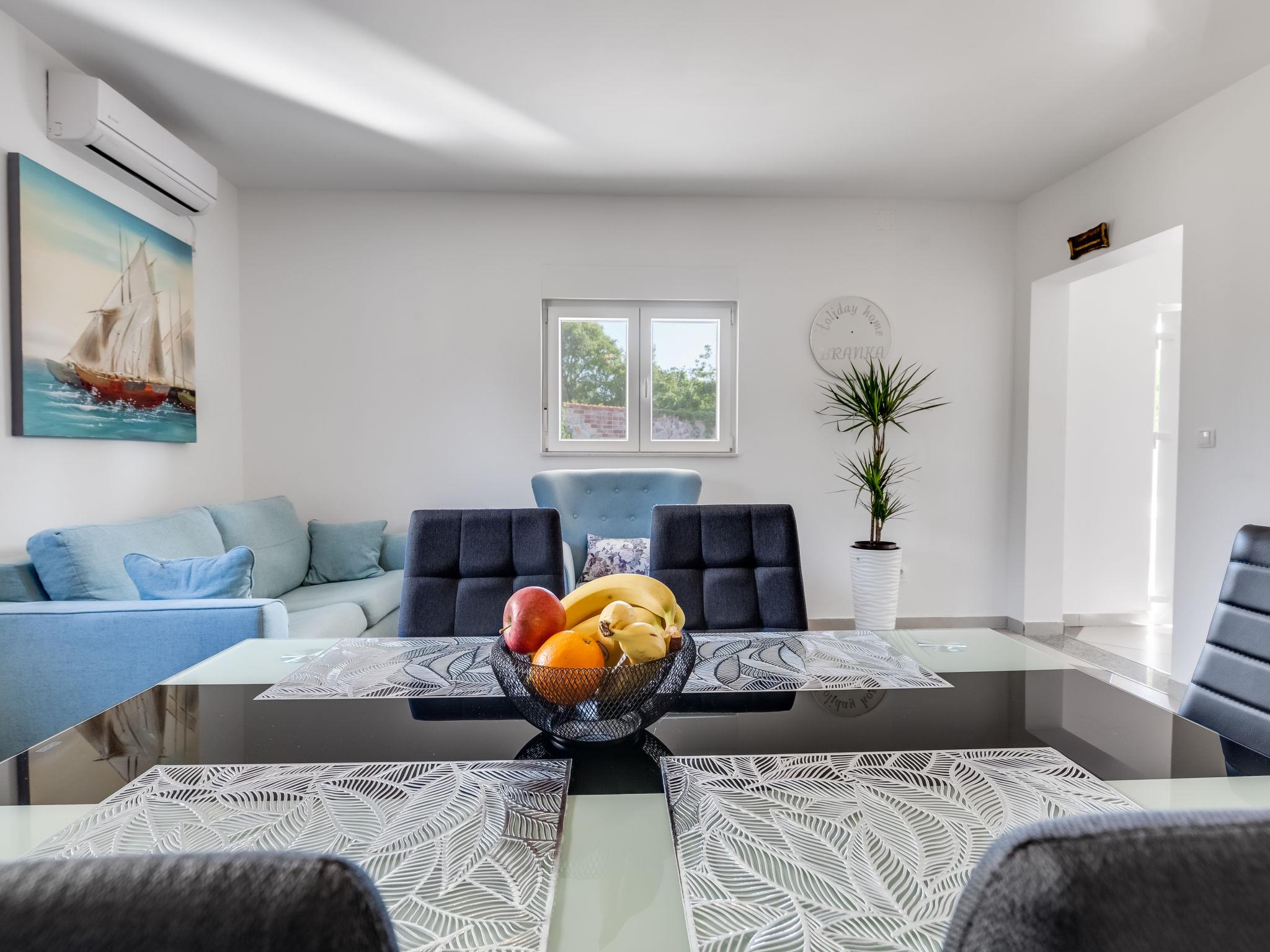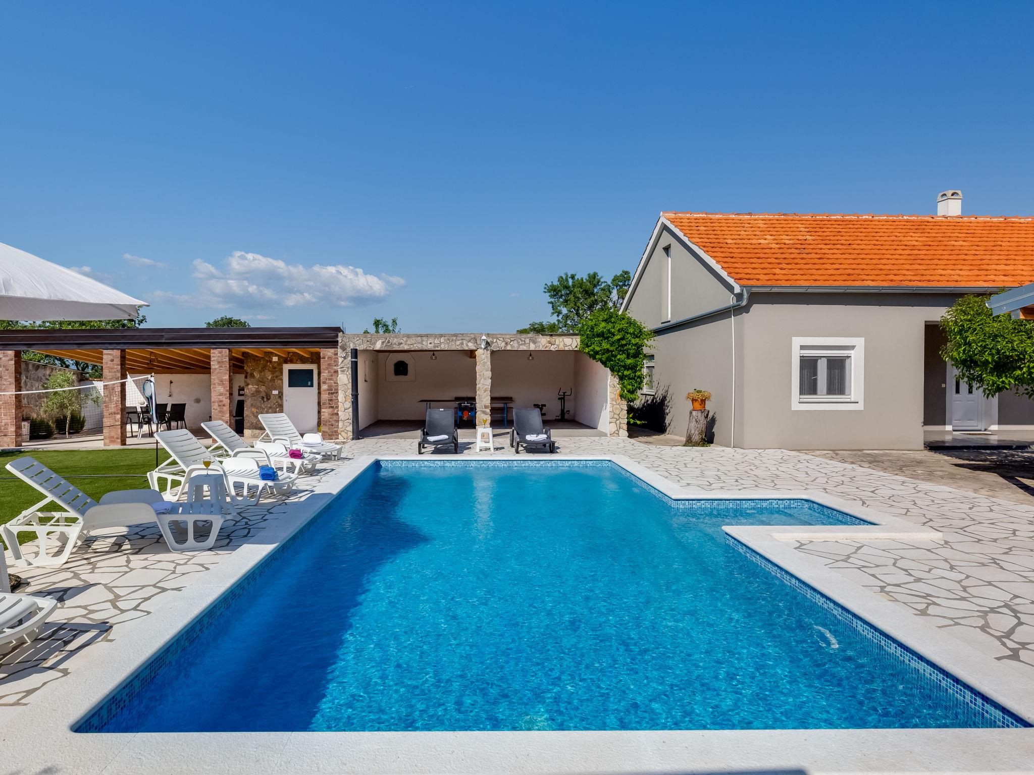 Pridraga 9 km from Novigrad: Single-family house "Branka". 2 km from the centre of Pridraga, in a quiet, sunny position, 3 km from the sea, 3 km from the beach. Private: property 2'000 m2 (fenced), swimming pool angular (8 x 4 m, depth 145 cm, seasonal availability: 01.May. - 01.Oct.) with internal staircase. Table tennis, terrace (15 m2), garden furniture, barbecue. In the house: internet access, washing machine. Parking (for 2 cars) at the house on the premises. Shop 500 m, restaurant 9 km, bus stop 16.6 km, pebble beach 3 km.