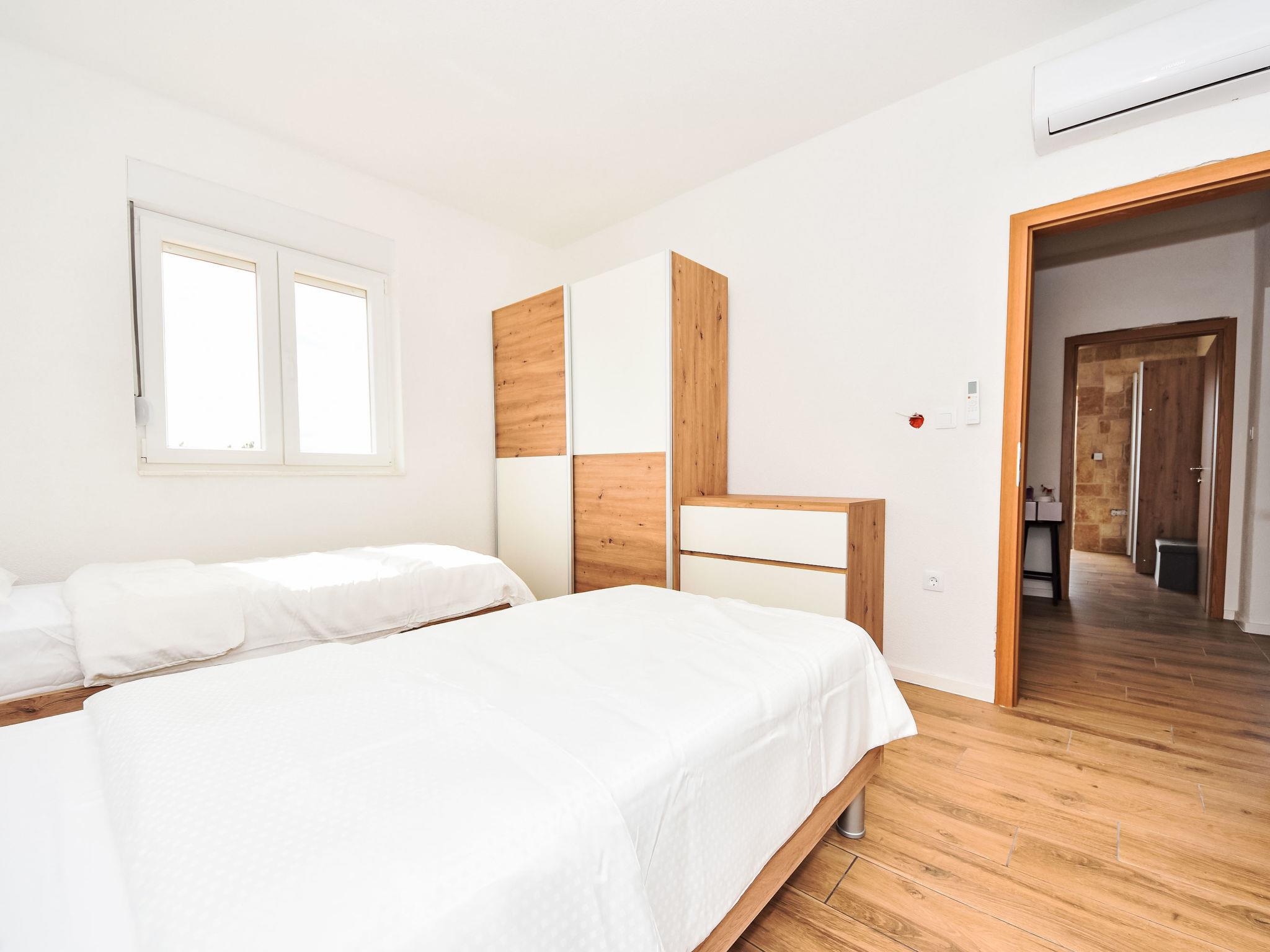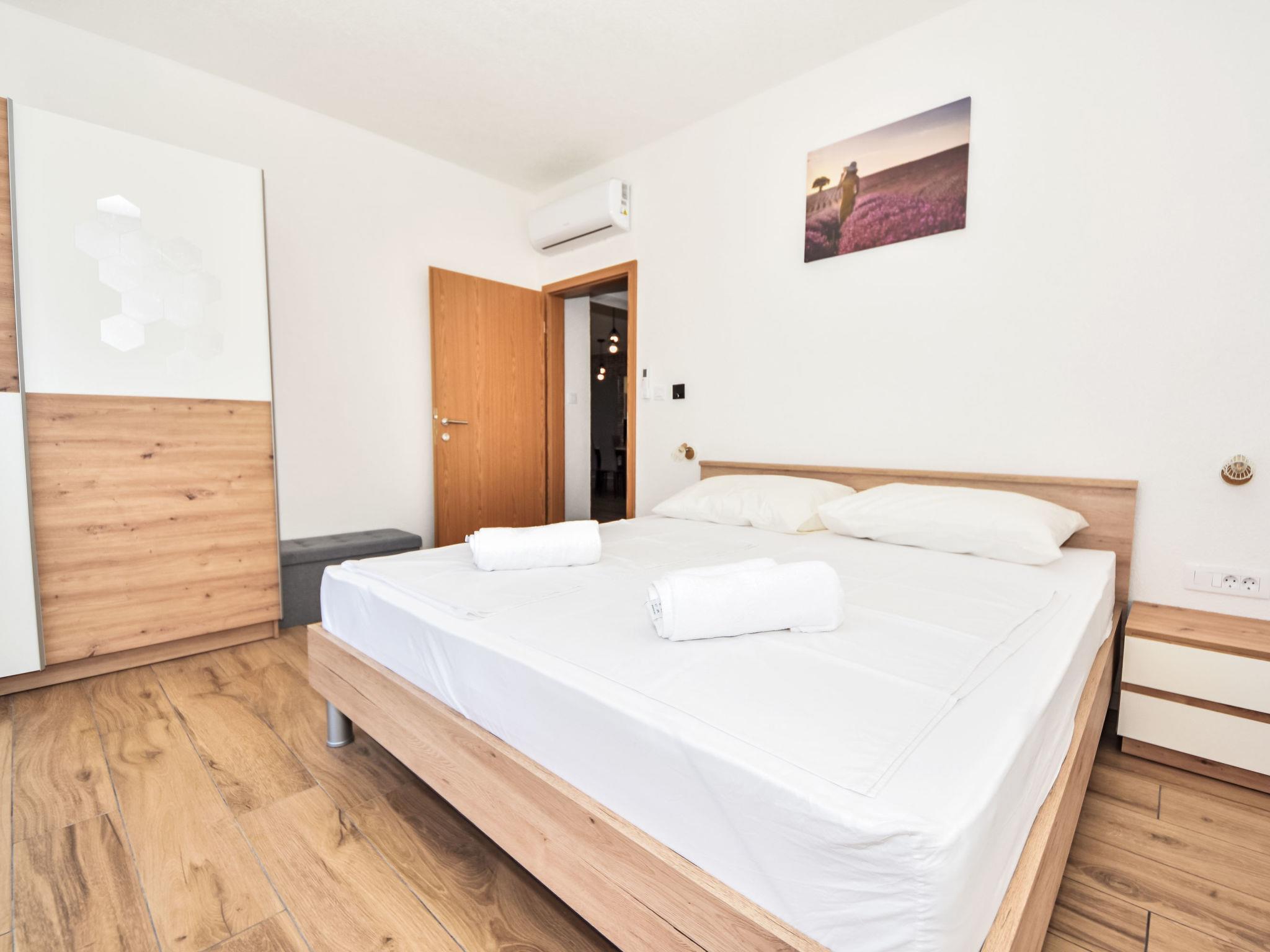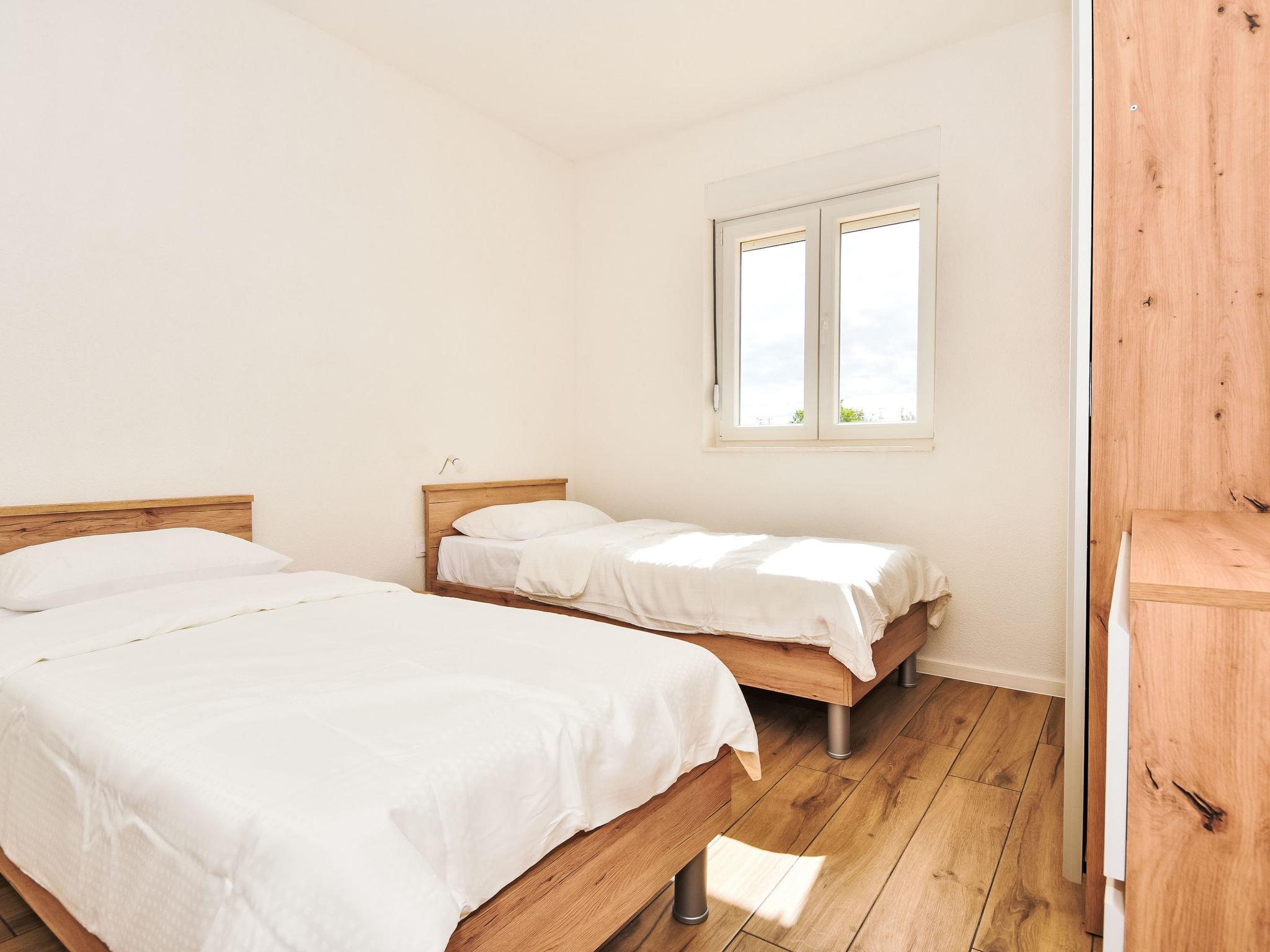 4-room villa 120 m2, south-west facing position. Living/dining room 45 m2 with 1 sofabed (140 cm, length 200 cm), satellite TV (flat screen), air conditioning. Exit to the terrace. 2 rooms, each room with 1 french bed (160 cm, length 200 cm), satellite TV (flat screen). 1 room with 2 beds (90 cm, length 200 cm). Open kitchen (oven, dishwasher, 4 ceramic glass hob hotplates, microwave, freezer). 2 showers/WC. Terrace 40 m2 partly roofed. Terrace furniture, deck chairs. View of the swimming pool and the countryside. Facilities: safe, hair dryer. Internet (WiFi, free). UP/I-335-02/24-02/2521