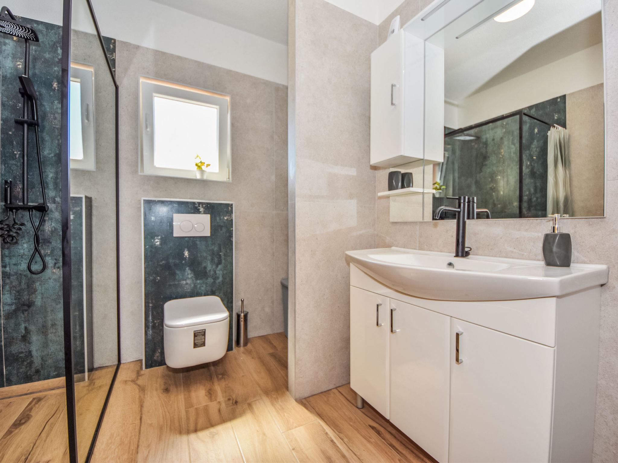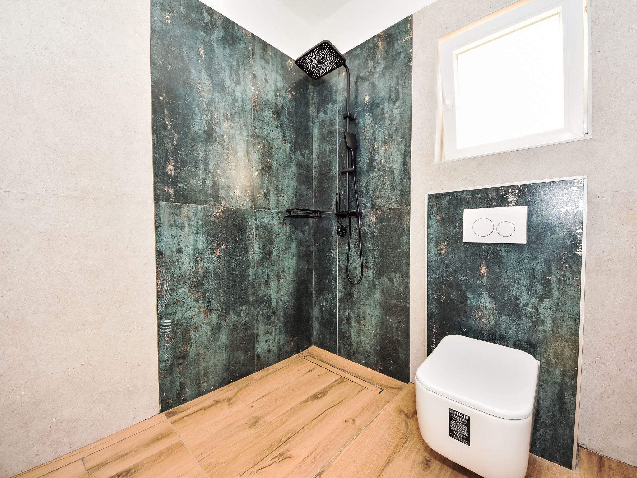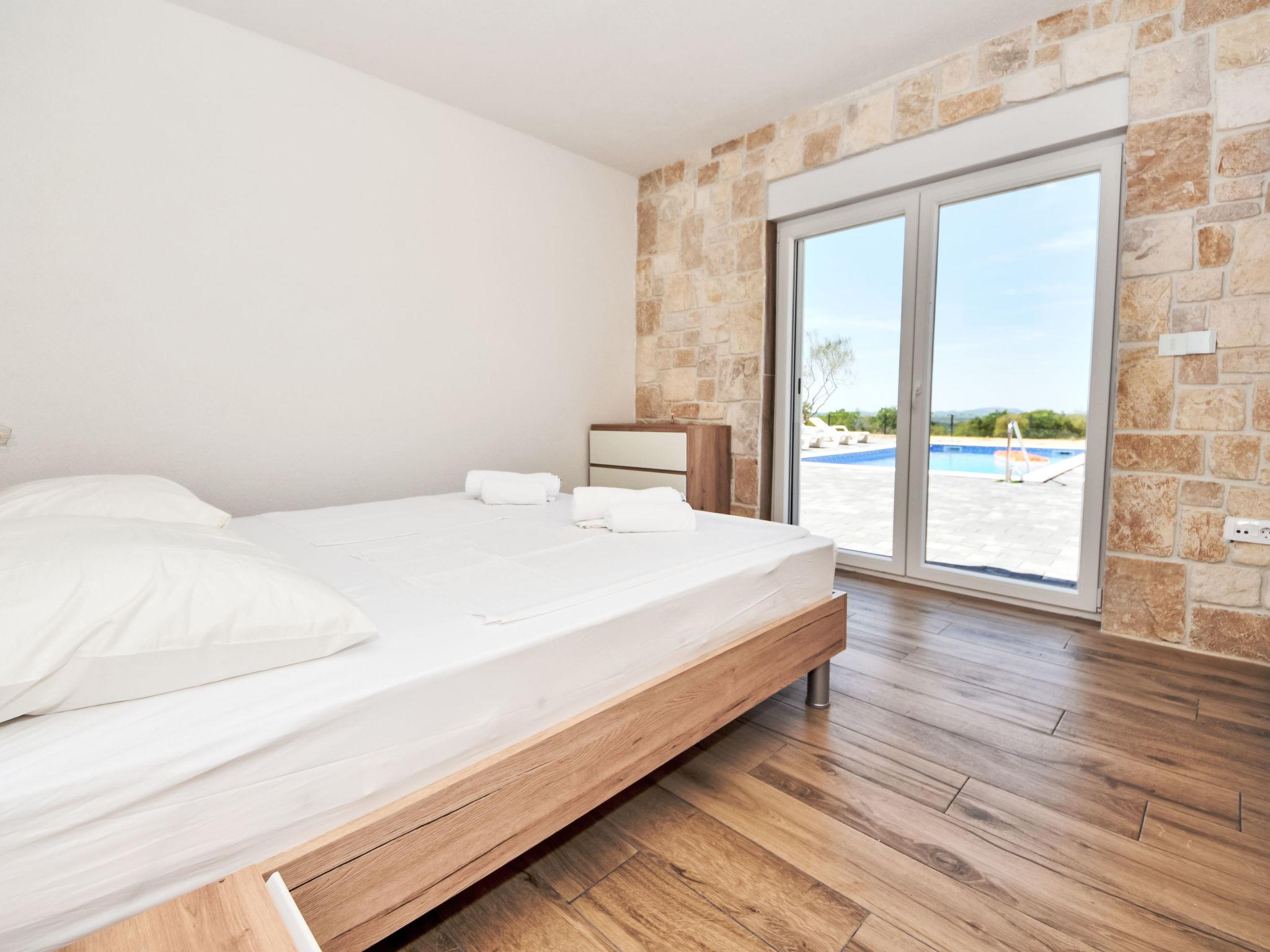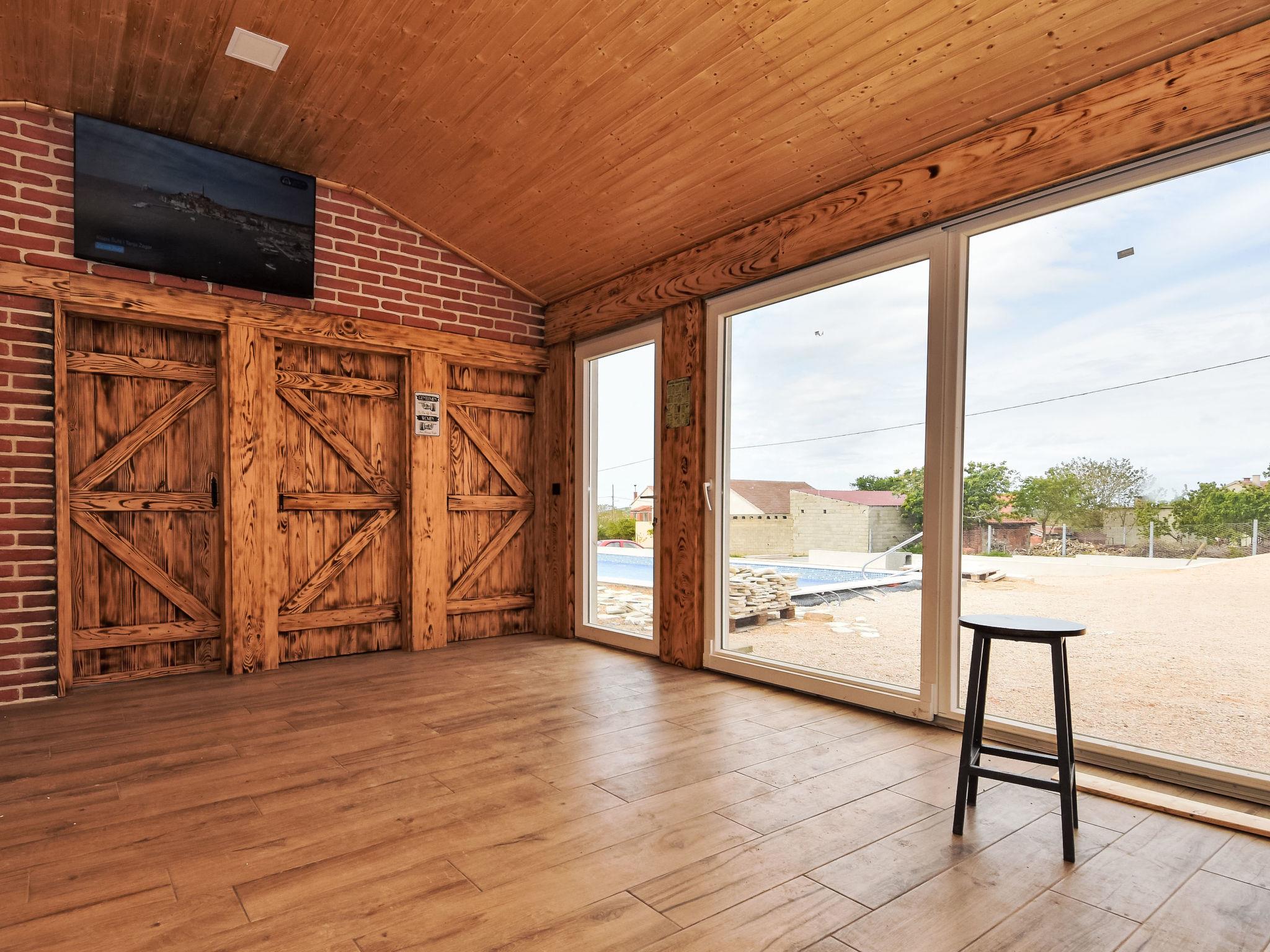 Korlat 13 km from Novigrad: Modern single-family house "Vulelija Holiday Home", built in 2024. 11 km from the centre of Benkovac, 100 m from the edge of the forest, 16 km from the sea. Private: natural state property 5'000 m2, swimming pool angular, heated (8 x 4 m, depth 145 cm, seasonal availability: 01.May. - 01.Oct.). Outdoor shower, terrace (20 m2), garden furniture, barbecue, barbecue house. In the house: internet access, washing machine. Parking (for 4 cars) on the premises. Shop 11 km, restaurant 13 km, bus stop 16.6 km, pebble beach 16 km.