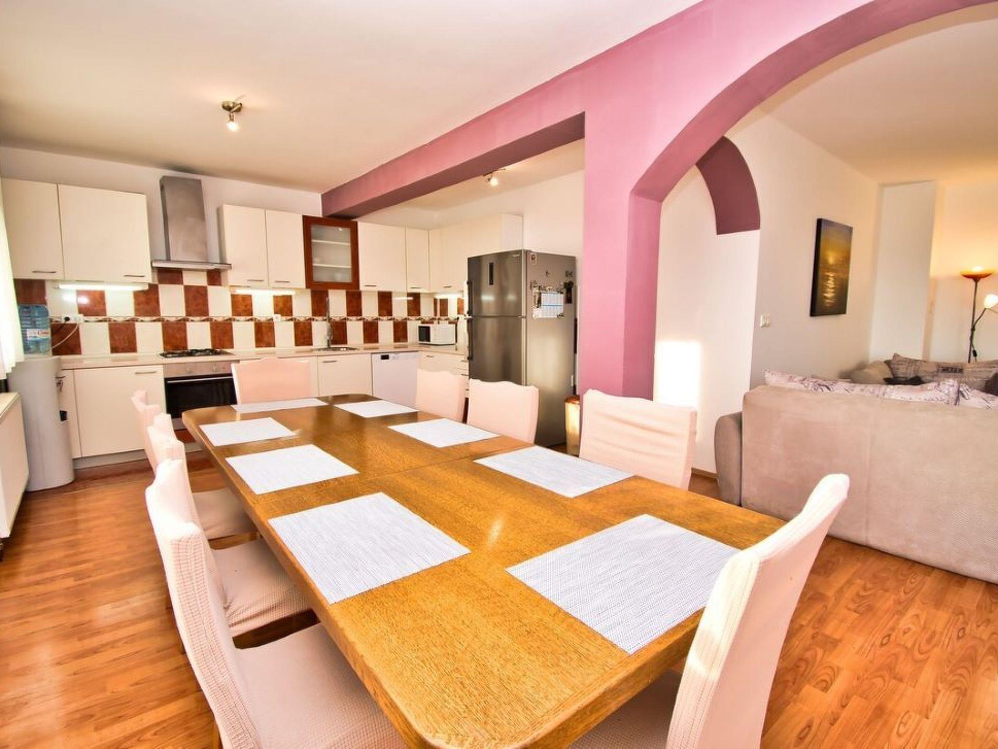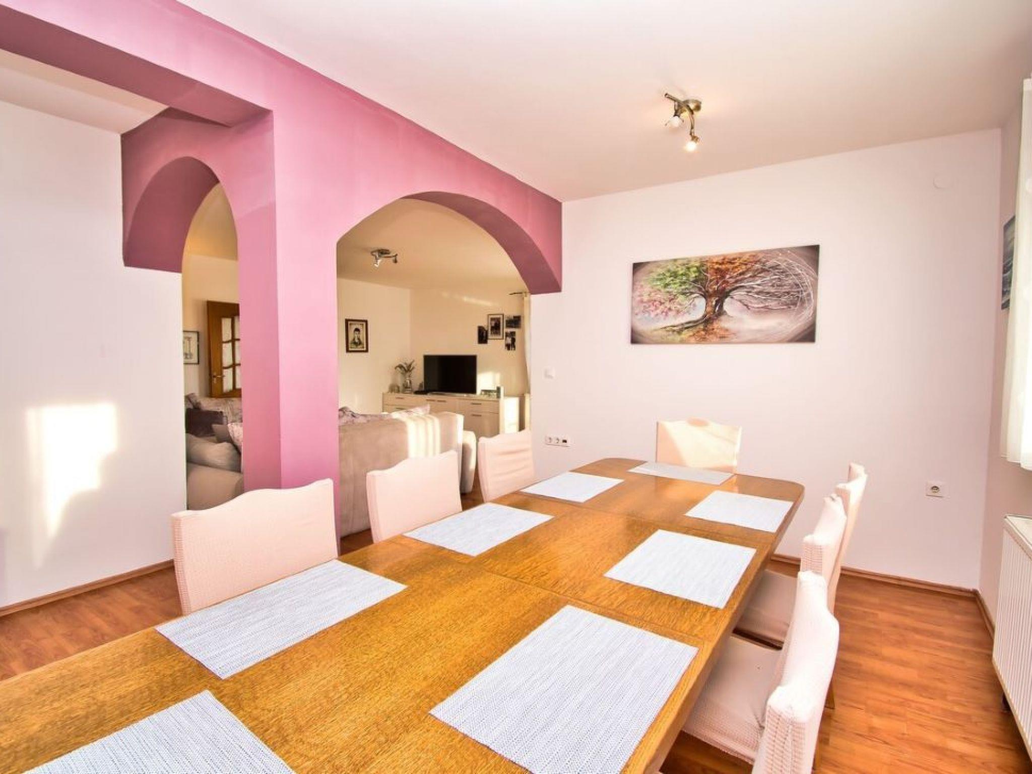 Very comfortable house consist of two flat, on the ground floor is 3 bedrooms,( one with double bed and two with two single bed) living room (with sofa for two persons if you need it),full equipped kitchen,2 bathrooms,terrace.