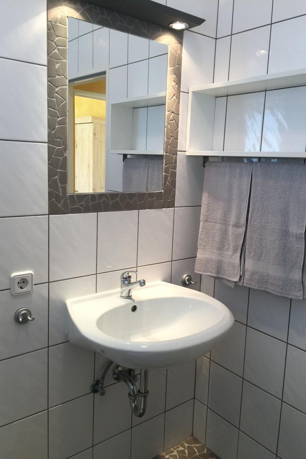 The 38m² apartment on the raised ground floor can accommodate two people. The cosy living and dining room includes a fully-equipped kitchen unit with all the necessary kitchen utensils, along with a two-ring hob, a mini oven, a kettle, a toaster and a fully automatic coffee. There is comfortable seating and a dining table for dining together after cooking. The separate bedroom is furnished with a double bed and a cupboard for storing your clothing. The tiled bathroom with daylight is fitted with a shower and WC.