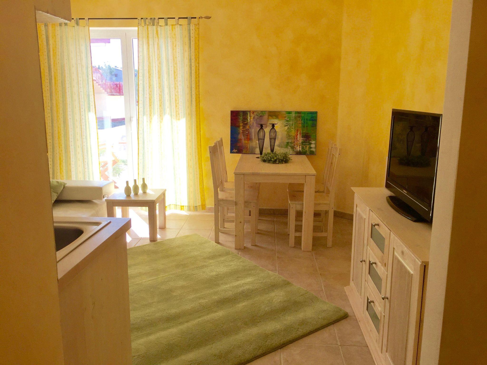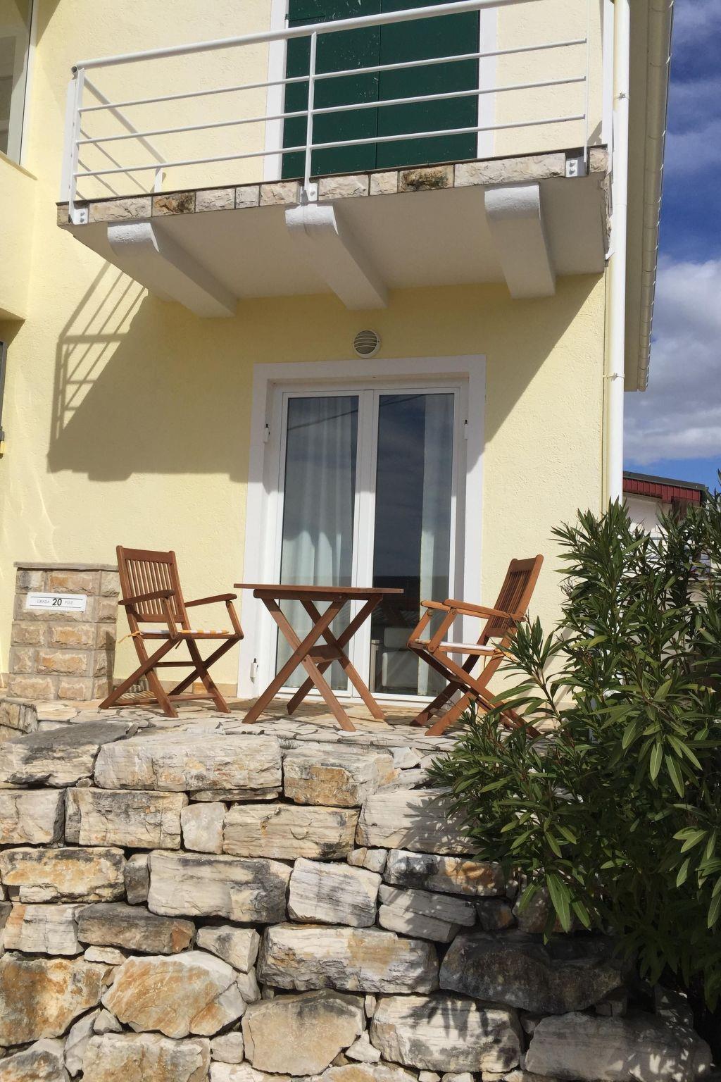 The private furnished terrace faces the road, with a partial sea view, inviting you to enjoy breakfast together or a glass of wine in the evening.