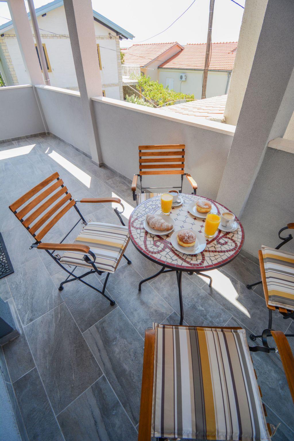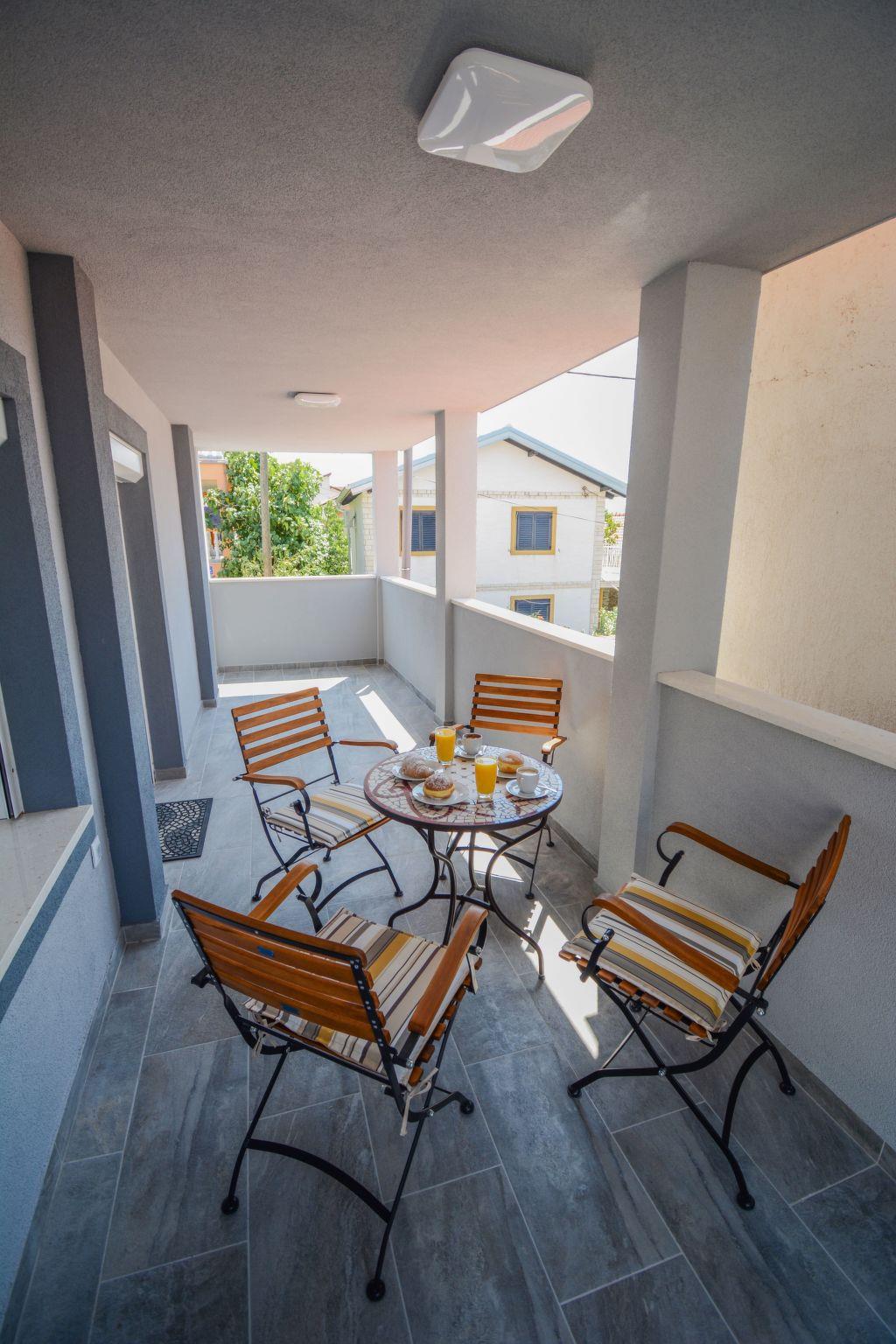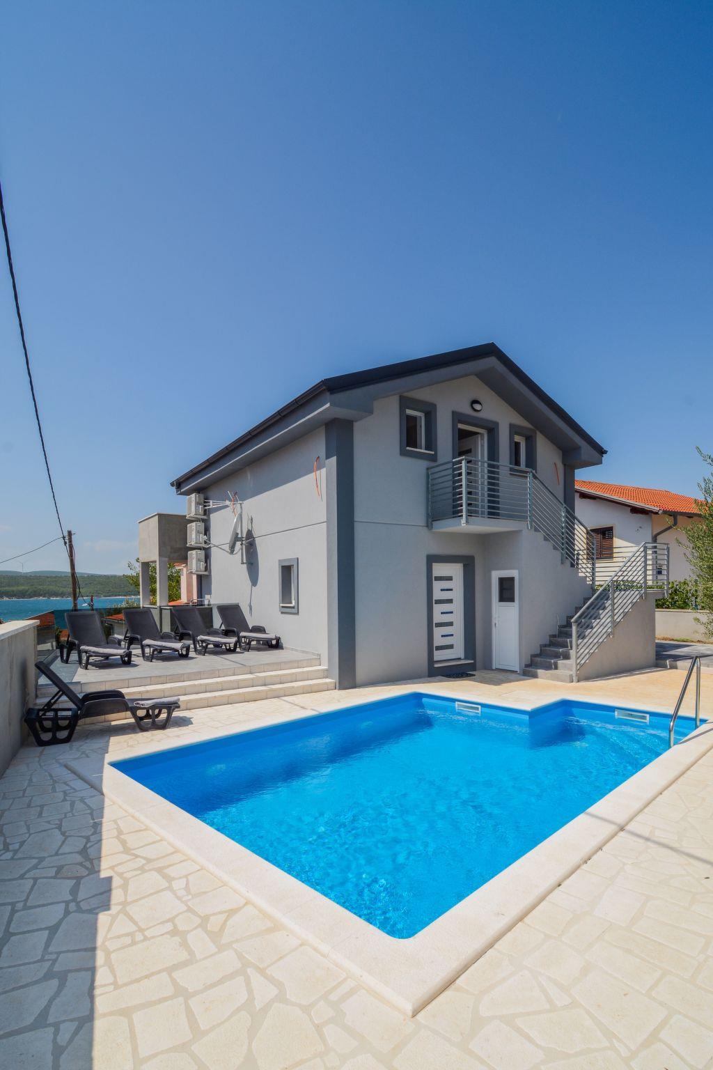The entire villa is air-conditioned and has an excellent wi-fi network and consists of three bedrooms, three modern bathrooms, a living room, an open dining room, a bathroom, and a fully equipped kitchen. It can accommodate up to eight people, and guests don't have to worry about parking - they have a private parking lot in front of the villa. Guests will love the terrace, which contains a large table with benches and a fireplace where they can prepare Dalmatian specialties. From the terrace, you can go directly to the nearby beach and jump into the crystal clear sea, which is a special experience, especially after enjoying a cup of coffee on the sunny balcony. From the balcony guests can watch the spectacular sunset, which is said to be the most beautiful in Zadar. Summer nights will enchant guests - clear starry sky, fresh air and pleasant lighting of the swimming pool in the paved garden give a special atmosphere.